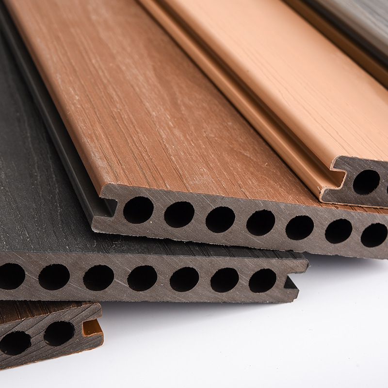厂家批发圆孔共挤地板 共挤塑木地板户外阳台露台庭院木塑地板