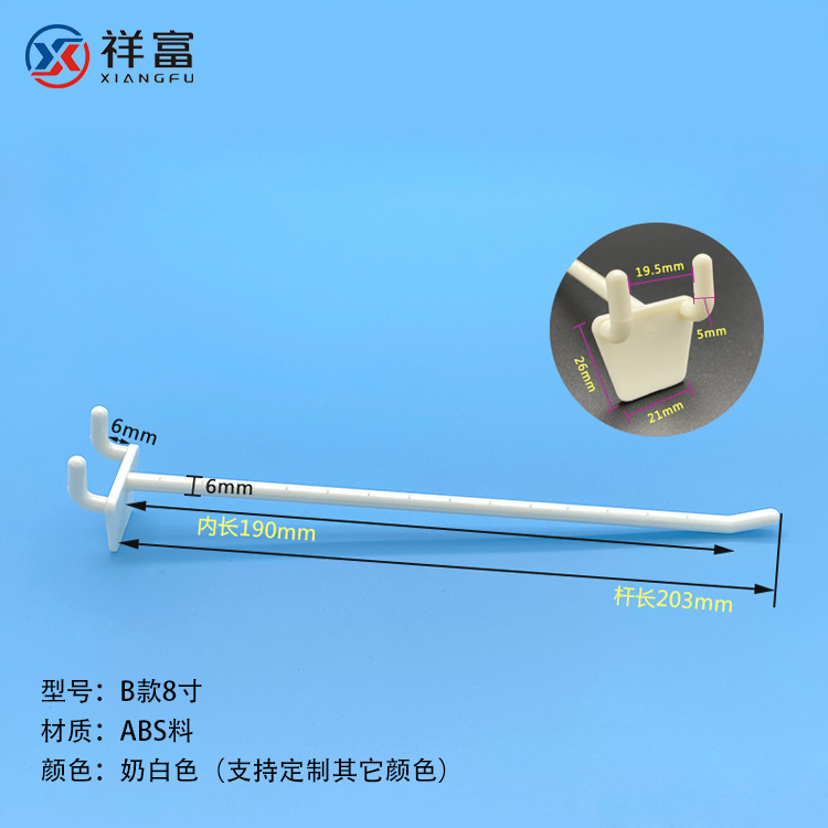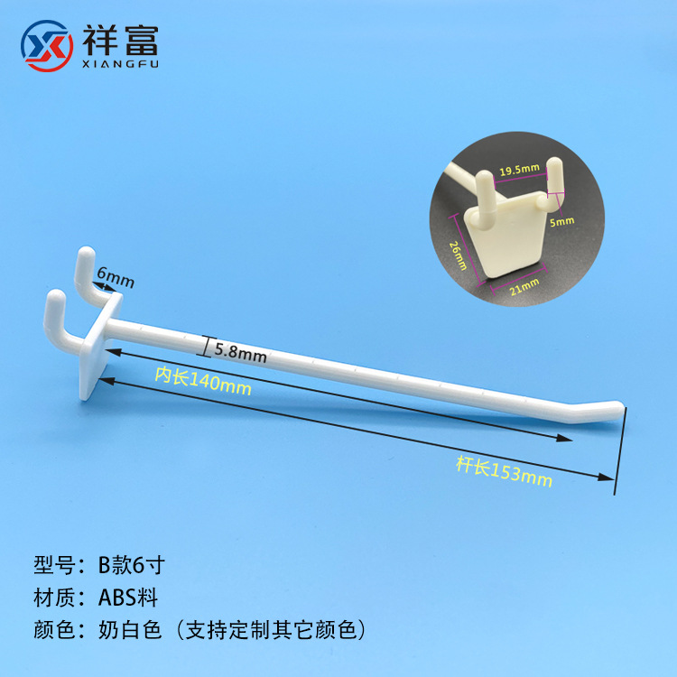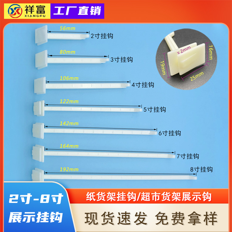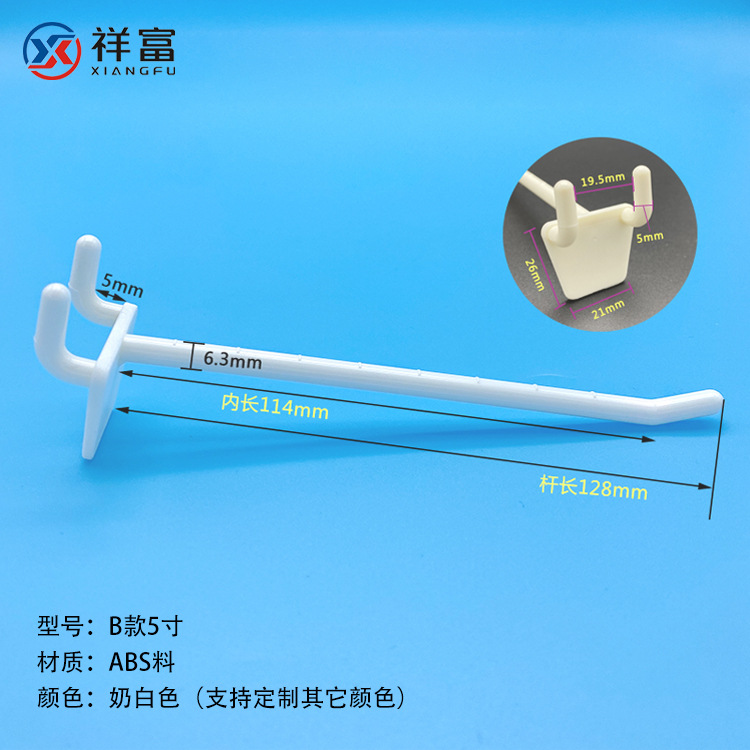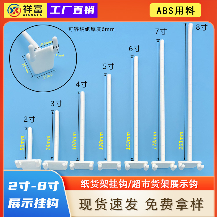 洞洞板展示塑料挂钩2寸-8寸ABS白色纸货架超市展示塑胶背板挂勾