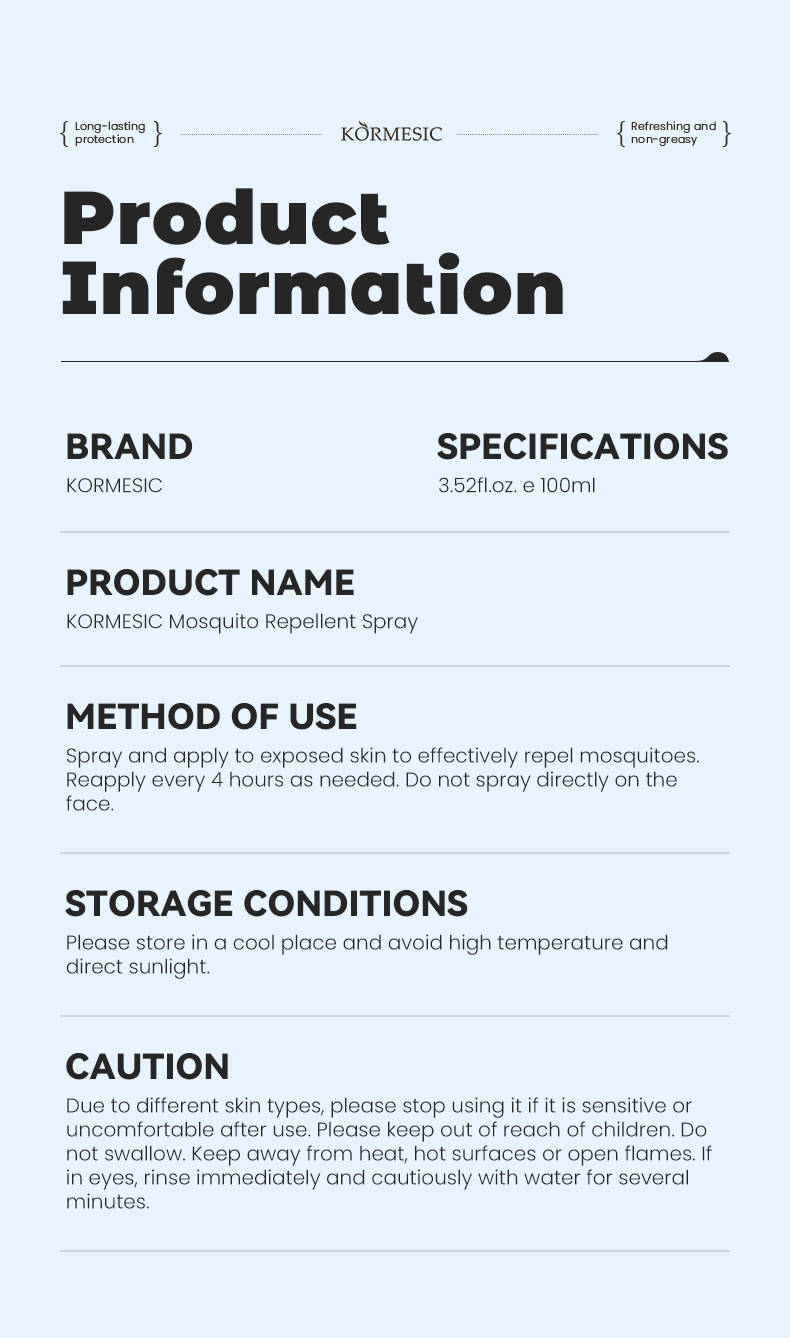 全英文KORMESIC防蚊喷雾 持久防护驱蚊液跨境外贸厂家批发