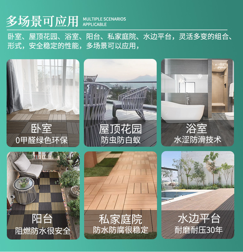 户外工程可用塑木地板庭院公园天台防火防滑防霉防水装饰板易拼接