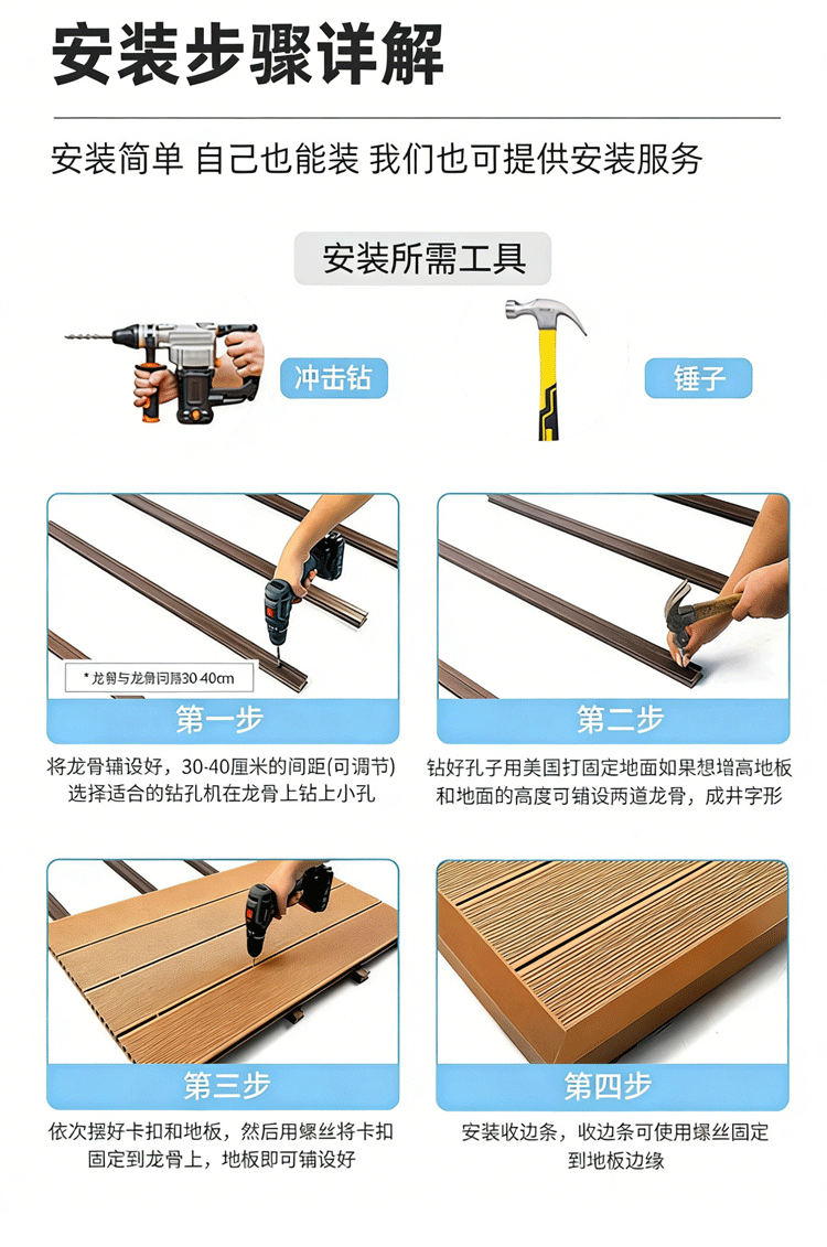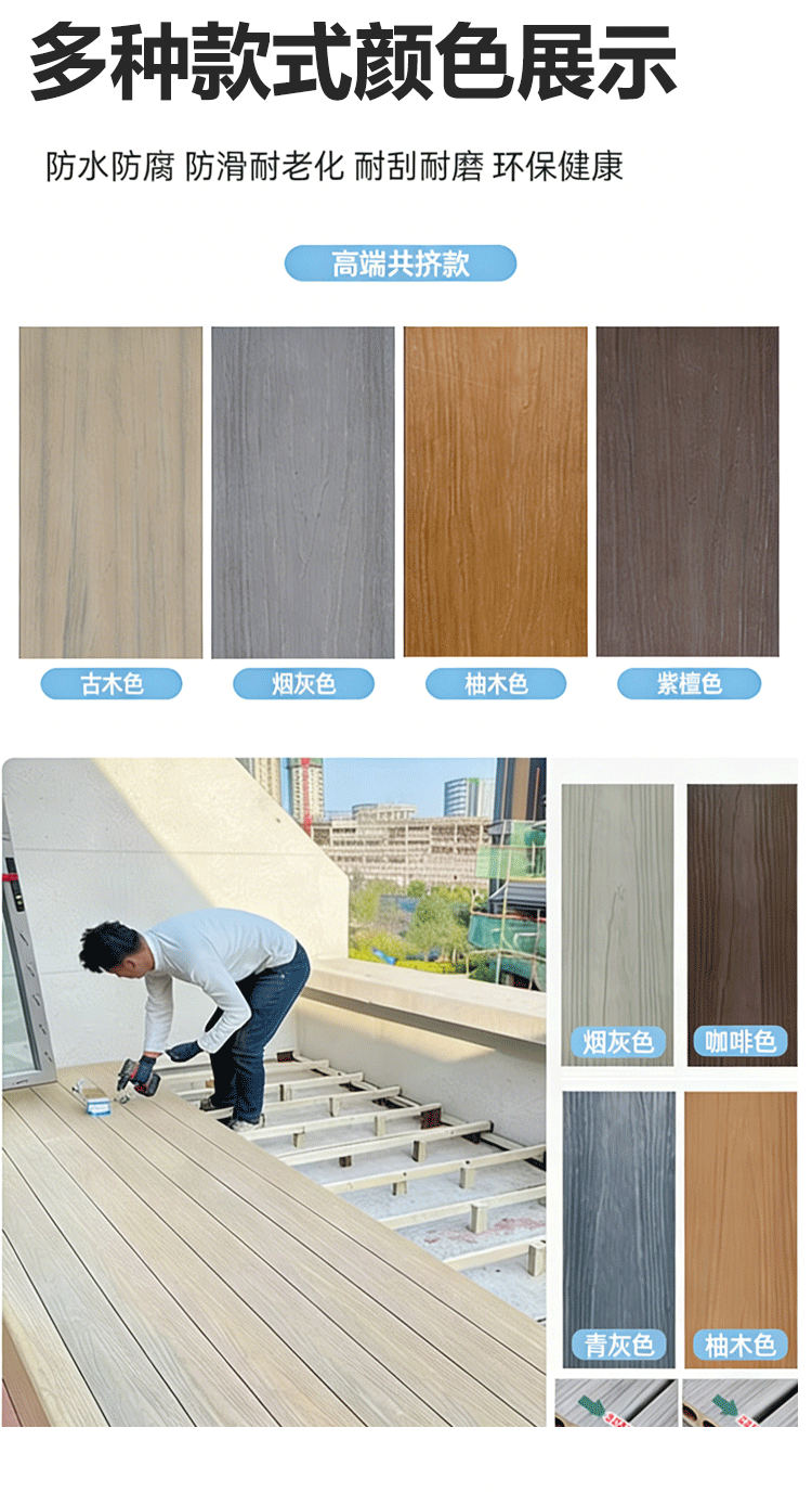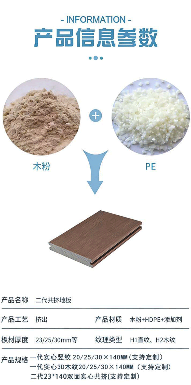 实心塑木地板户外专用wpc地板防腐防滑耐磨工程露台通用木塑地板