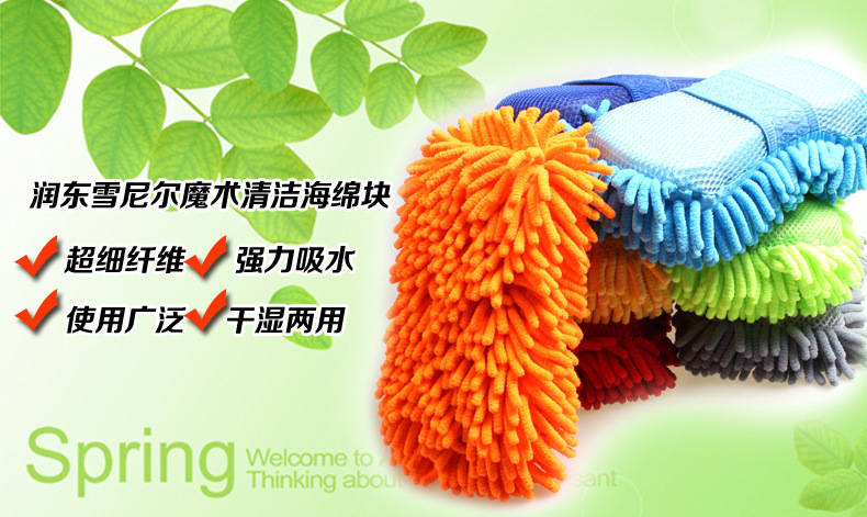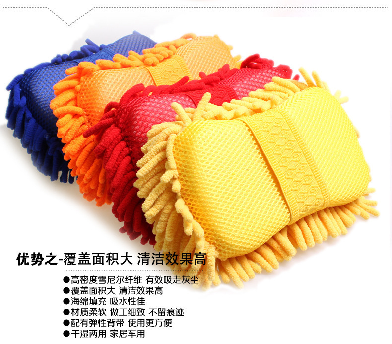 洗车海绵雪尼尔绒珊瑚虫擦车海绵块汽车清洁洗车工具用品洗车手套