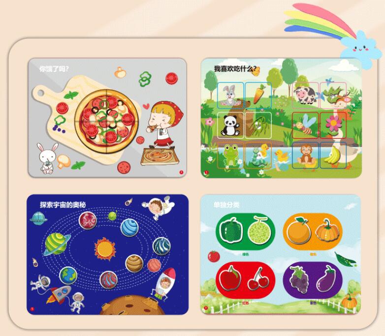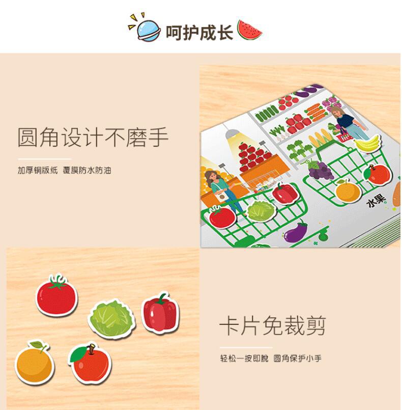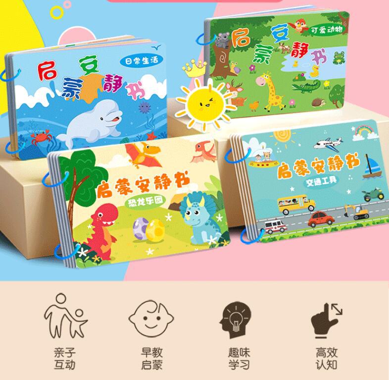 益智儿童启蒙安静书幼儿早教魔术贴认知玩具宝宝手撕卡片识2岁3岁