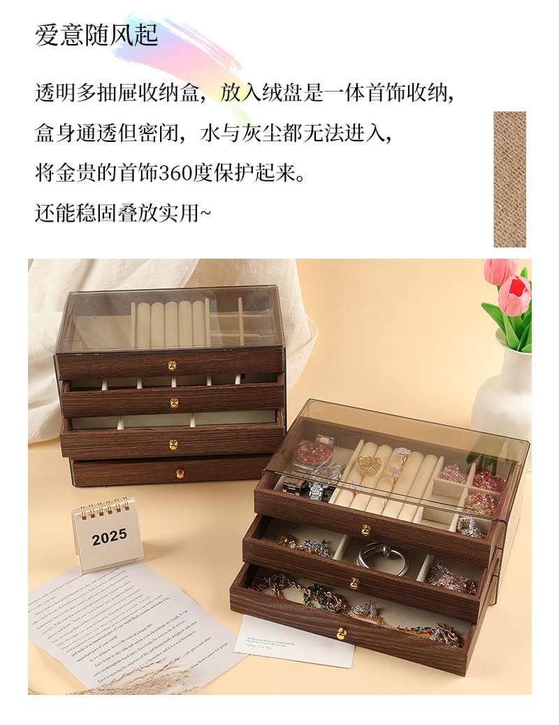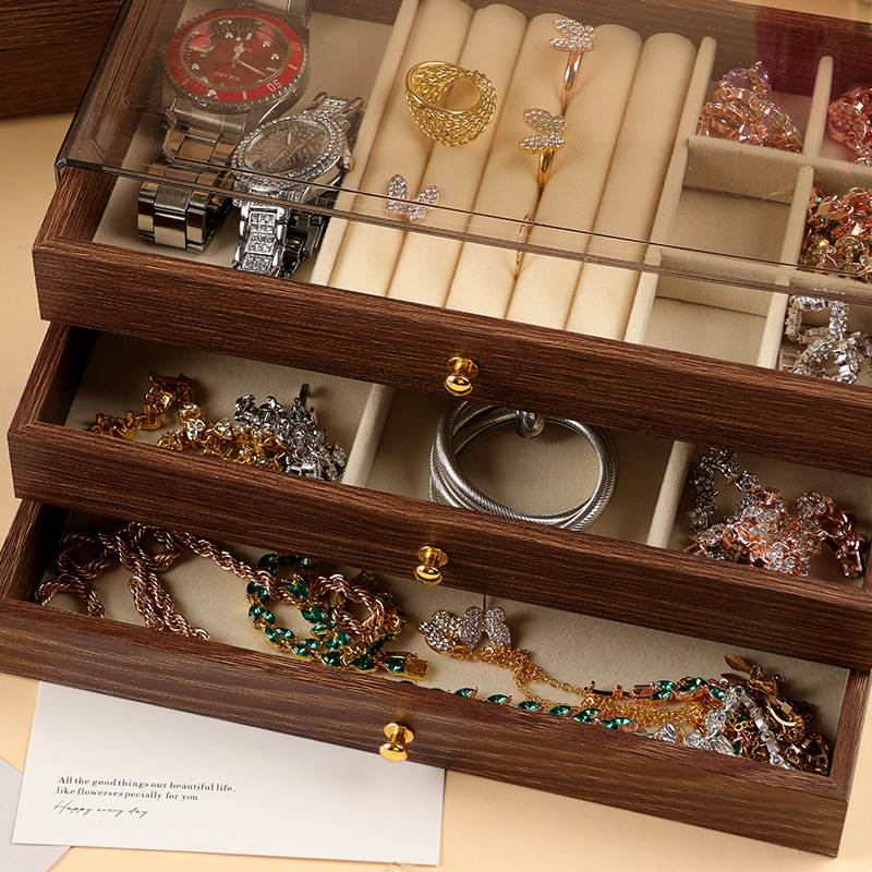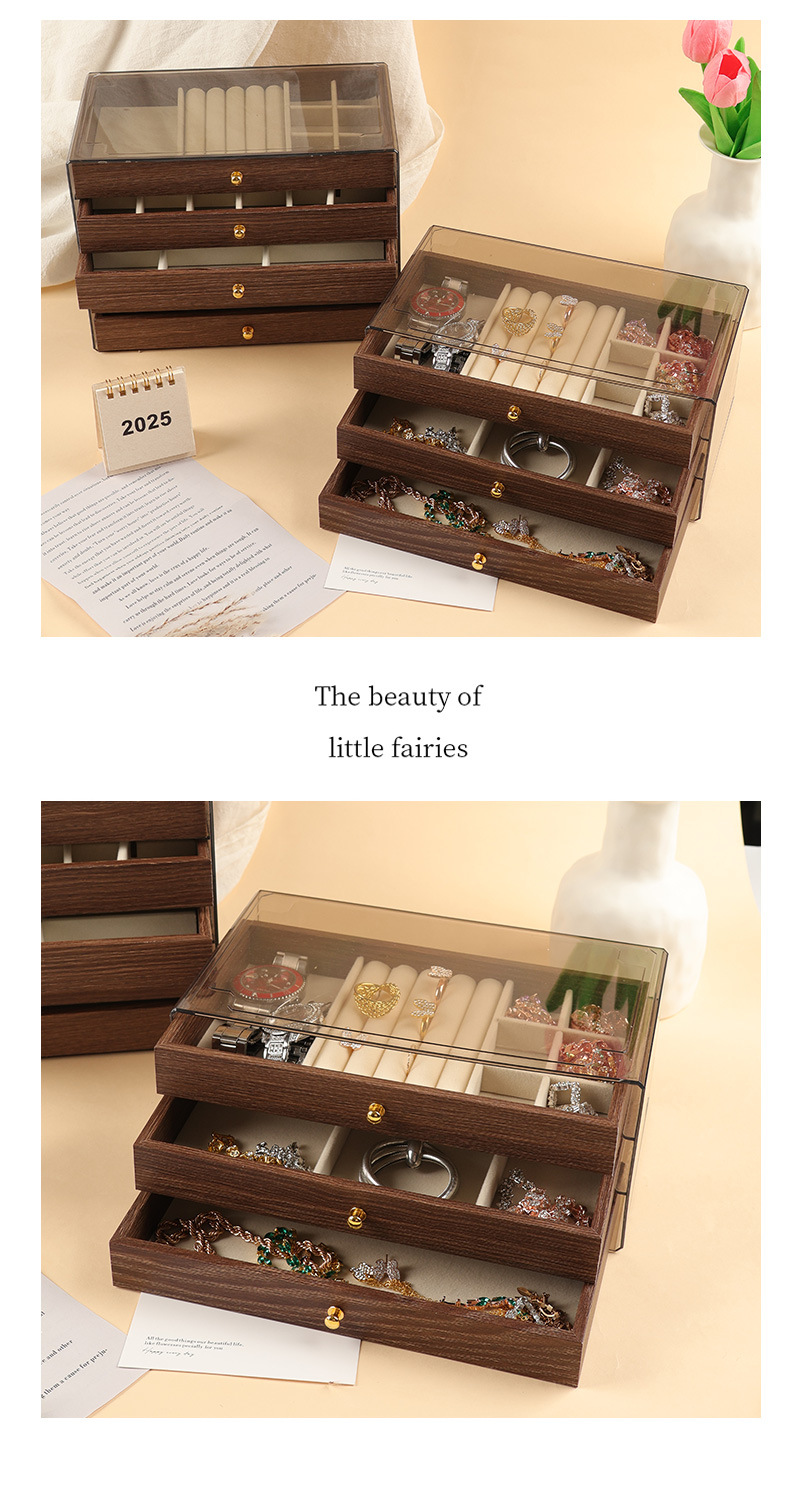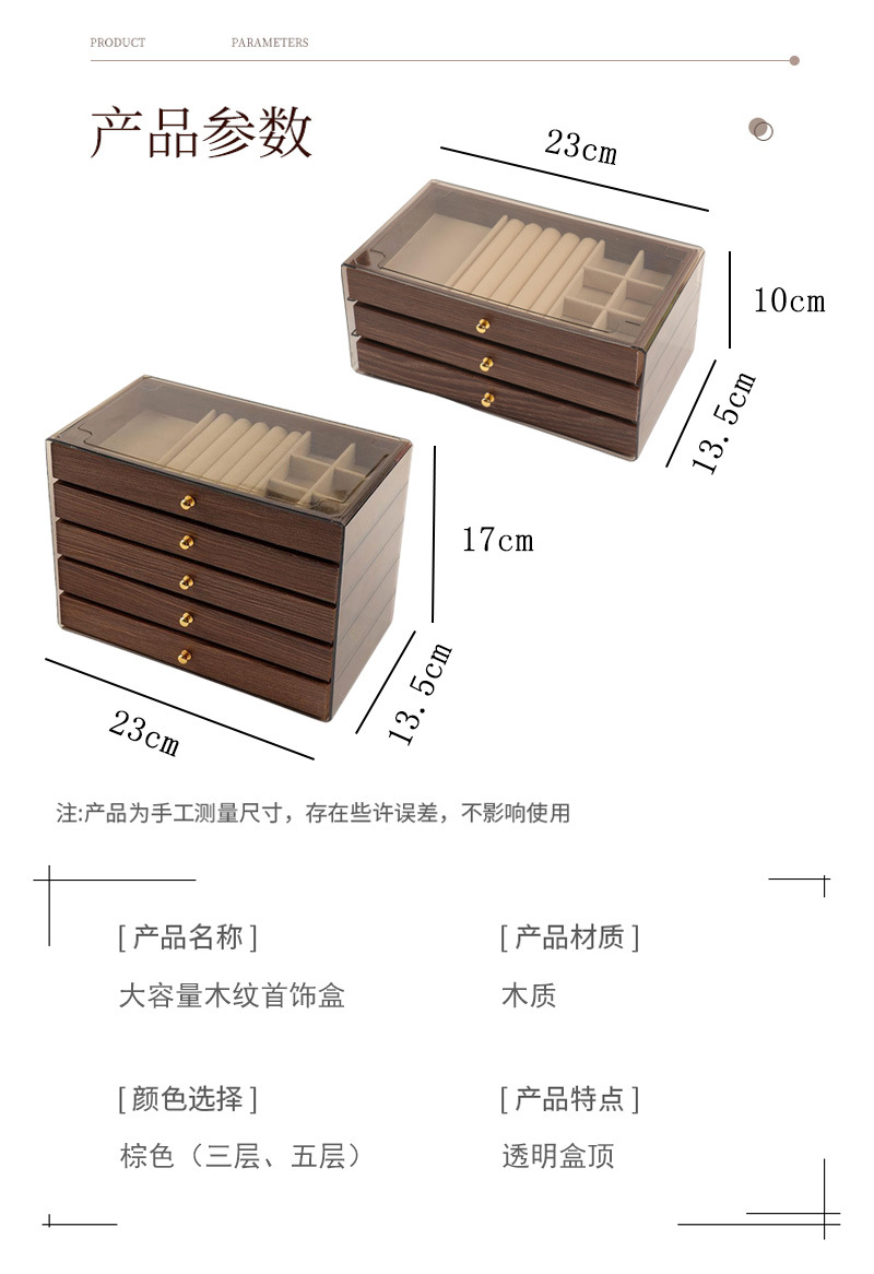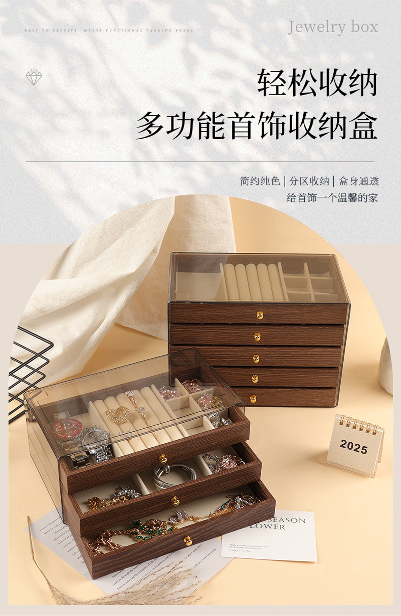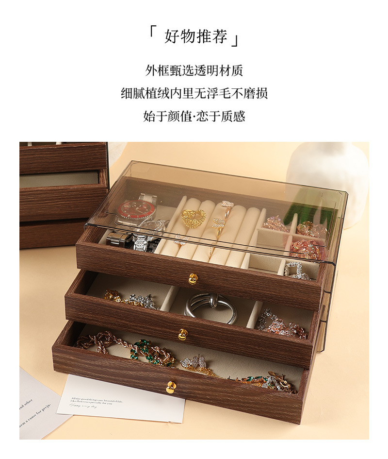 胡桃木收纳盒木纹首饰盒耳环戒指项链手串桌面大容量多层木收纳盒