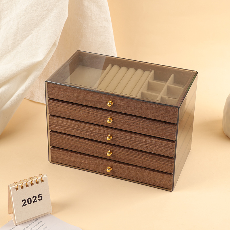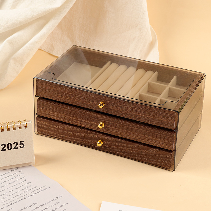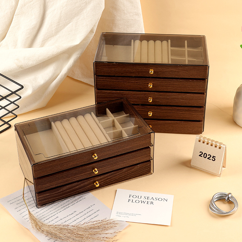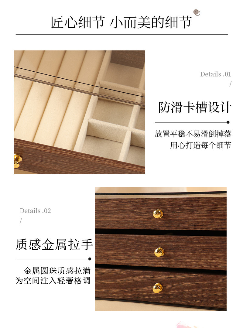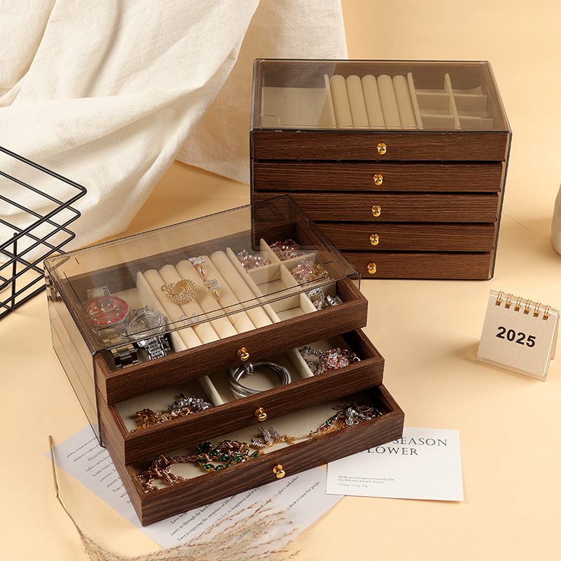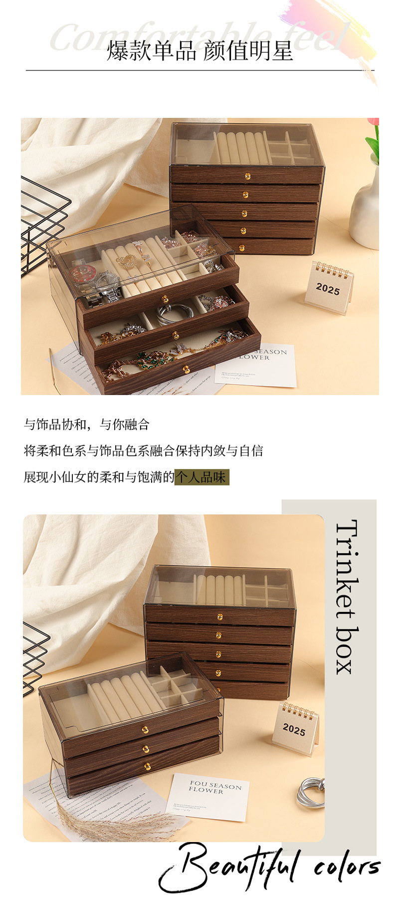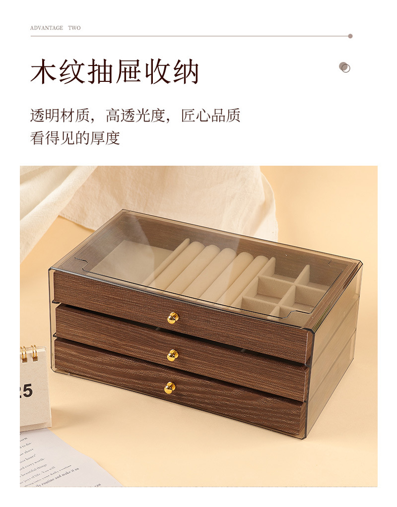 胡桃木收纳盒木纹首饰盒耳环戒指项链手串桌面大容量多层木收纳盒