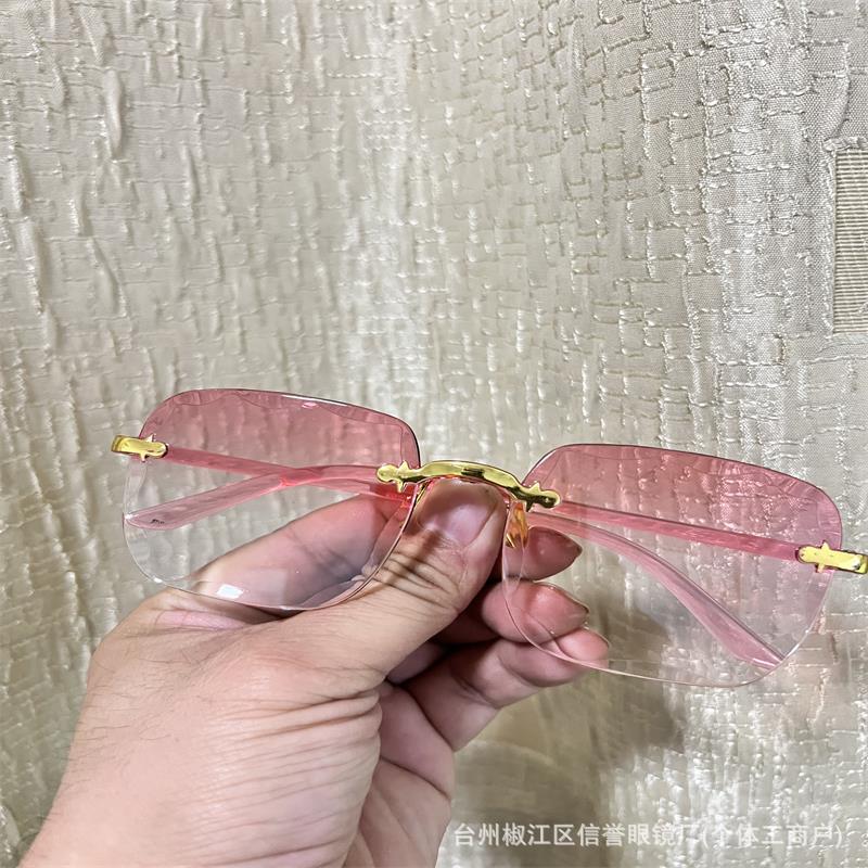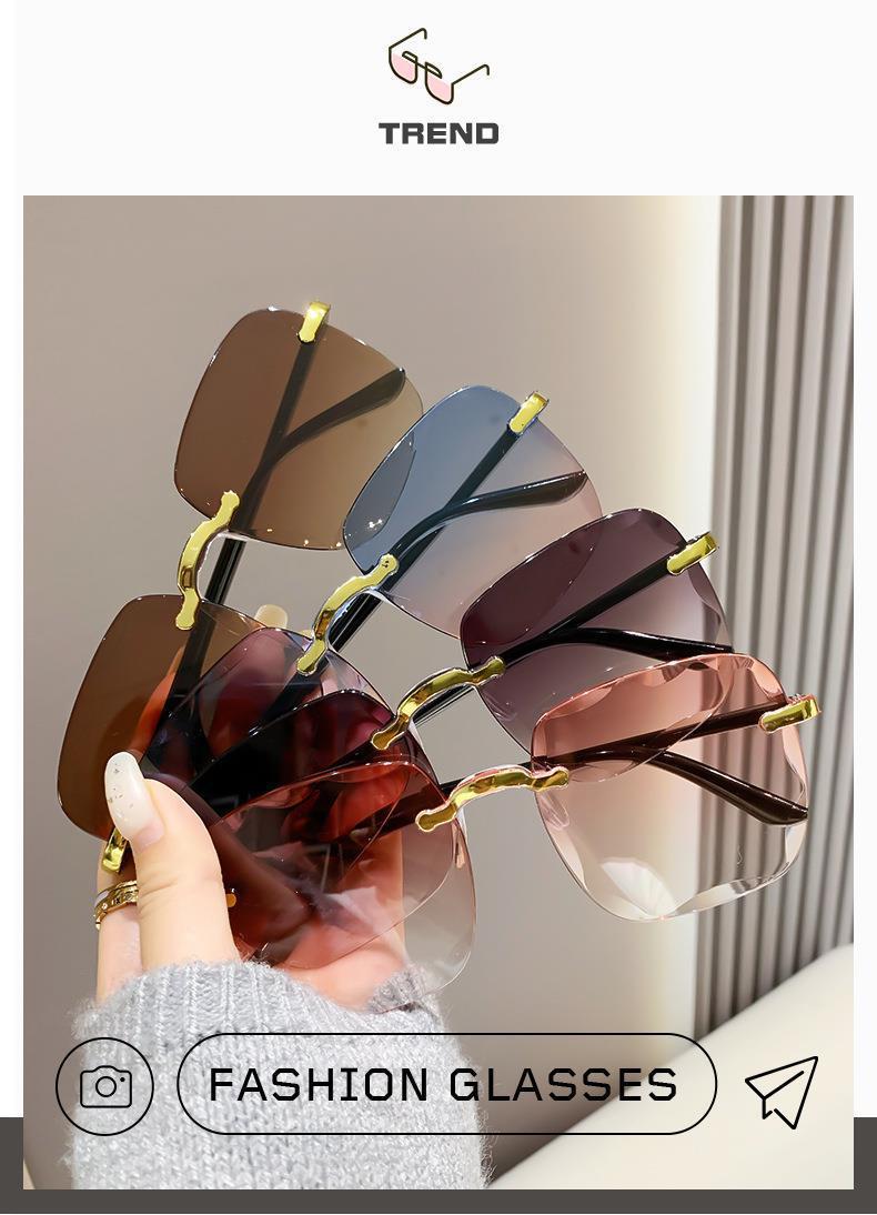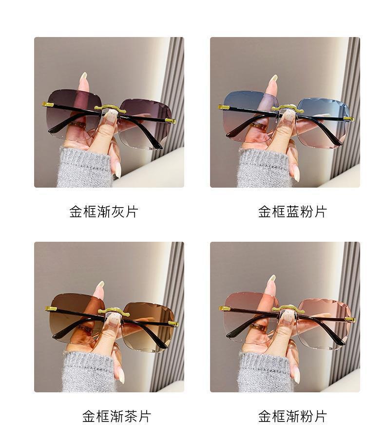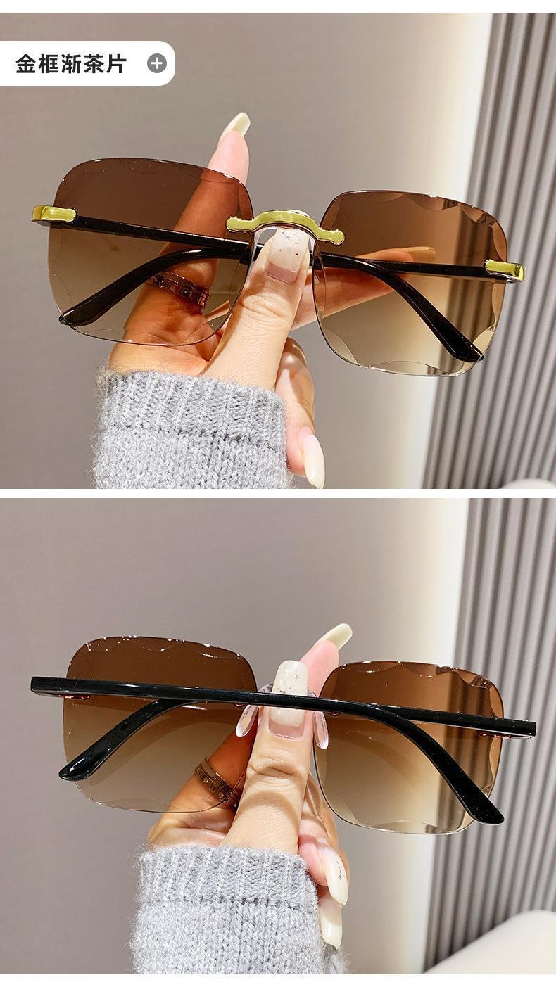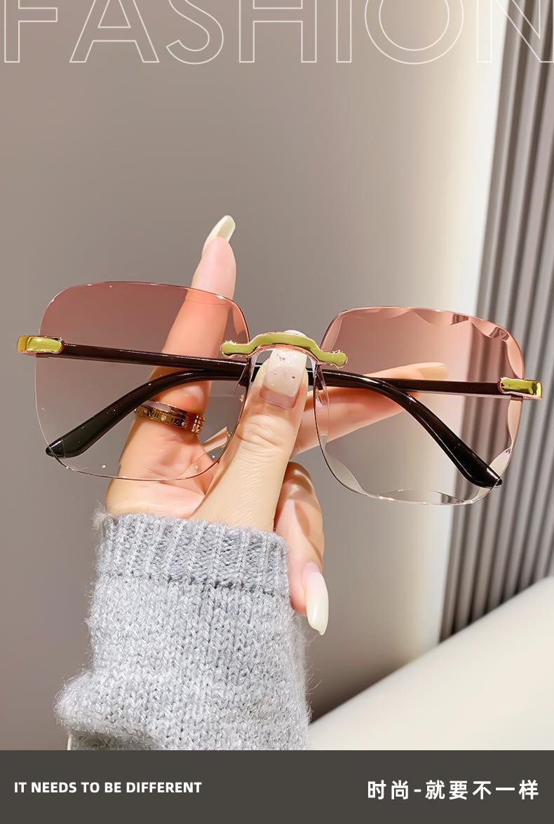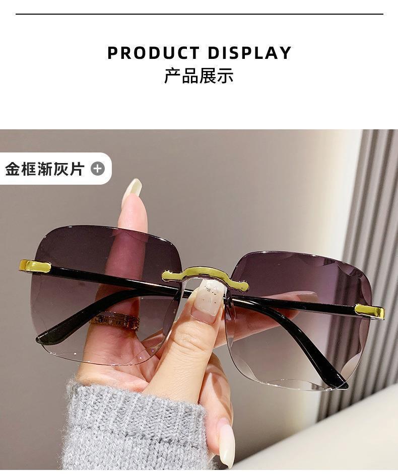 新款时尚i韩版防紫外线太阳眼镜无框切边墨镜网红潮流太阳镜女款