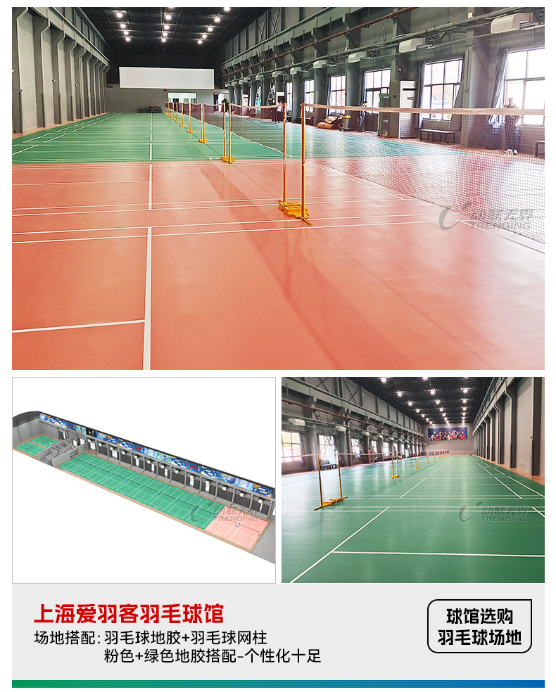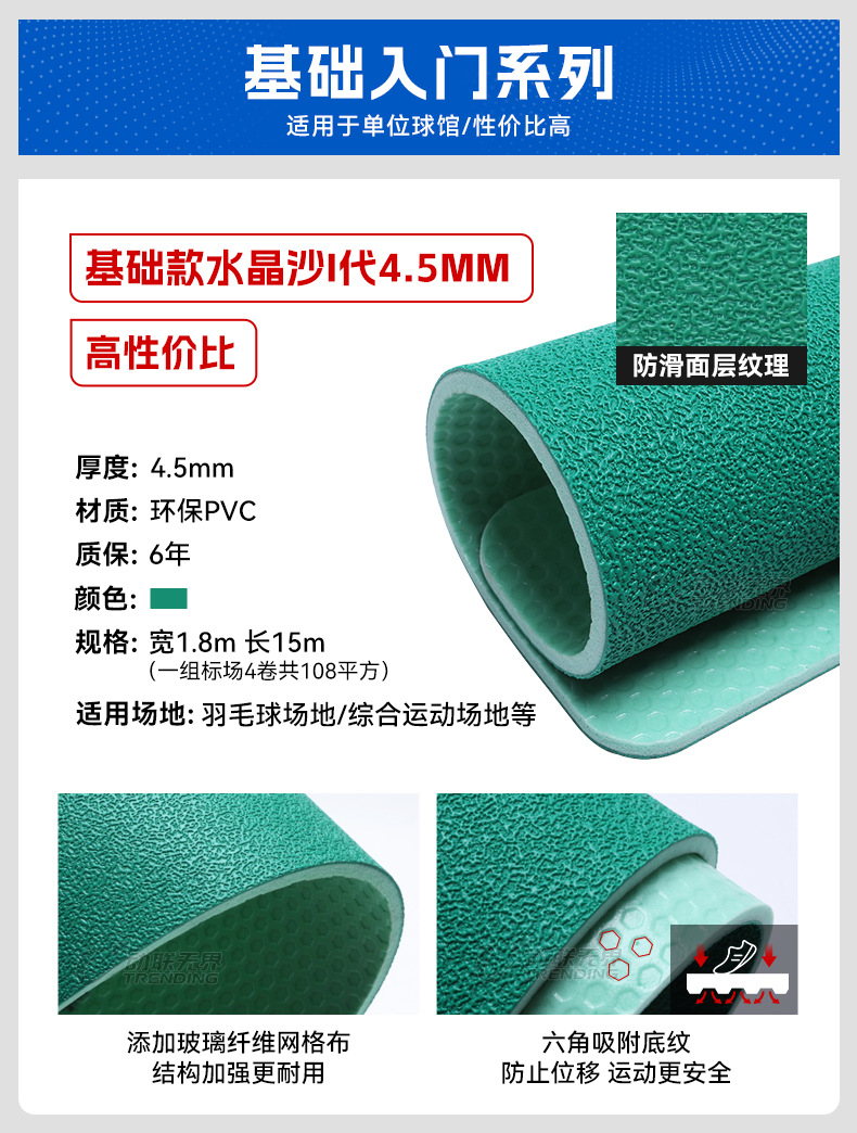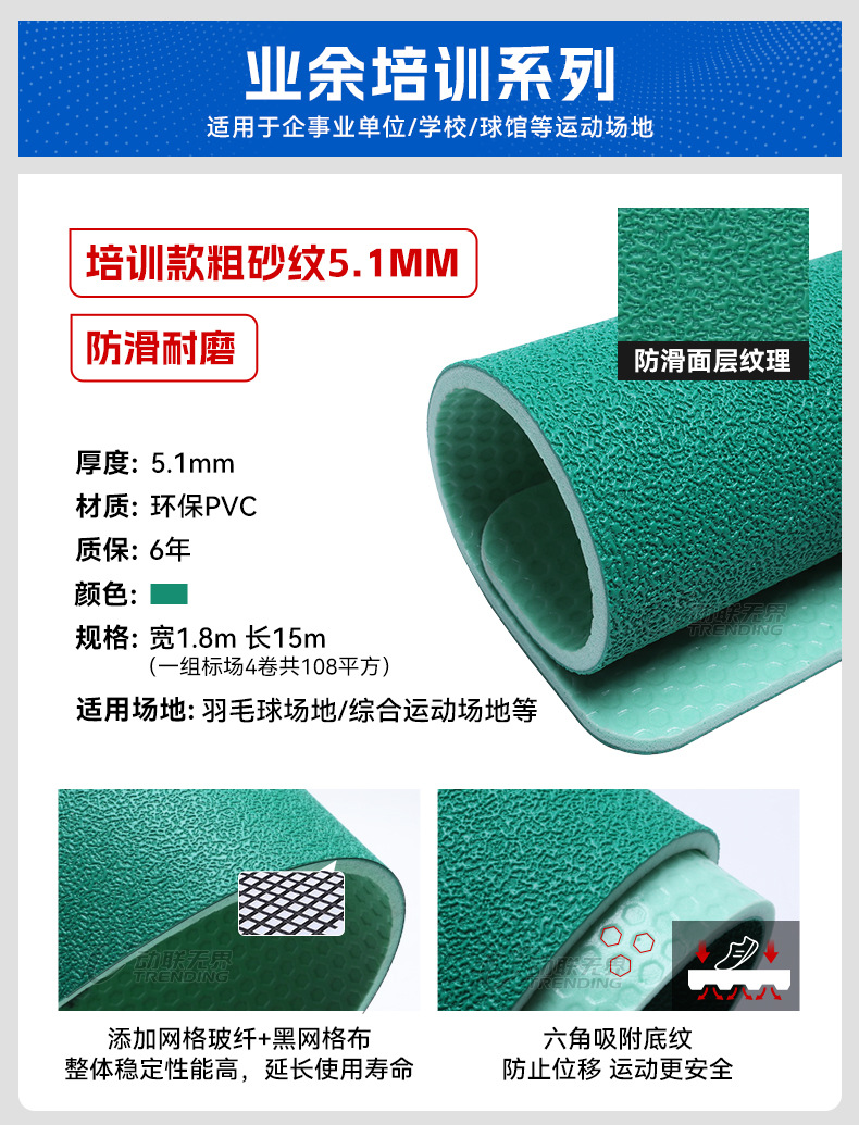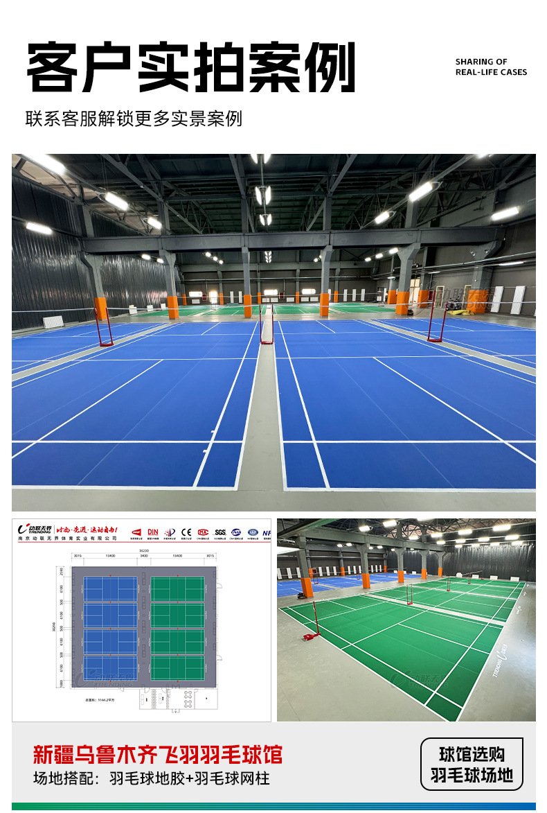 动联无界羽毛球馆地胶加厚耐磨羽毛球地胶垫 PVC运动地板水晶砂