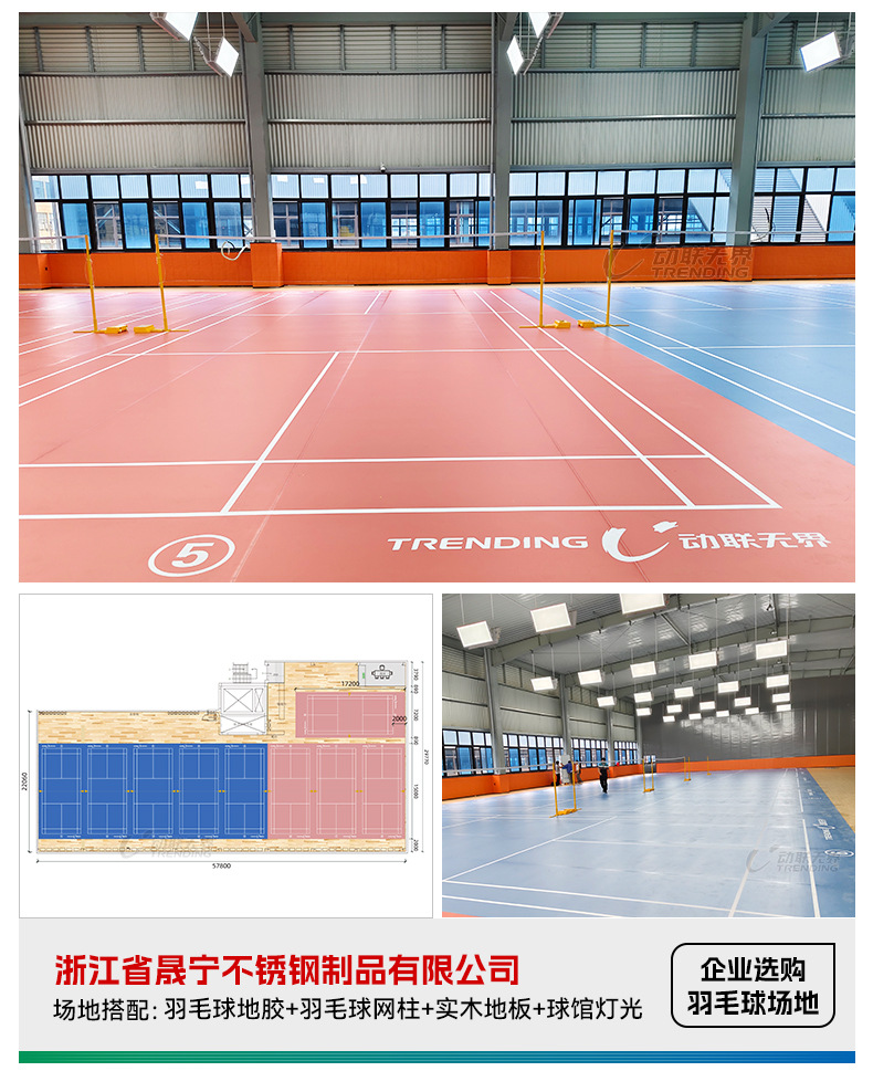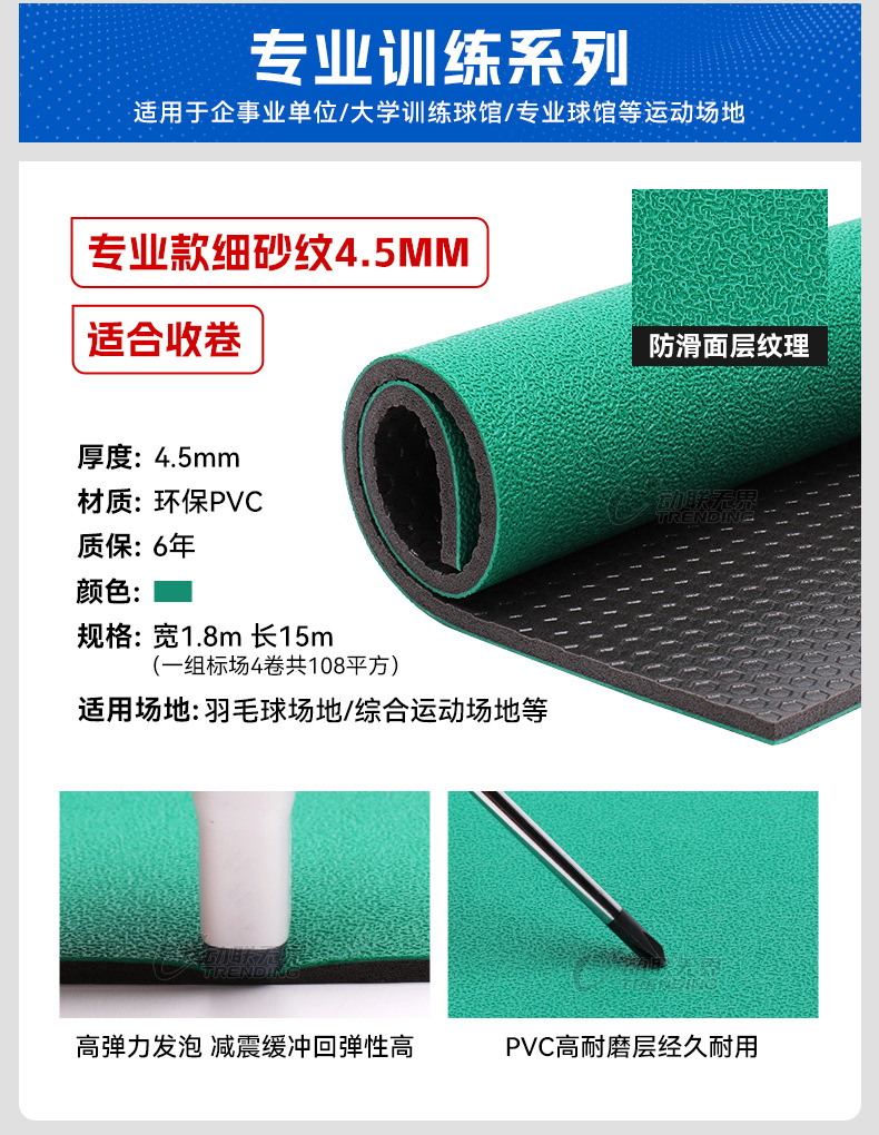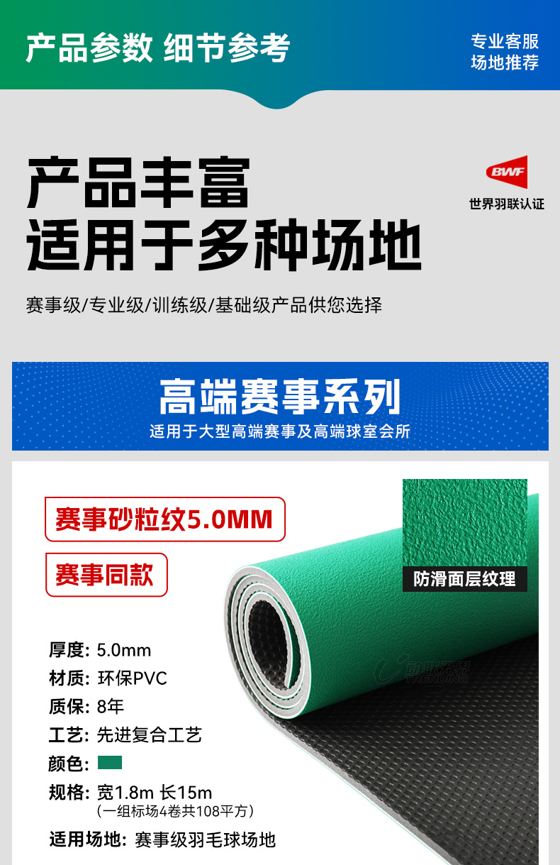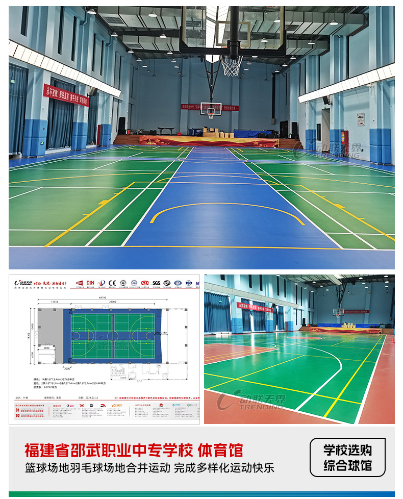 动联无界羽毛球馆地胶加厚耐磨羽毛球地胶垫 PVC运动地板水晶砂