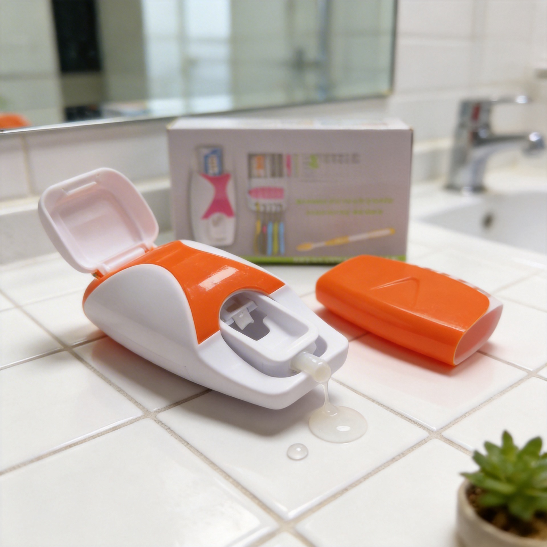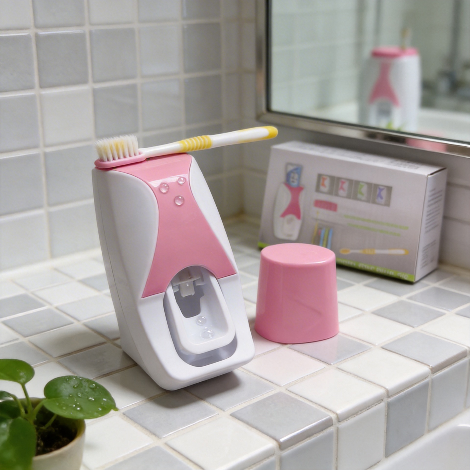 韩国全自动挤牙膏器吸盘套装touch me牙膏挤压器牙刷架英文包装