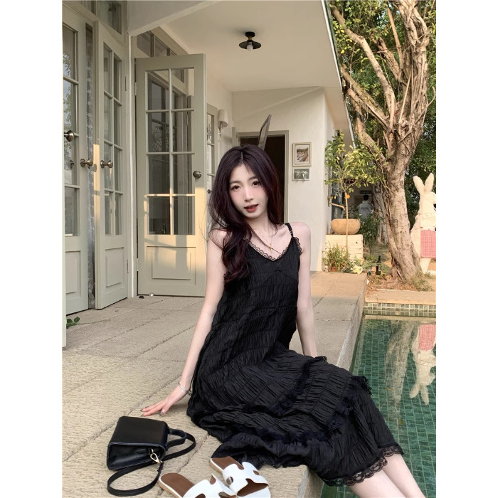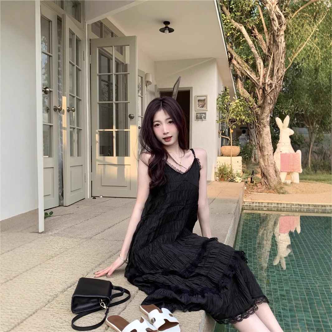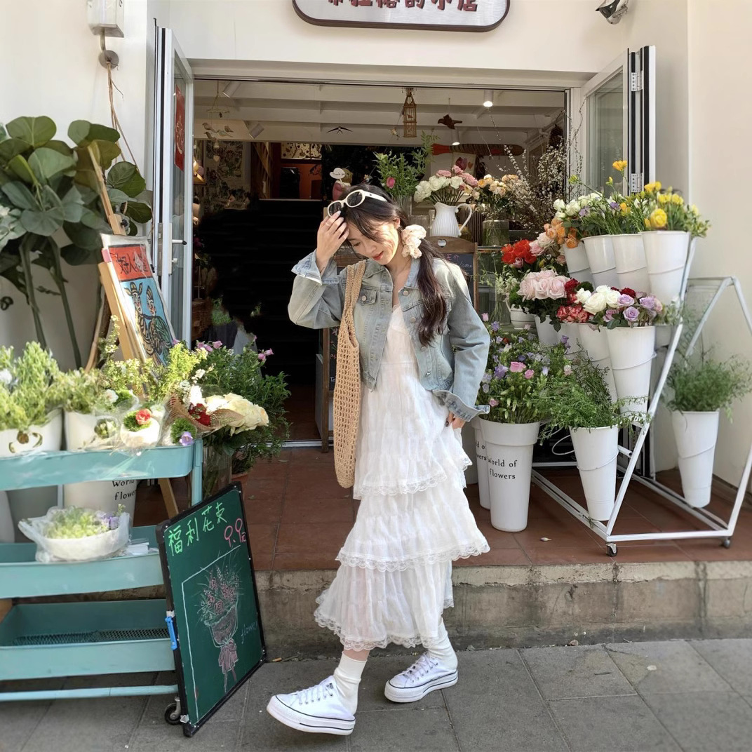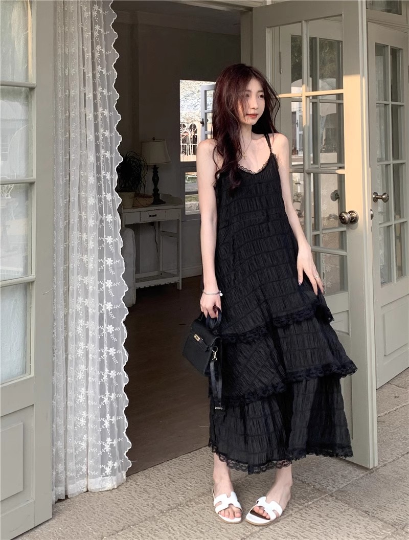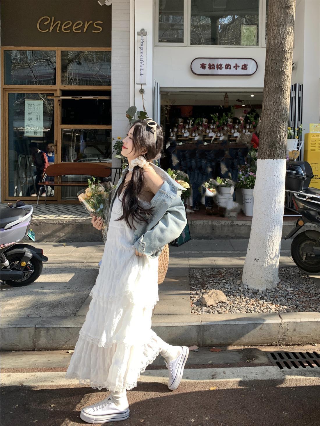 甜美减龄白色法式吊带连衣裙女装春季度假风小个子宽松蛋糕长裙子