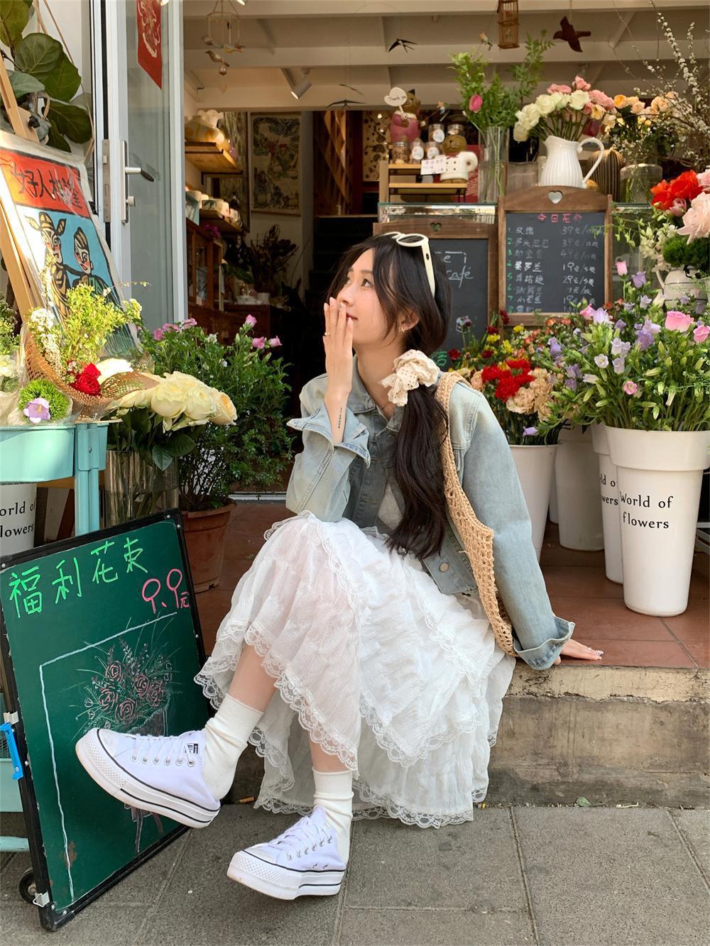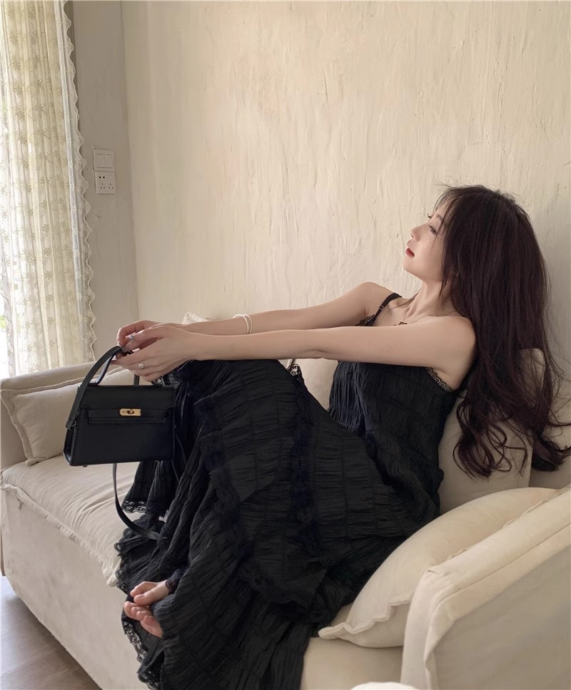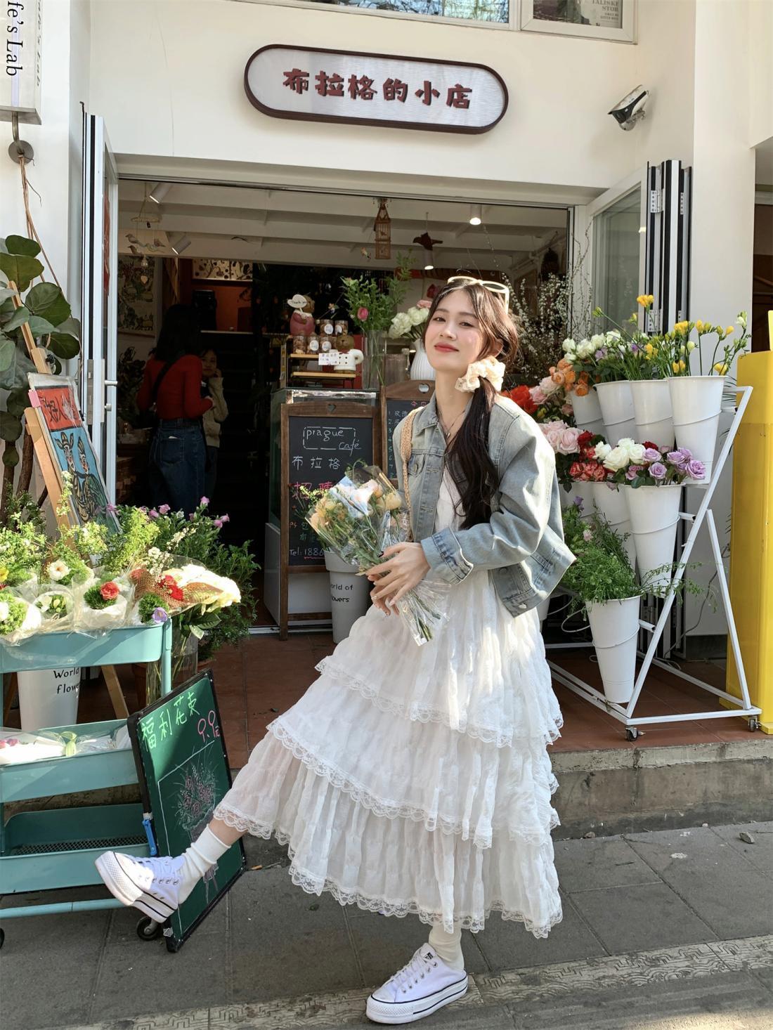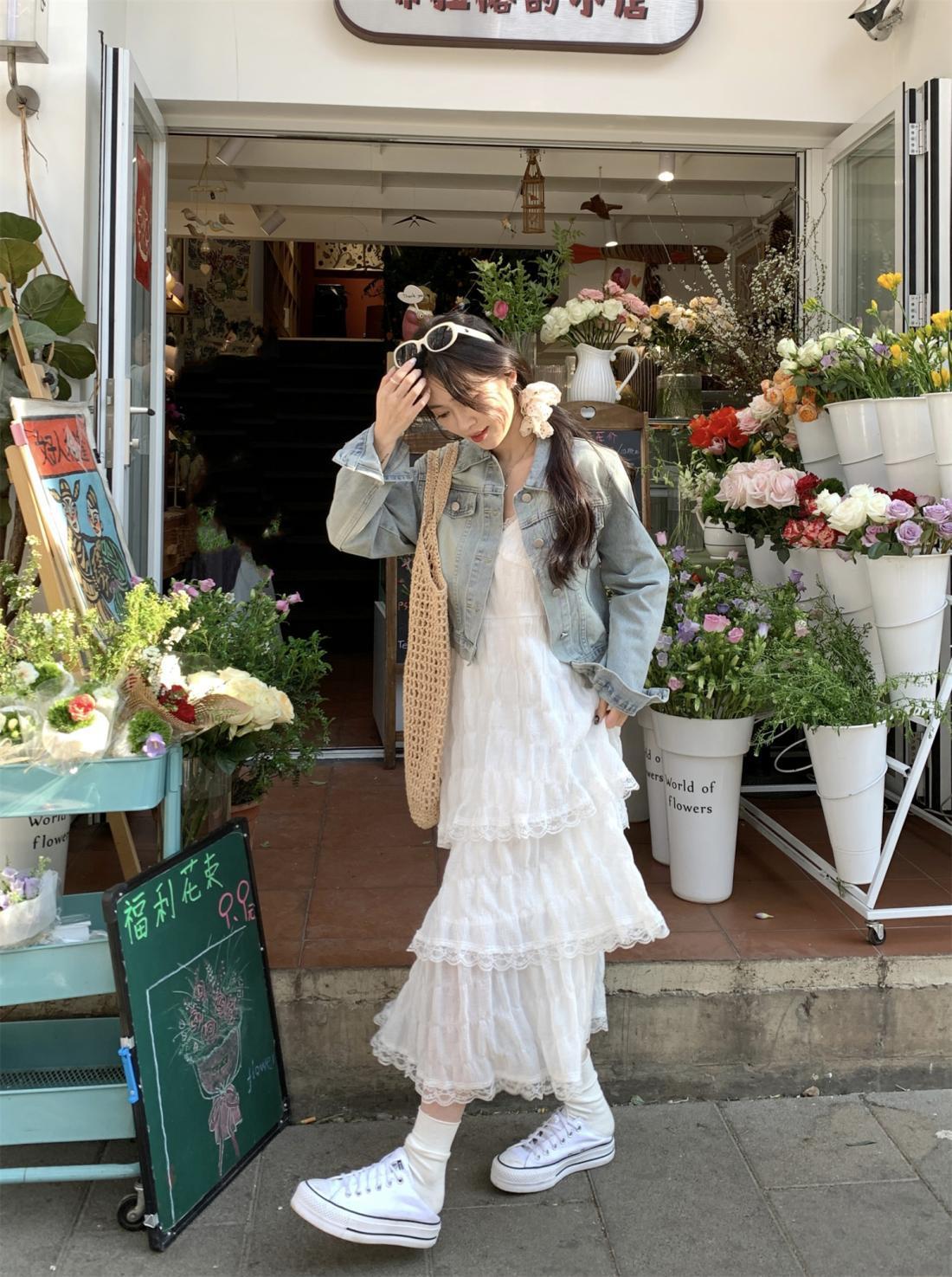 甜美减龄白色法式吊带连衣裙女装春季度假风小个子宽松蛋糕长裙子