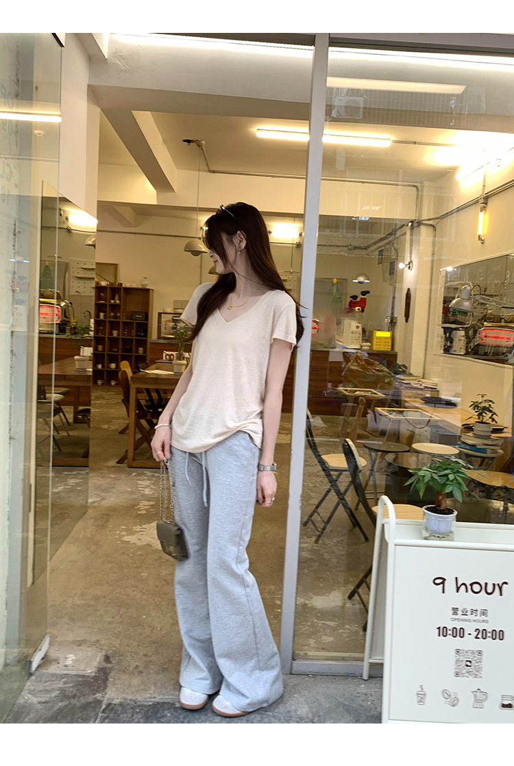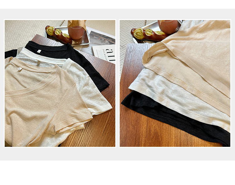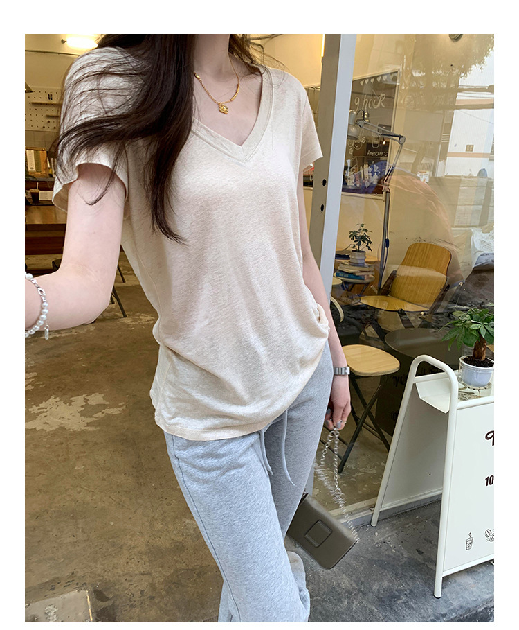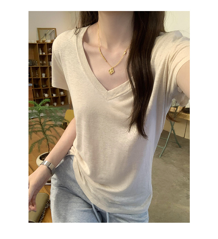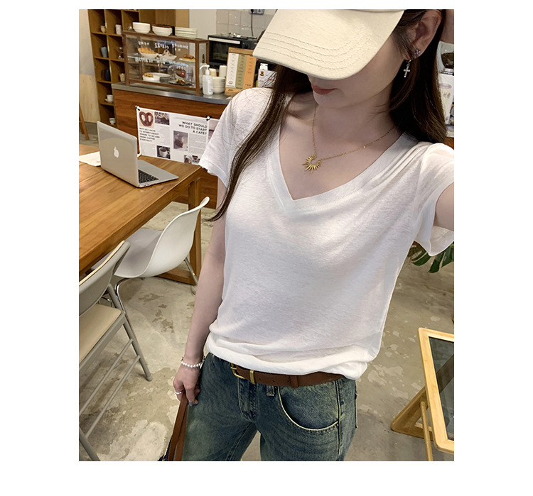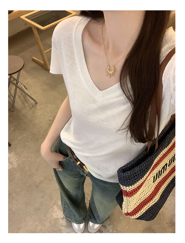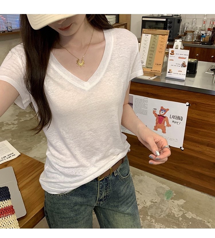 工厂直营法式纯欲辣妹V领薄款短袖T恤女2025夏新款韩系宽松显瘦上