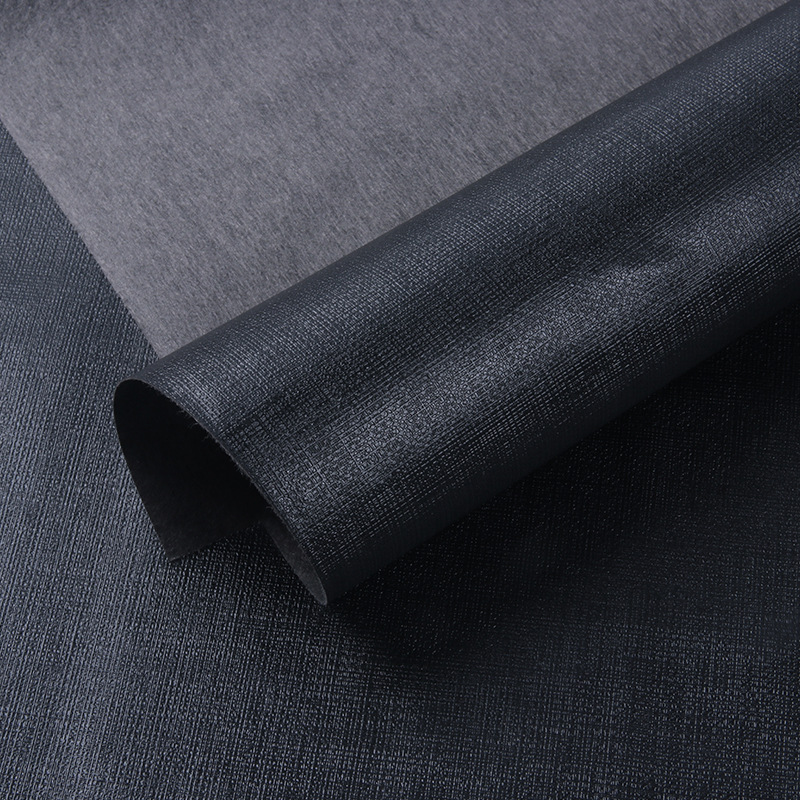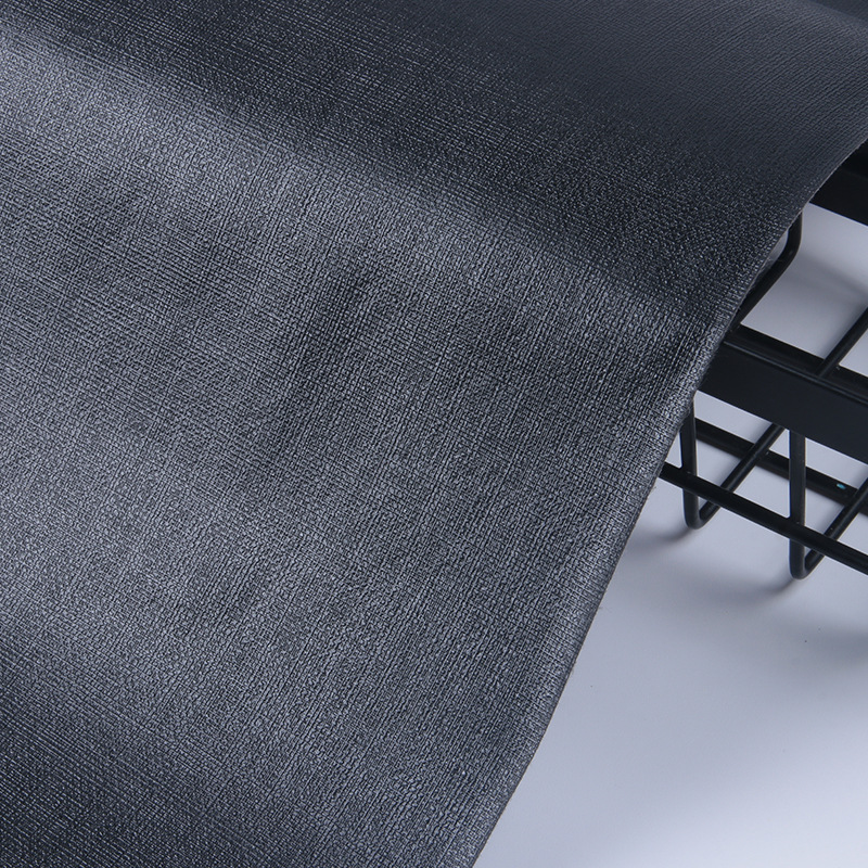 黑色经典麻布纹PVC皮革 耐磨水刺底箱包酒店装饰人造革