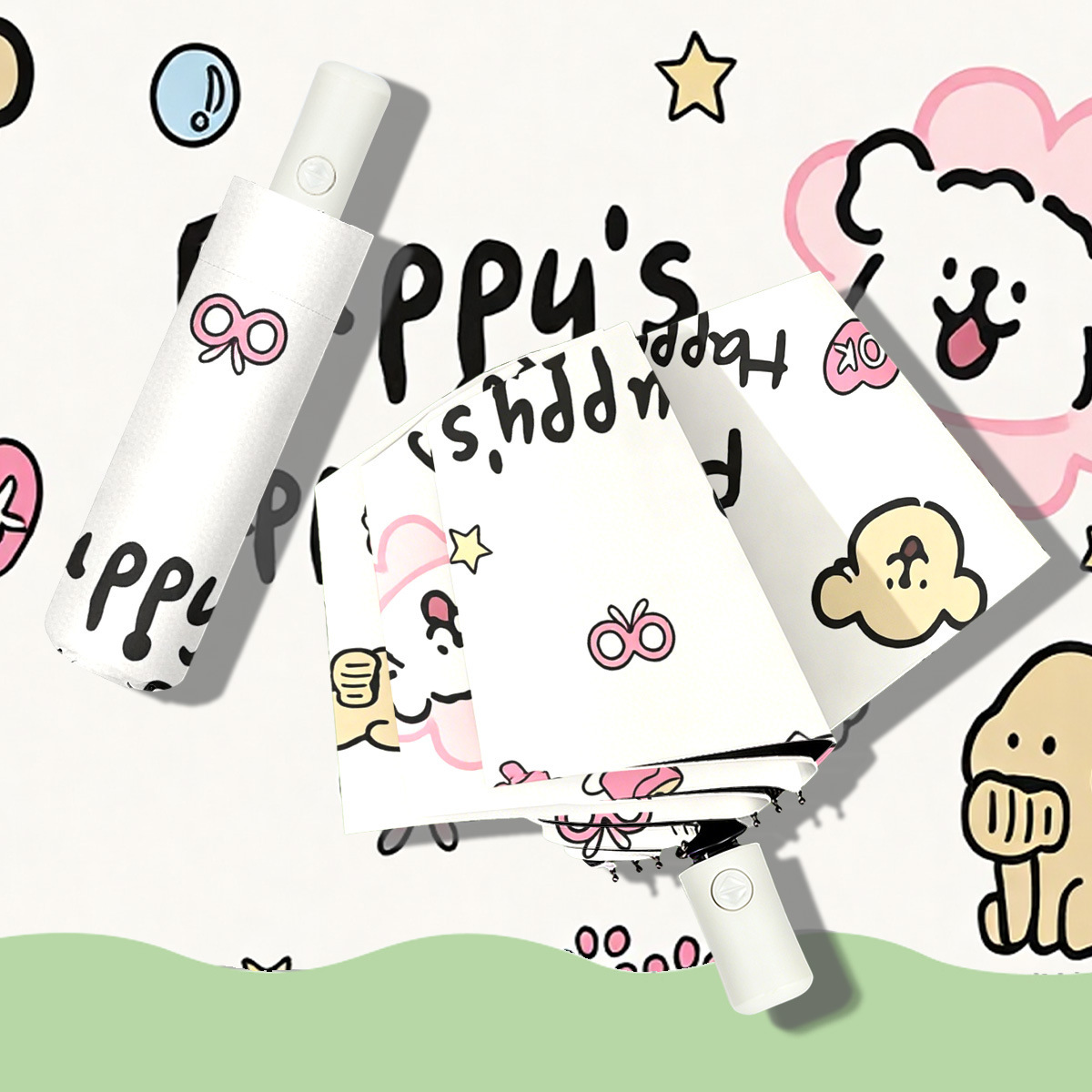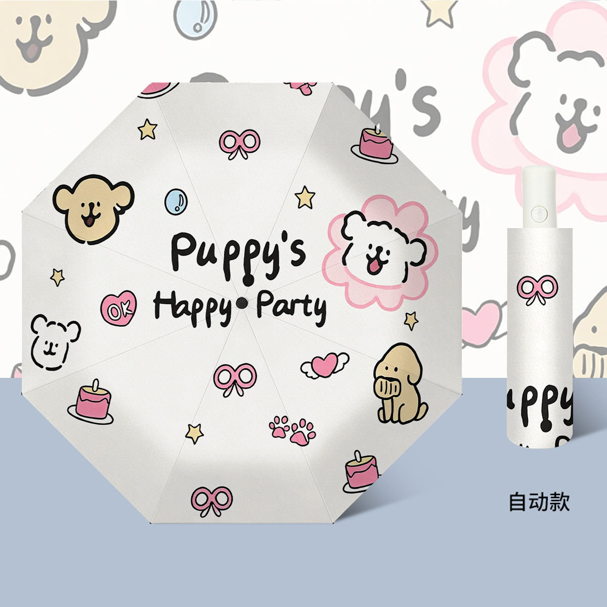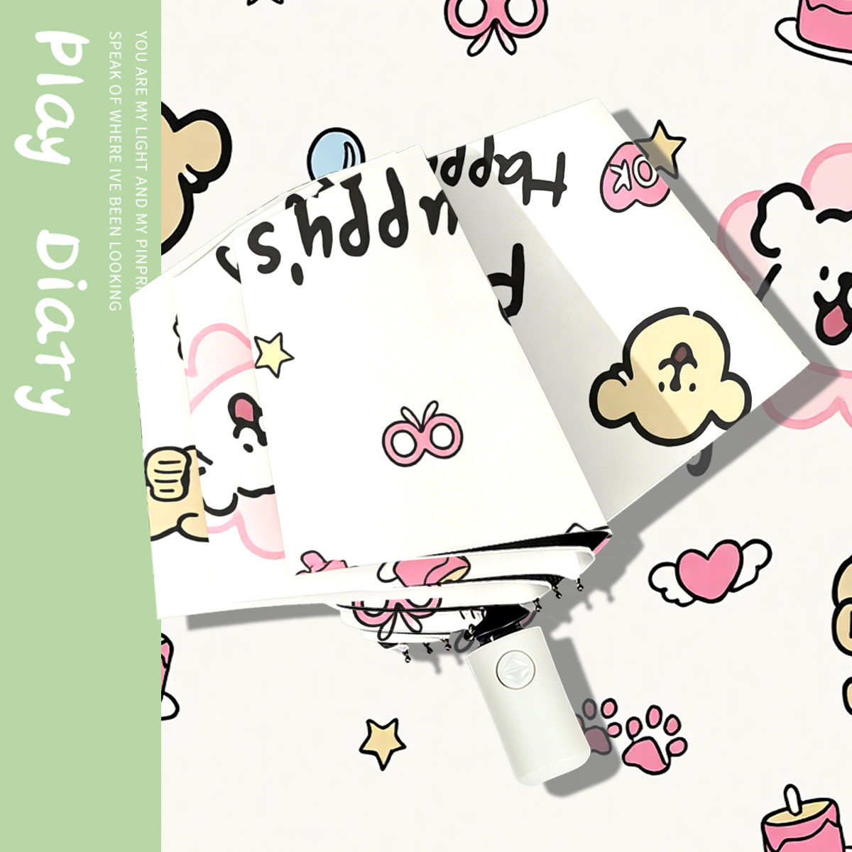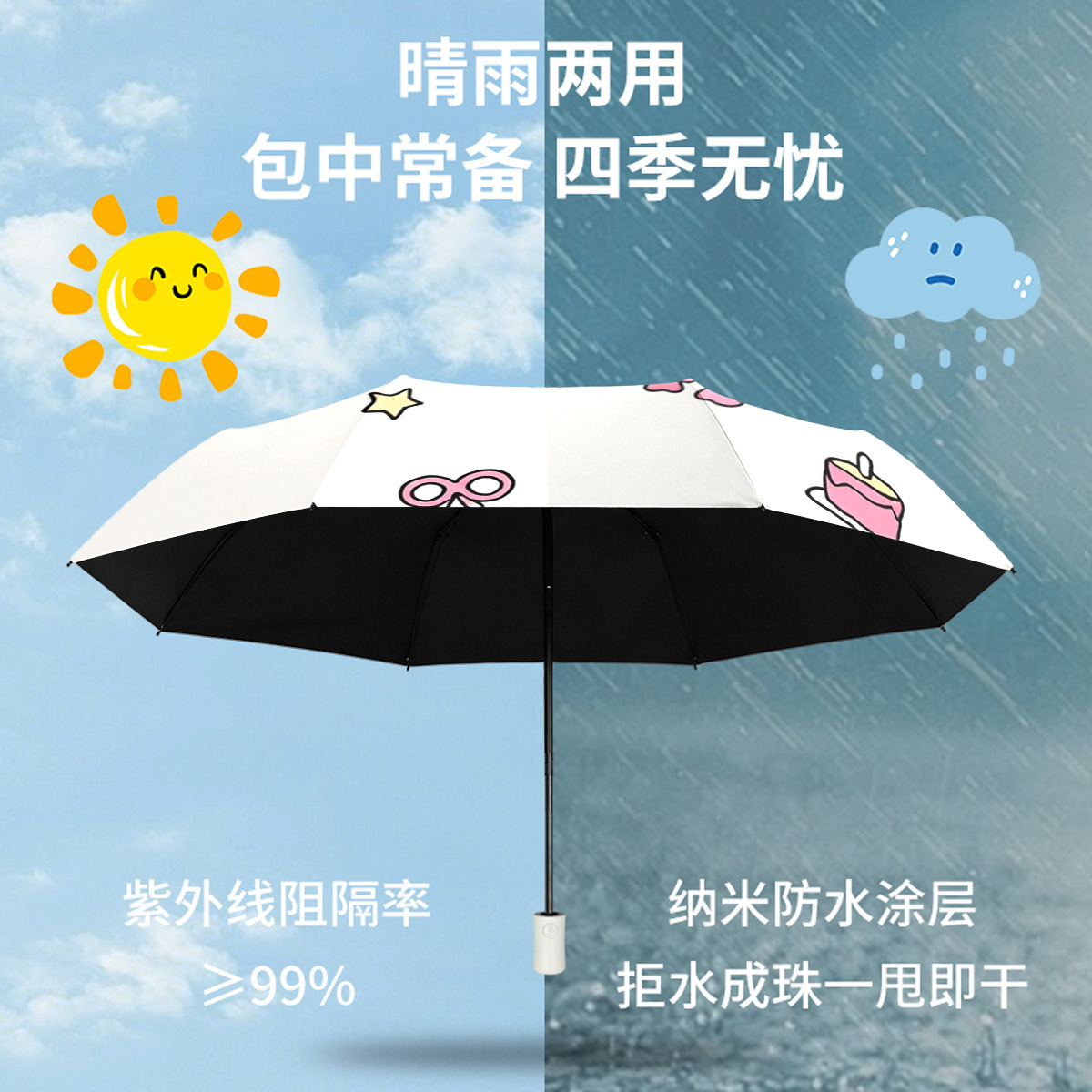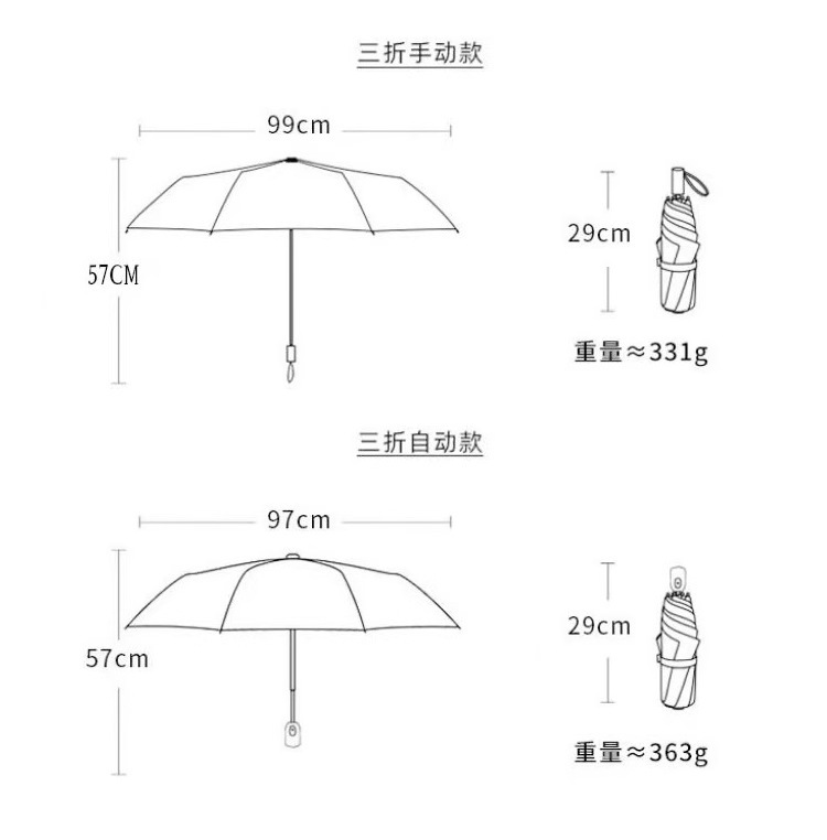 三折伞批发黑胶卡通雨伞自动伞可爱学生晴雨两用礼品伞折叠伞遮阳