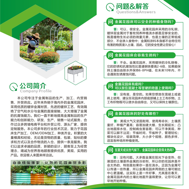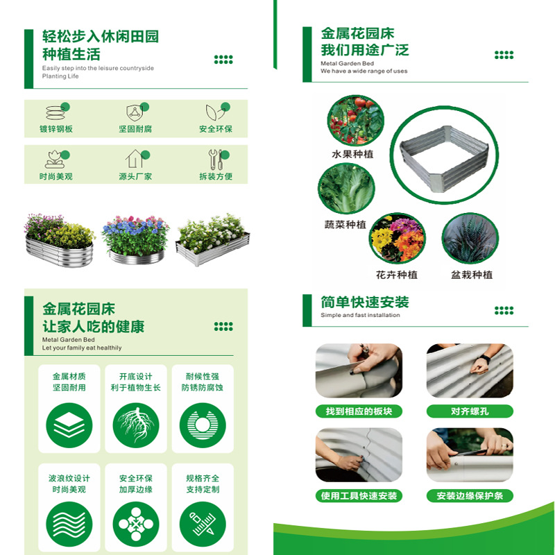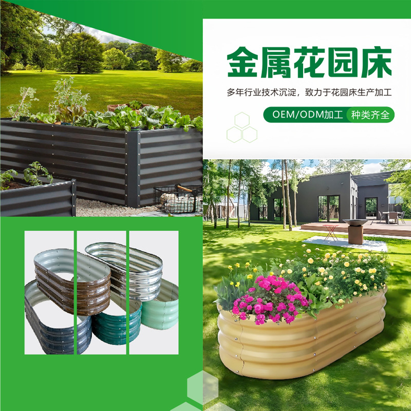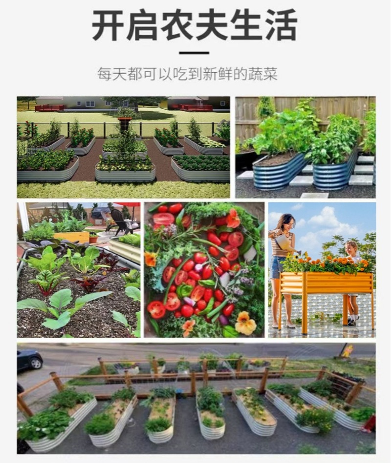镀锌钢金属花园床防腐防锈可拆卸花盆美式田园乡村风亚马逊种植箱