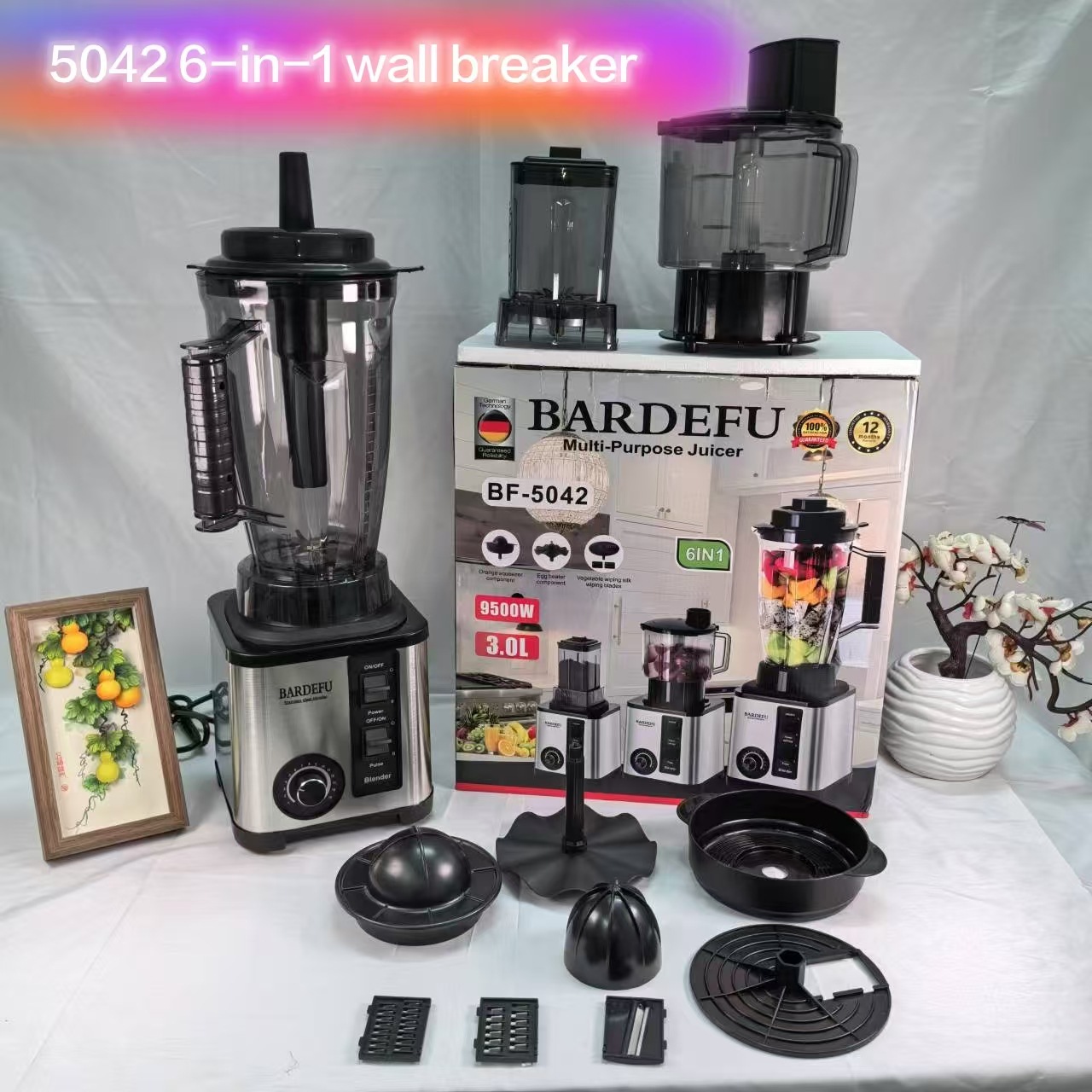 跨境4L8in1blender不锈钢商用大功率纯铜搅拌机绞肉碎冰榨汁机