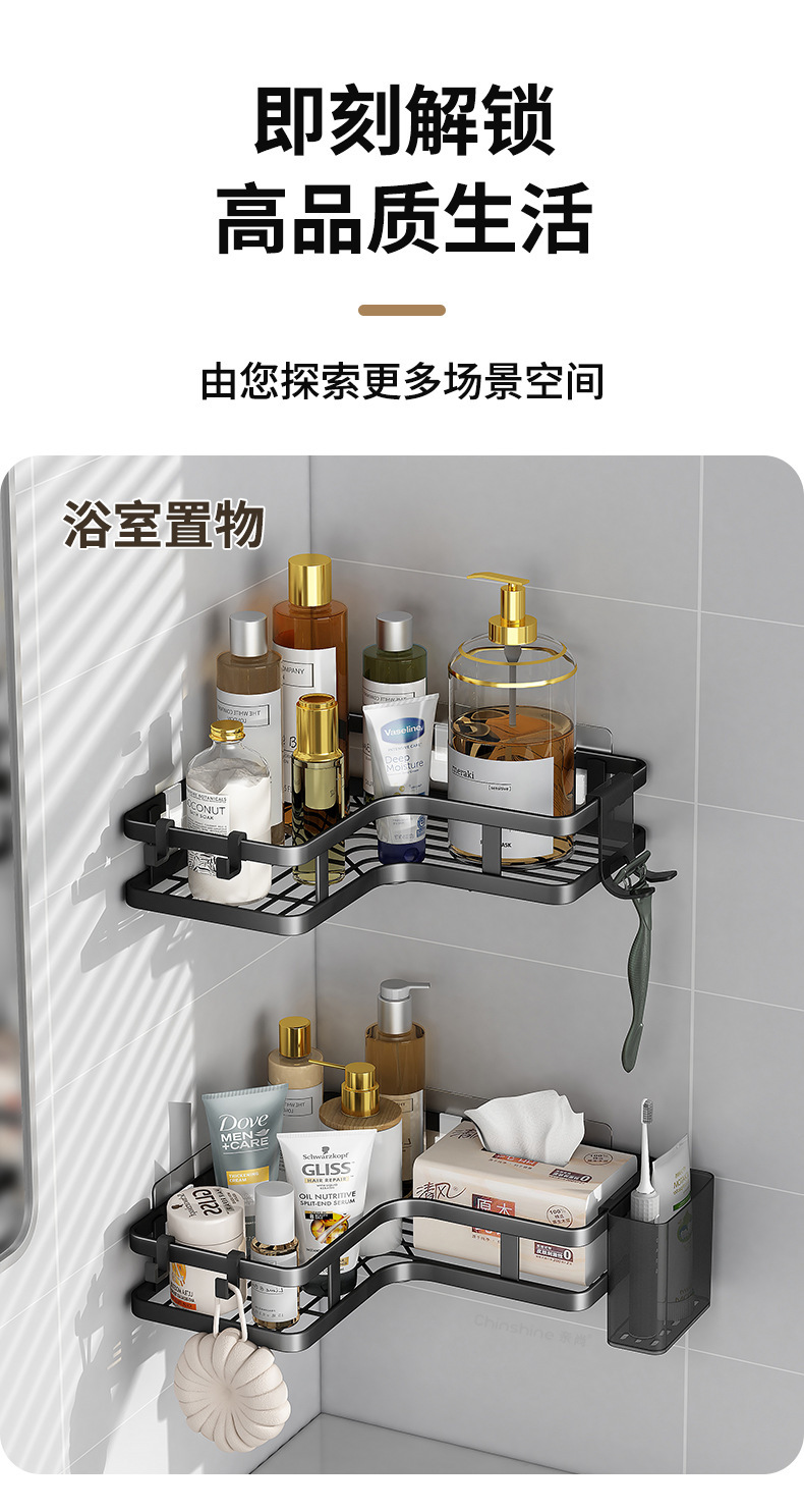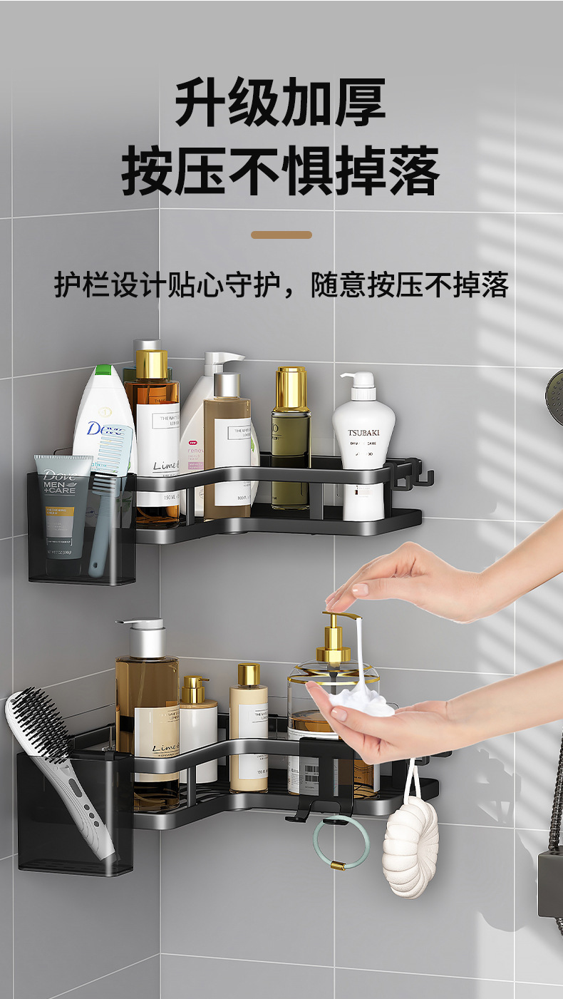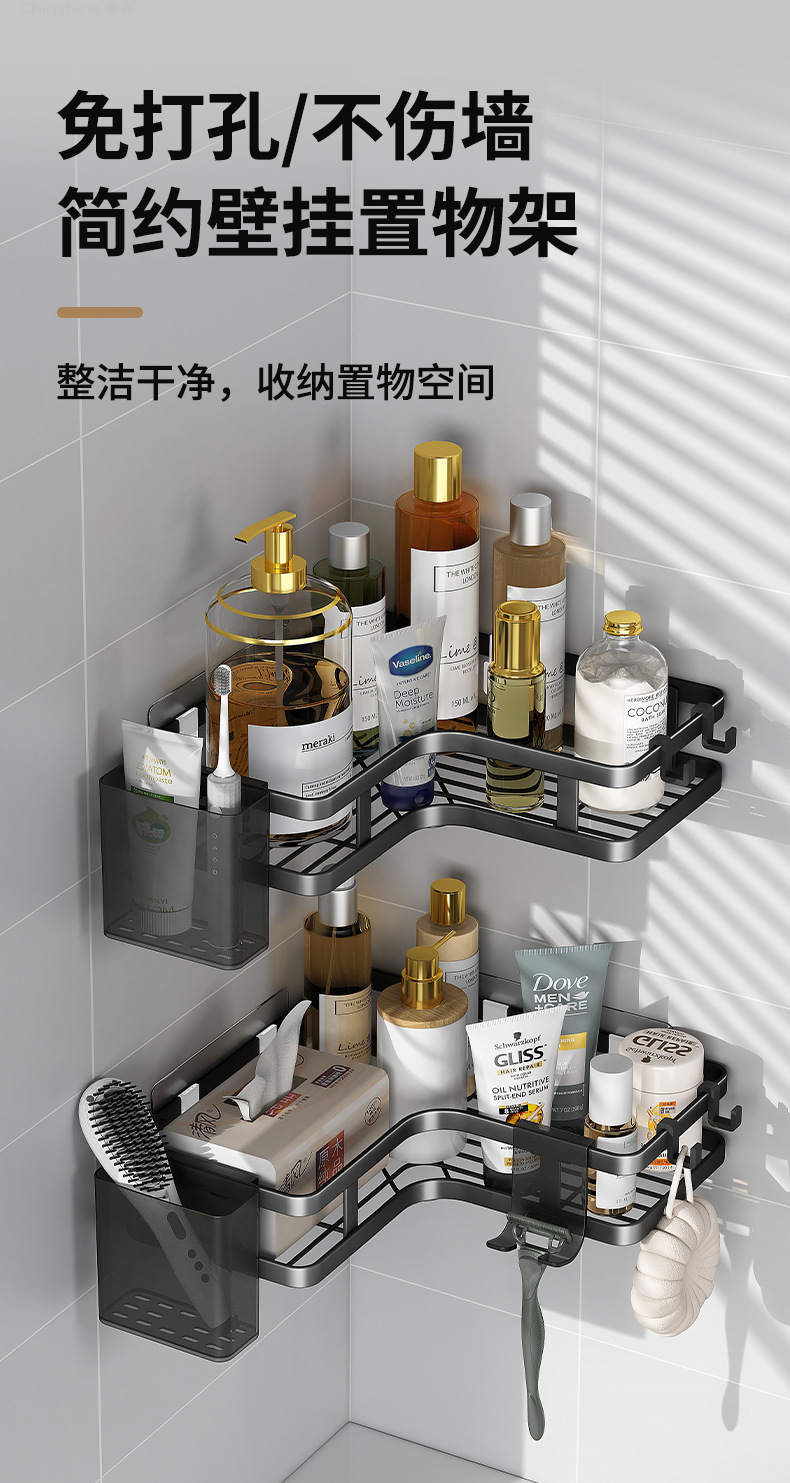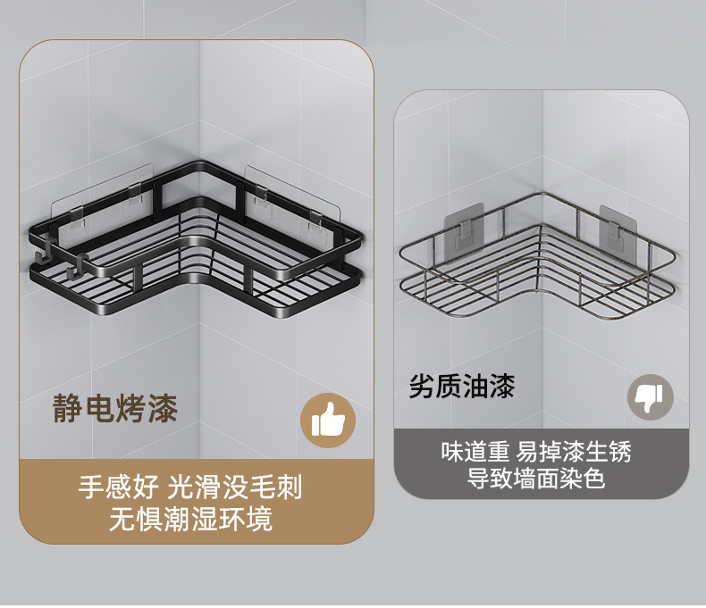 跨境浴室三角置物架卫生间洗漱品转角收纳架亚马逊铁艺免打孔套装