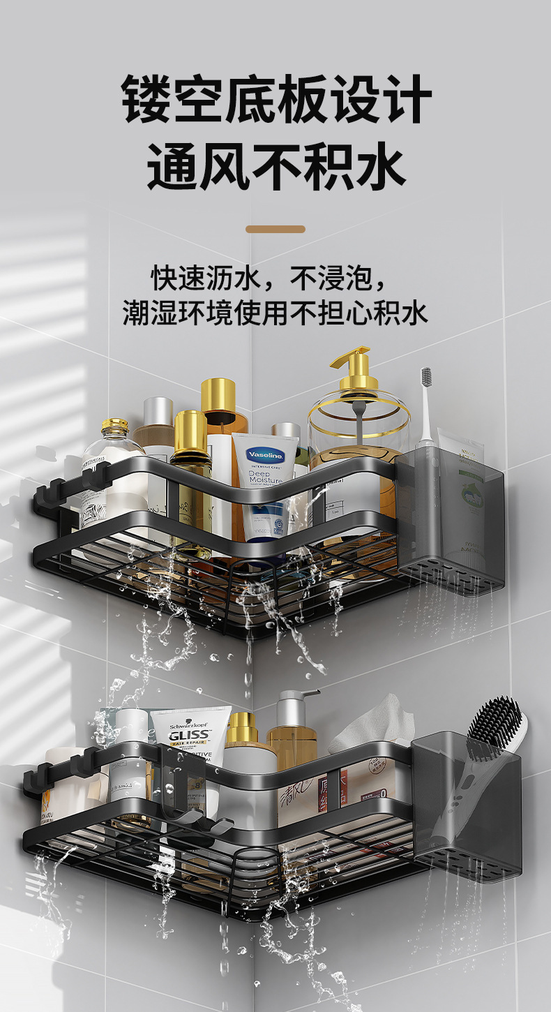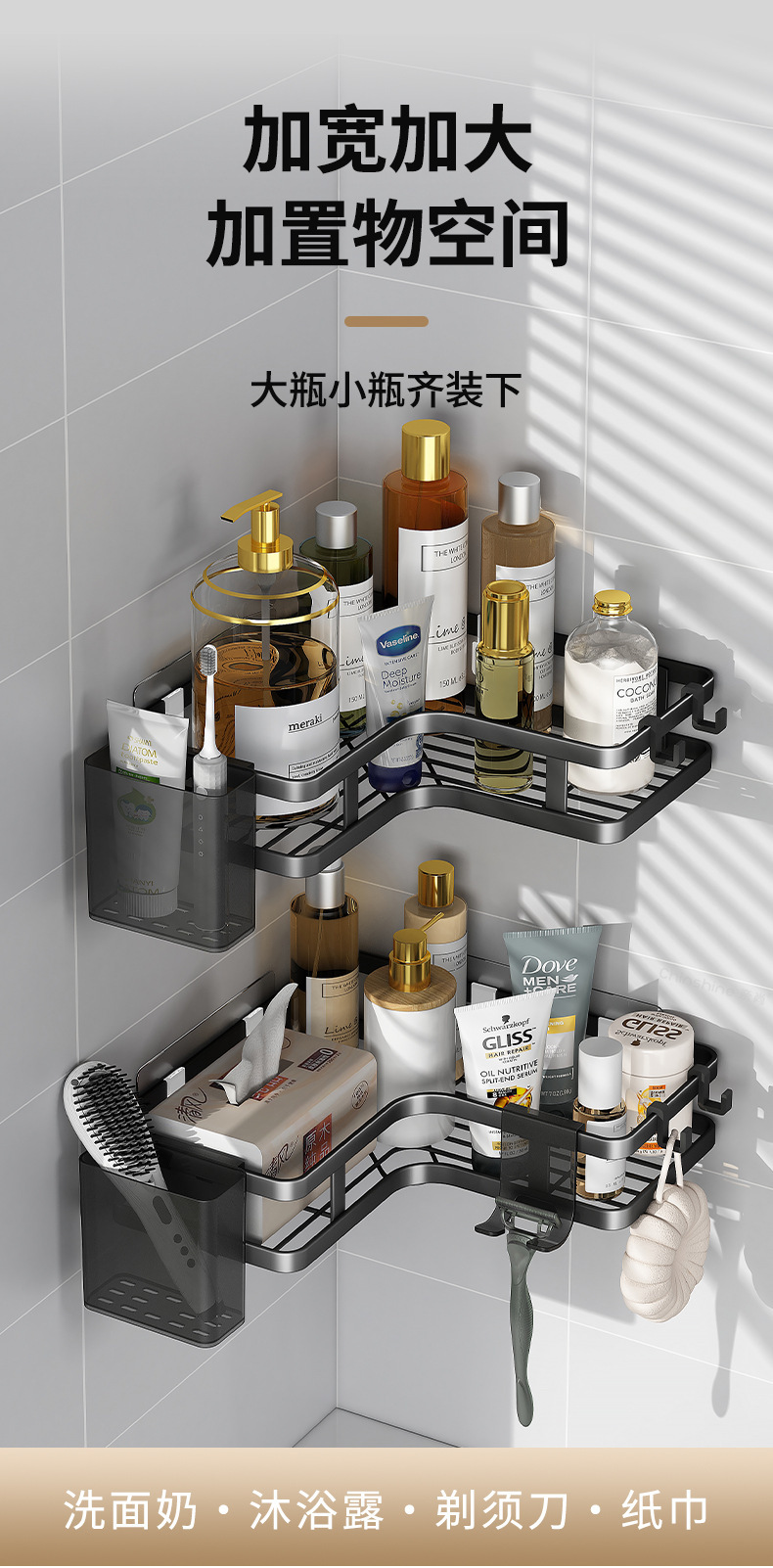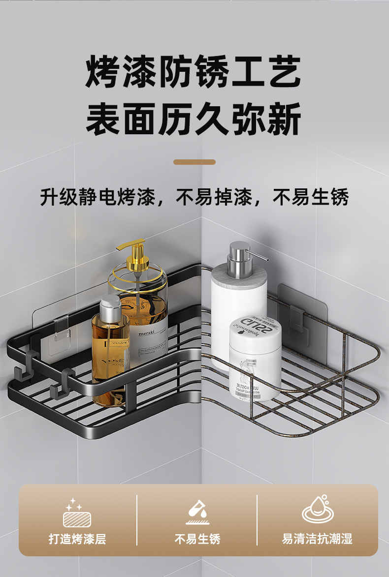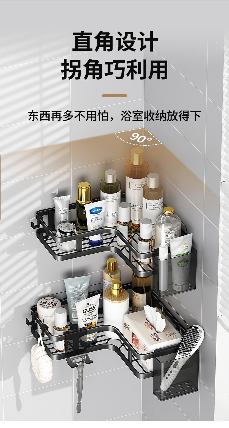 跨境浴室三角置物架卫生间洗漱品转角收纳架亚马逊铁艺免打孔套装