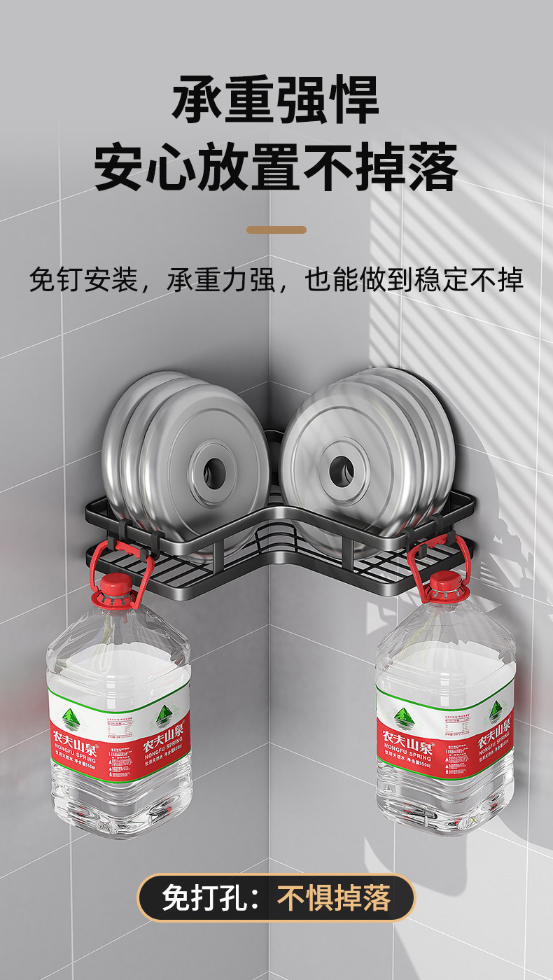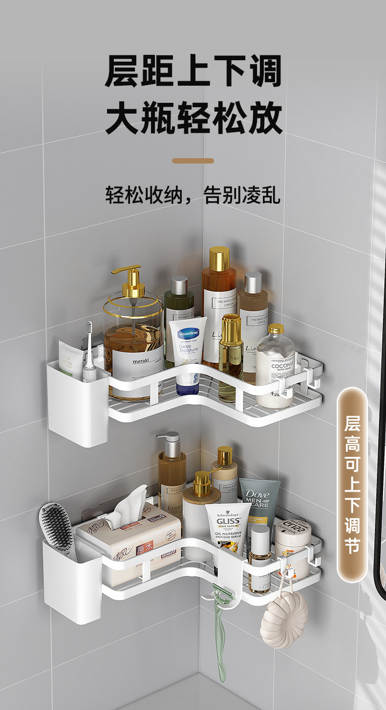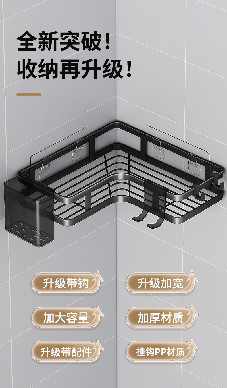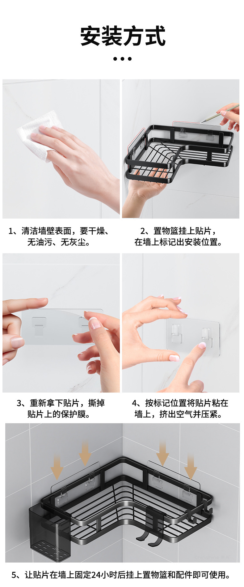 跨境浴室三角置物架卫生间洗漱品转角收纳架亚马逊铁艺免打孔套装