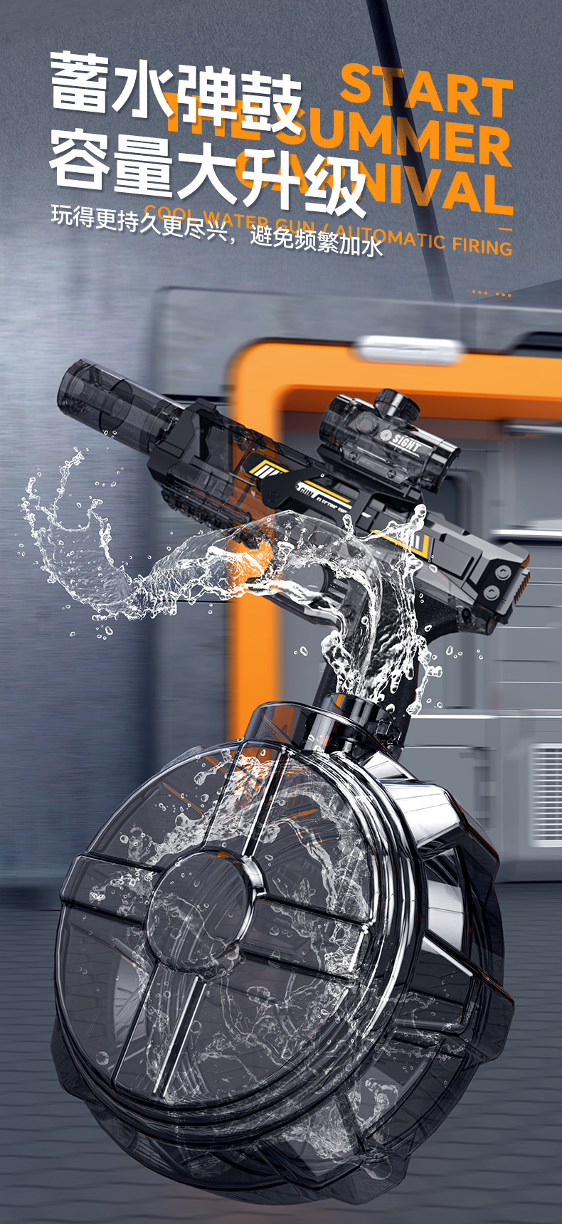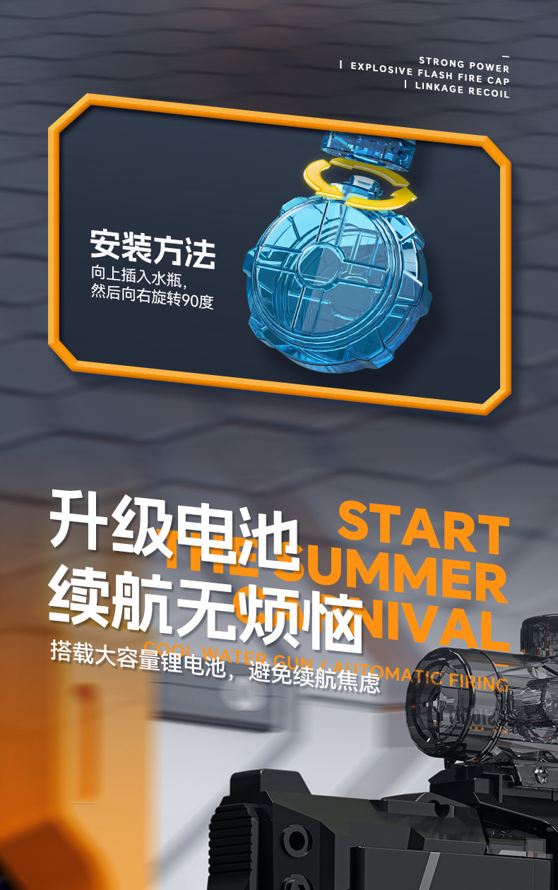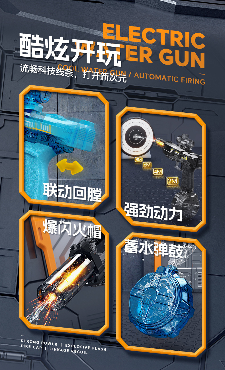 跨境爆款火光小冰鼠电动水枪儿童酷炫喷火连发联动回膛脉冲呲水枪