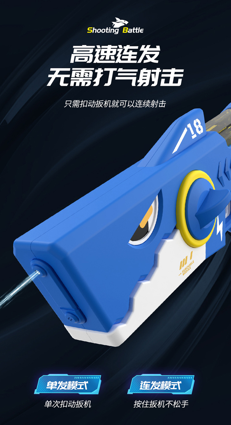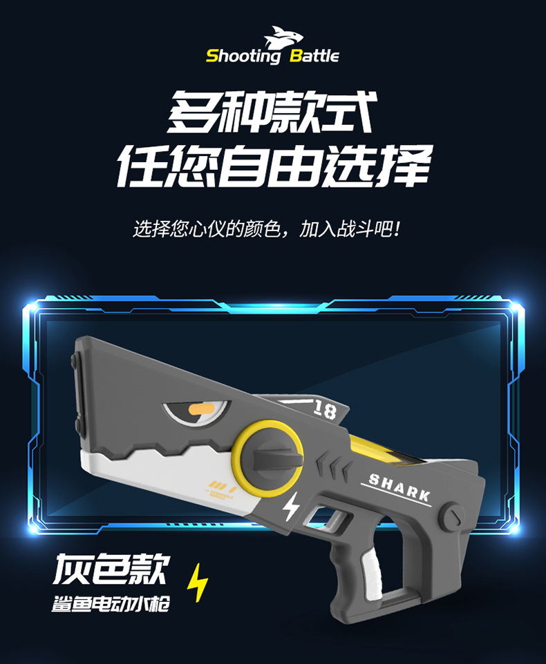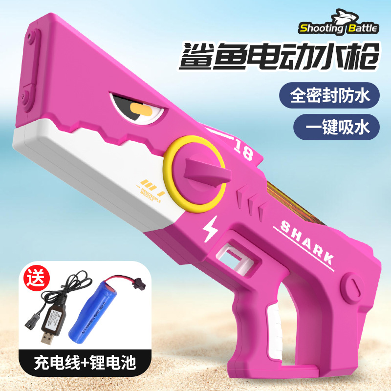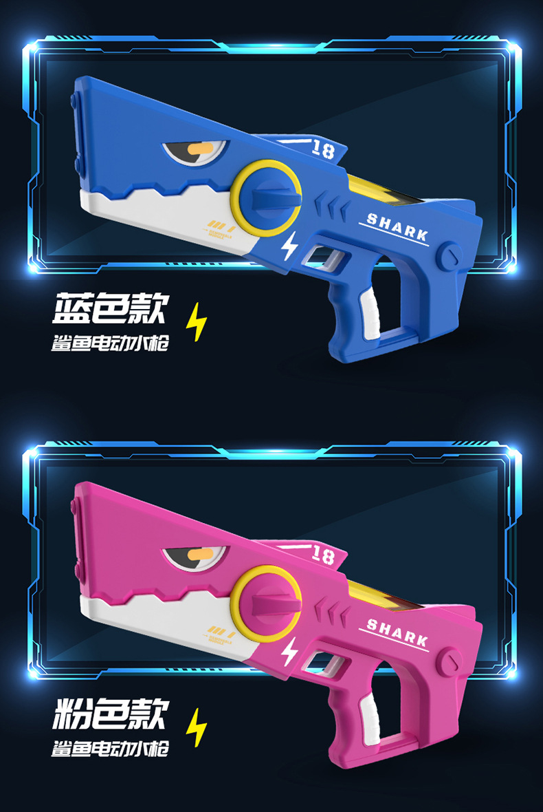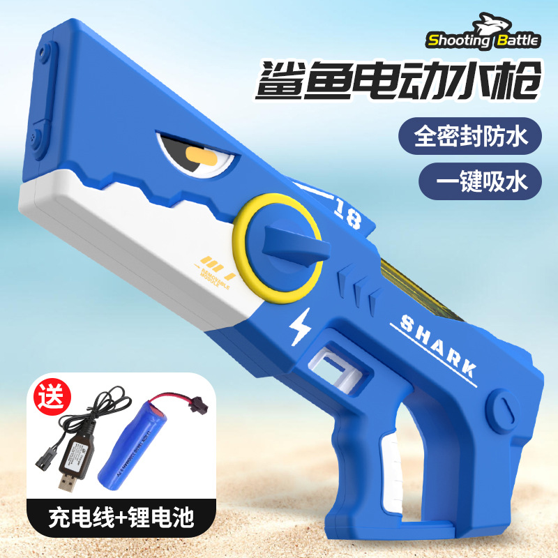 爆款鲨鱼电动手枪自动连发儿童玩具高压强力滋水枪室内外戏水玩具