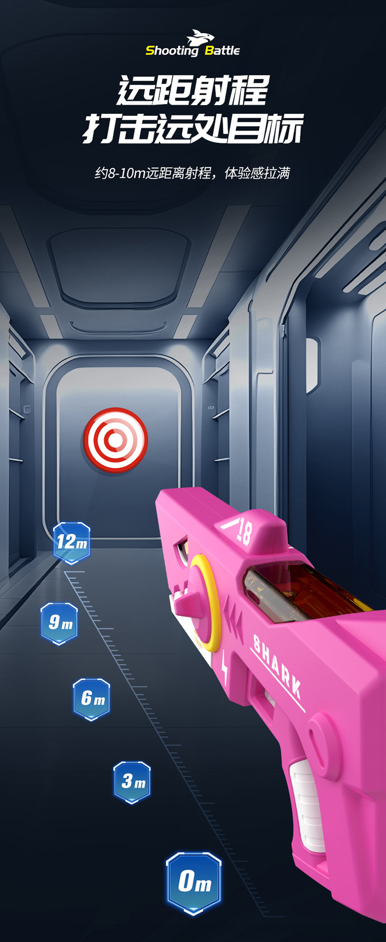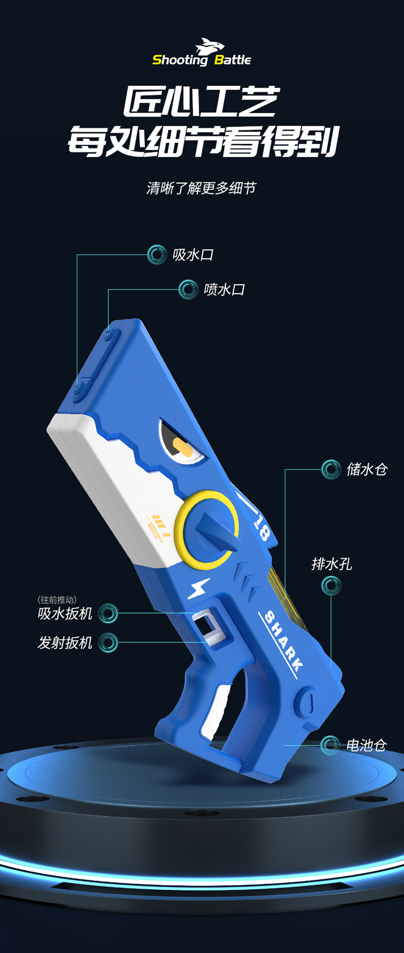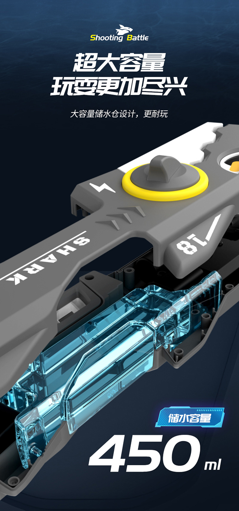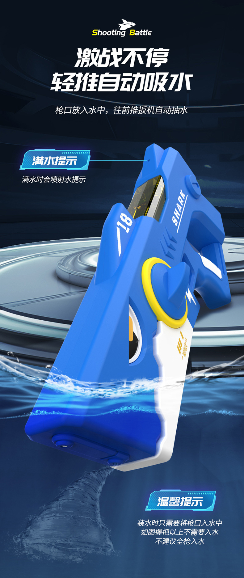 爆款鲨鱼电动手枪自动连发儿童玩具高压强力滋水枪室内外戏水玩具
