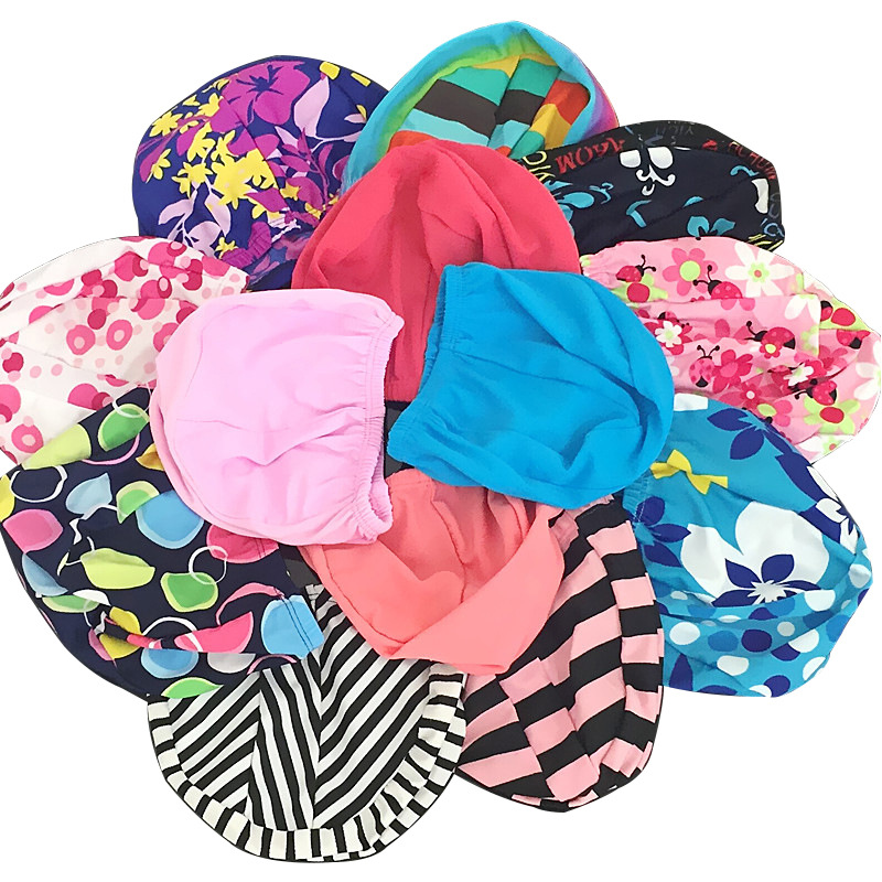 专用泳帽纯色不勒头大帽檐男女通用成人花色涤纶布游泳帽批发