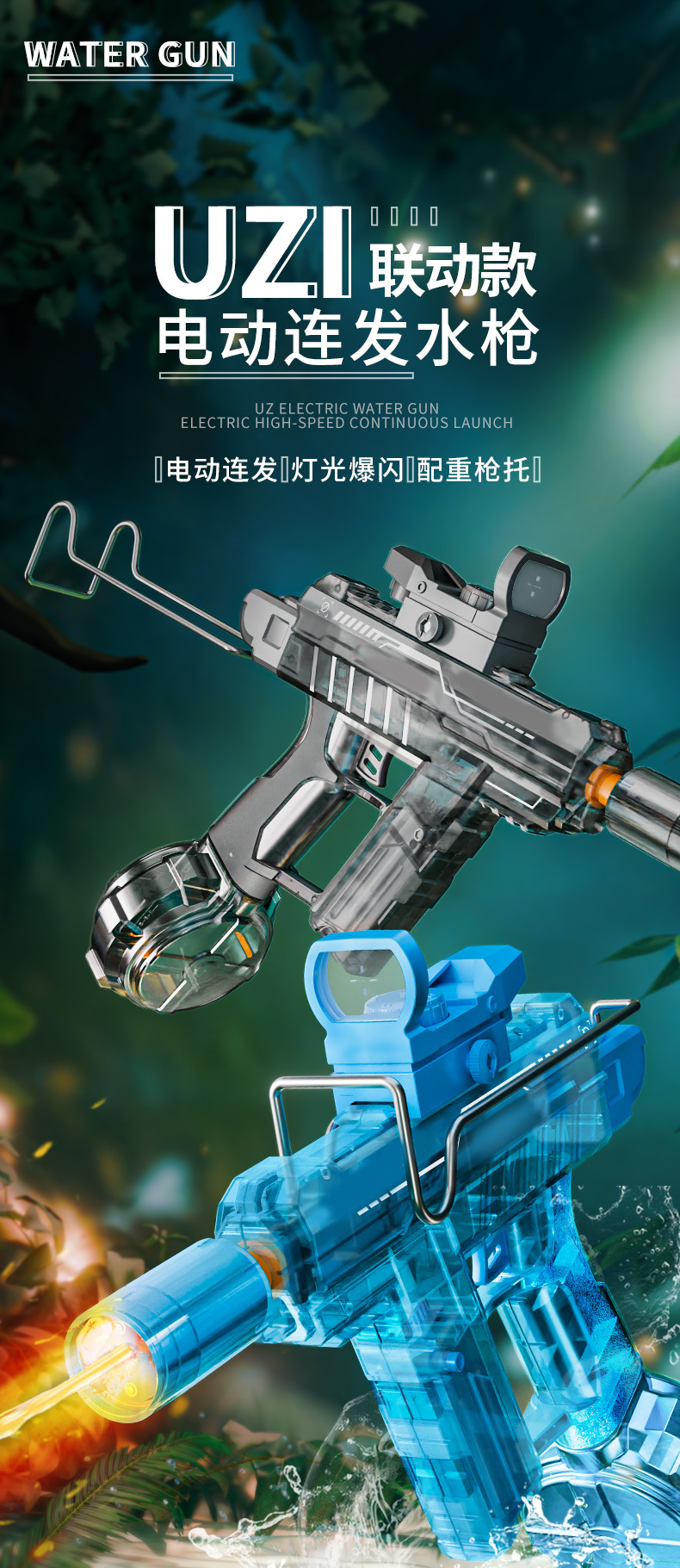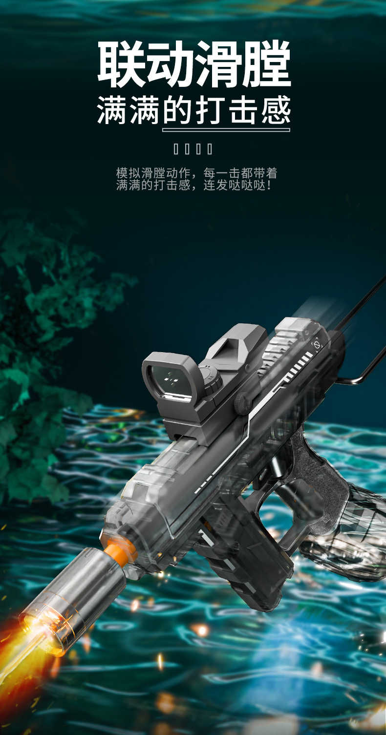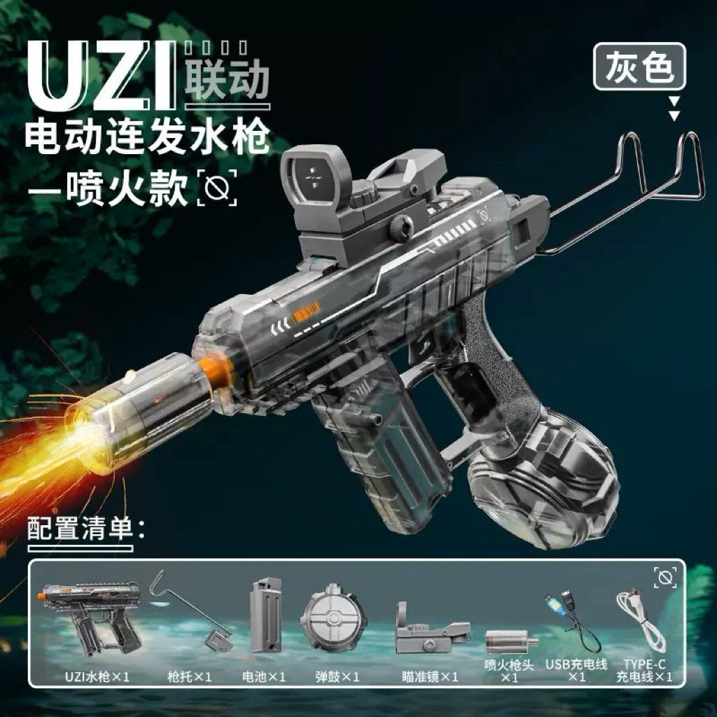 冰爆uiz乌兹电动连发水枪手自一体灯光爆闪电动联动回膛儿童玩具