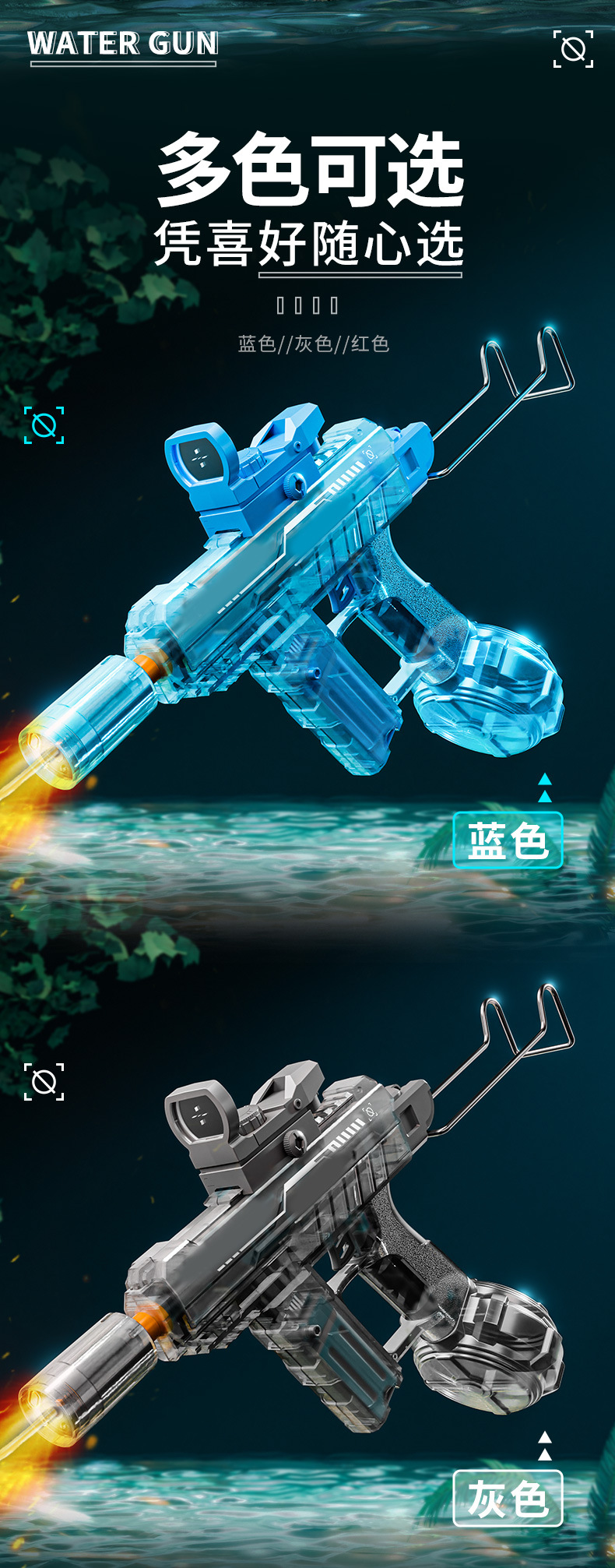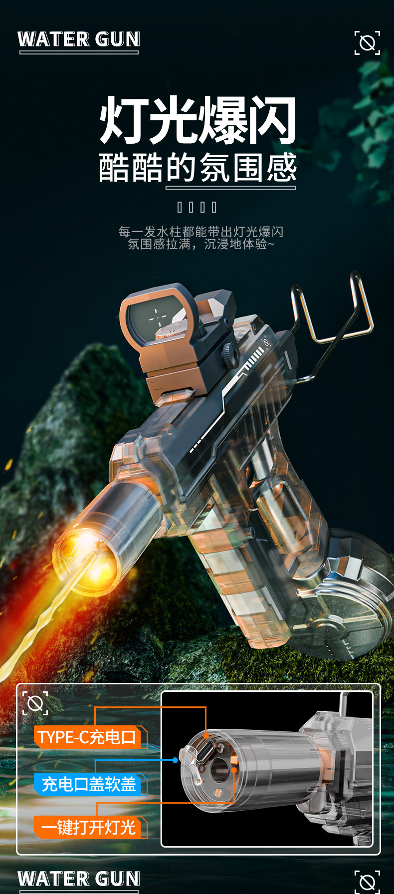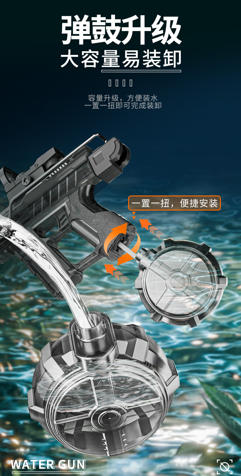 冰爆uiz乌兹电动连发水枪手自一体灯光爆闪电动联动回膛儿童玩具