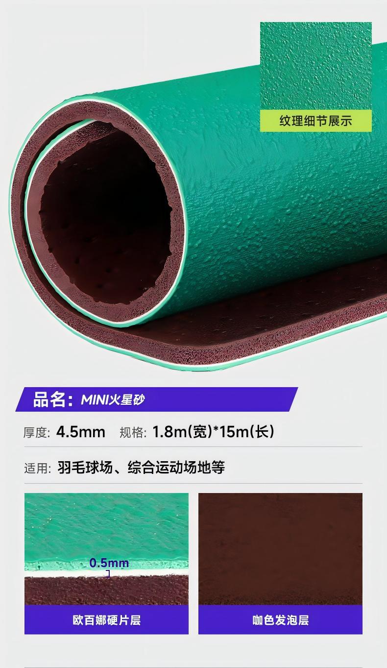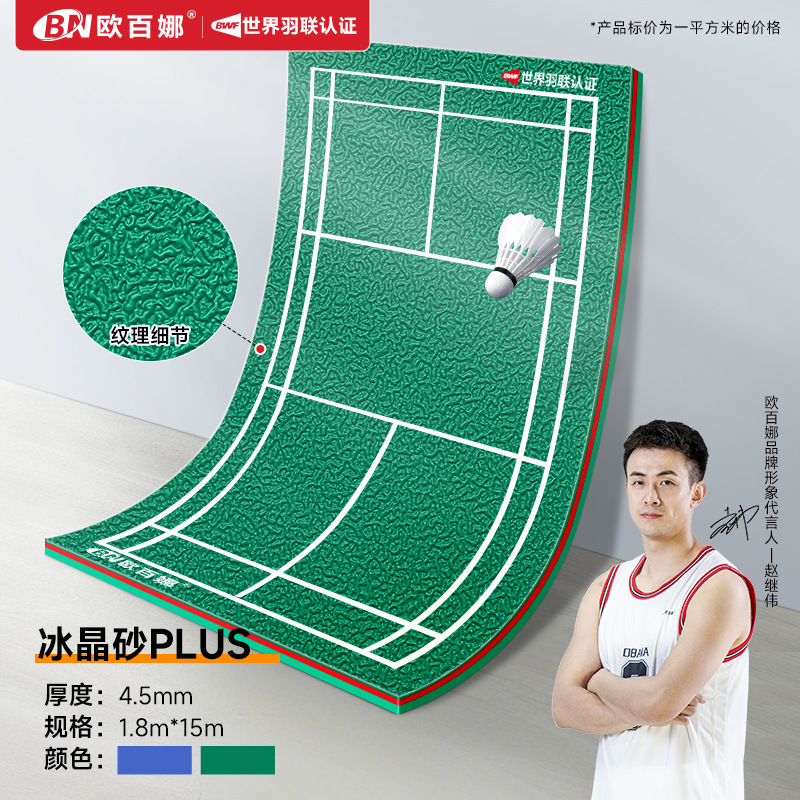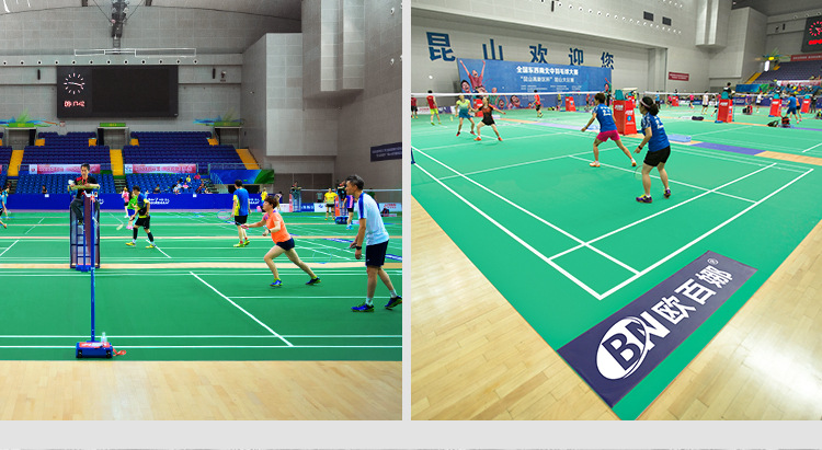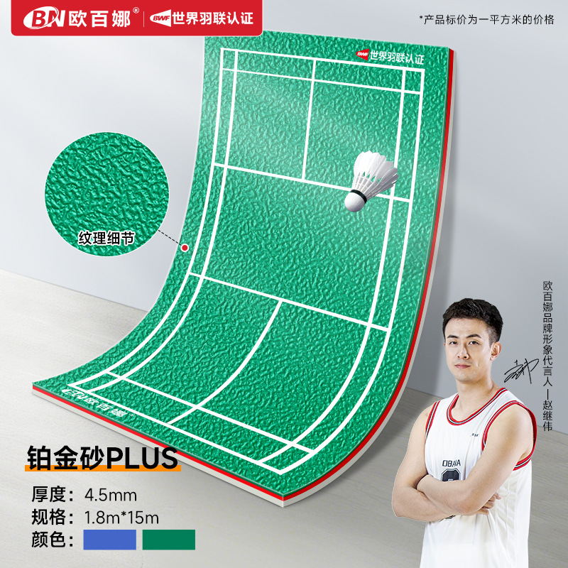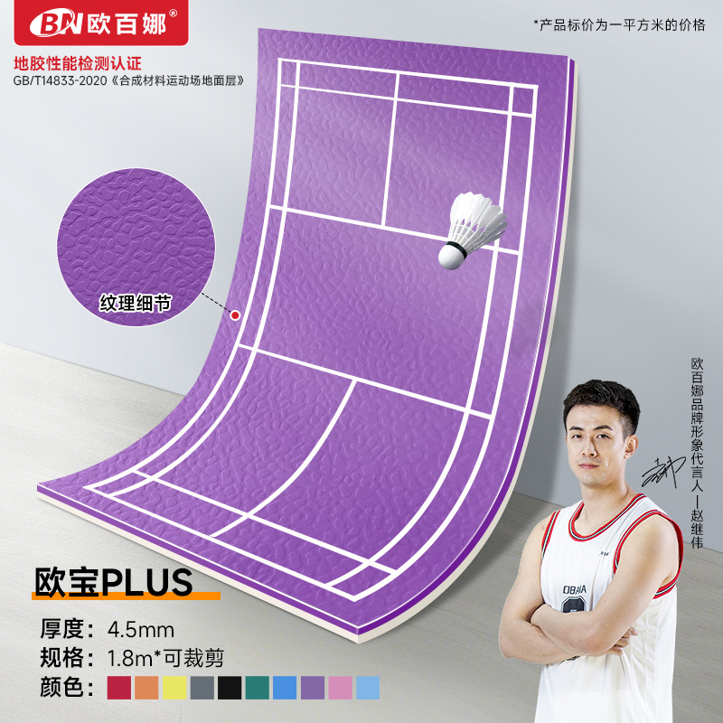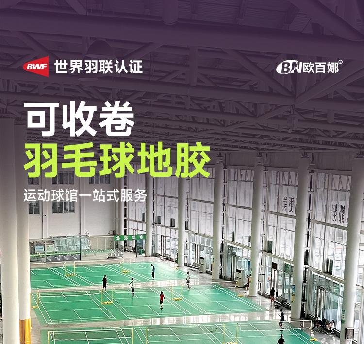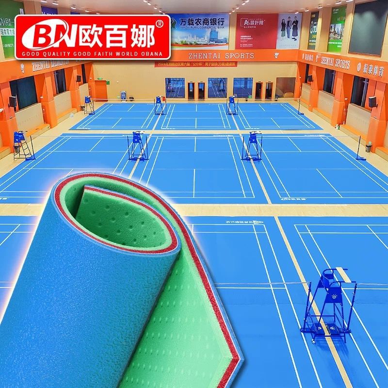 欧百娜羽毛球地胶室内专用可收卷pvc塑胶运动地板匹克球场地胶垫