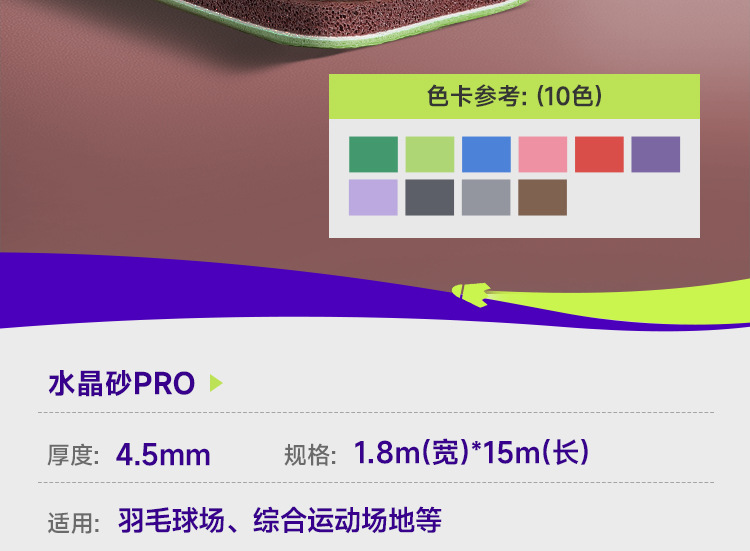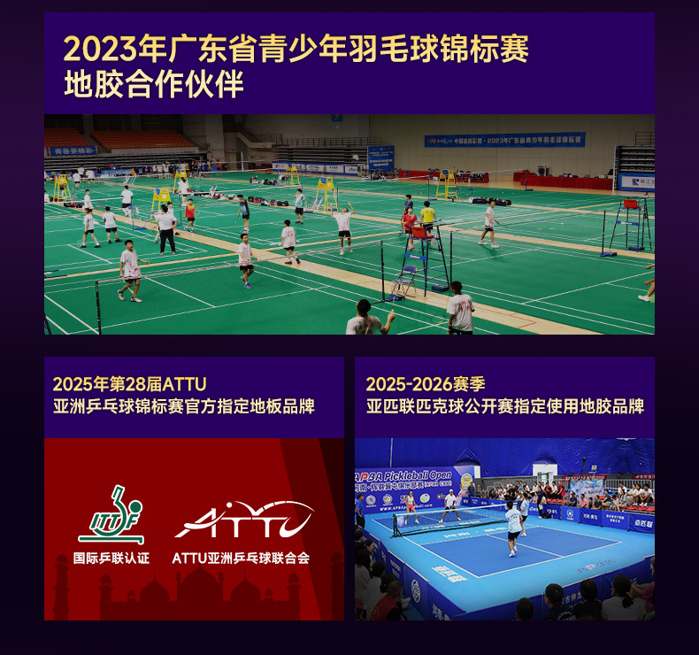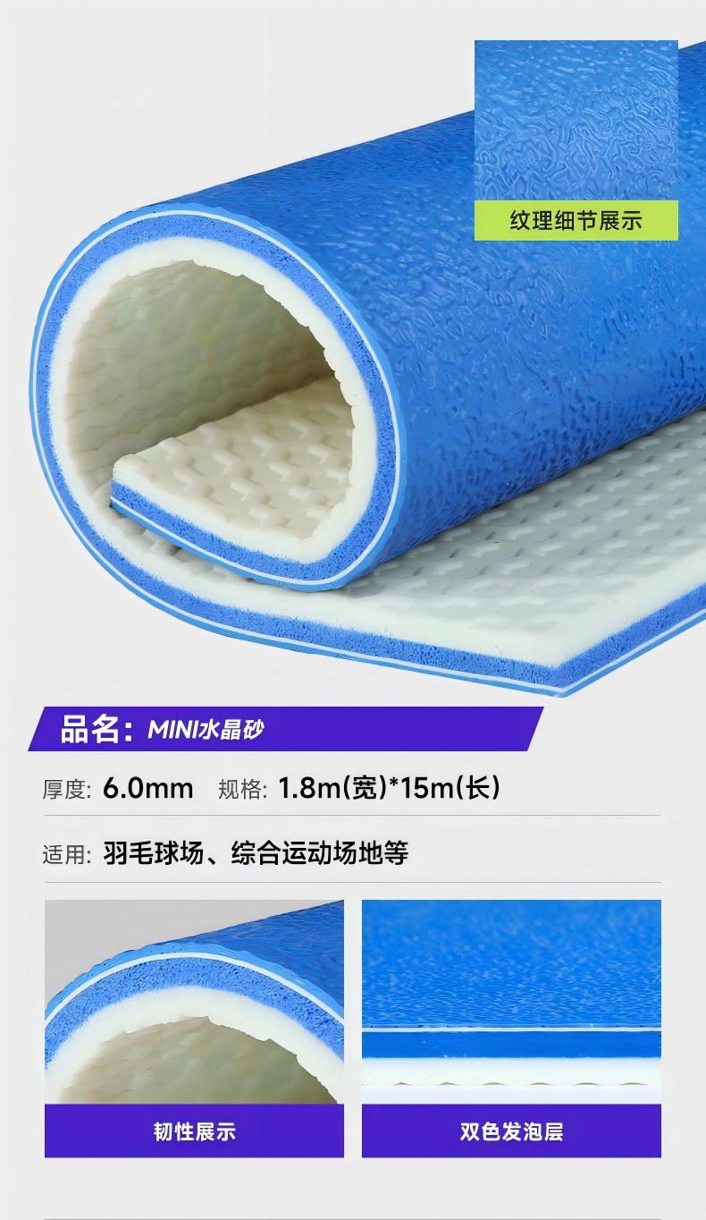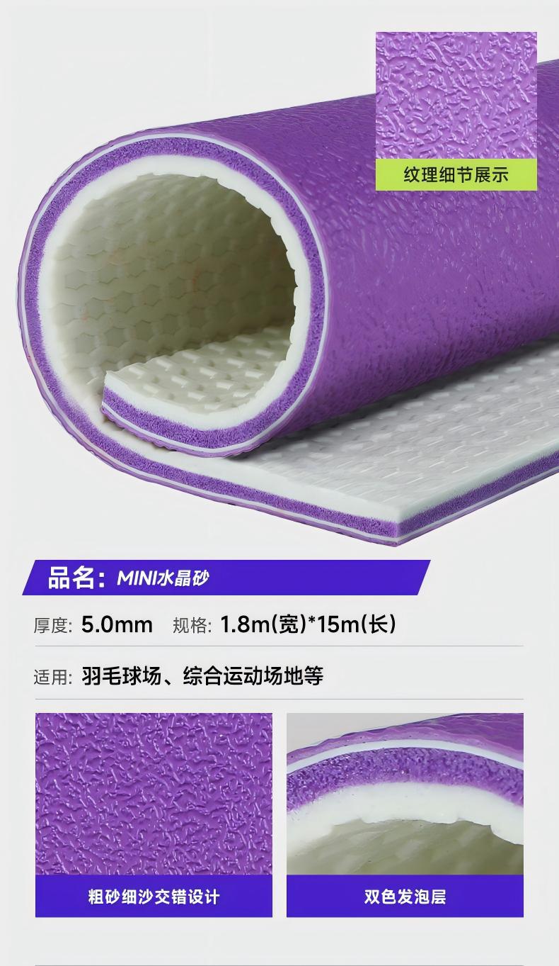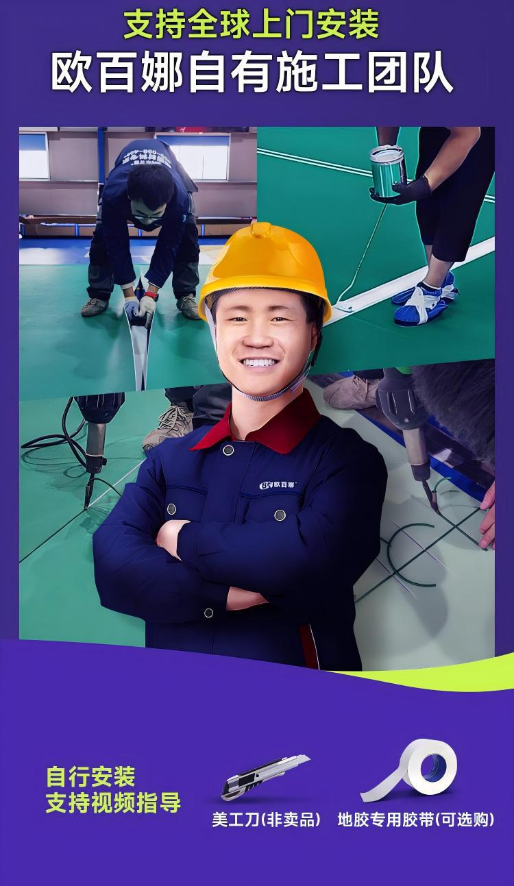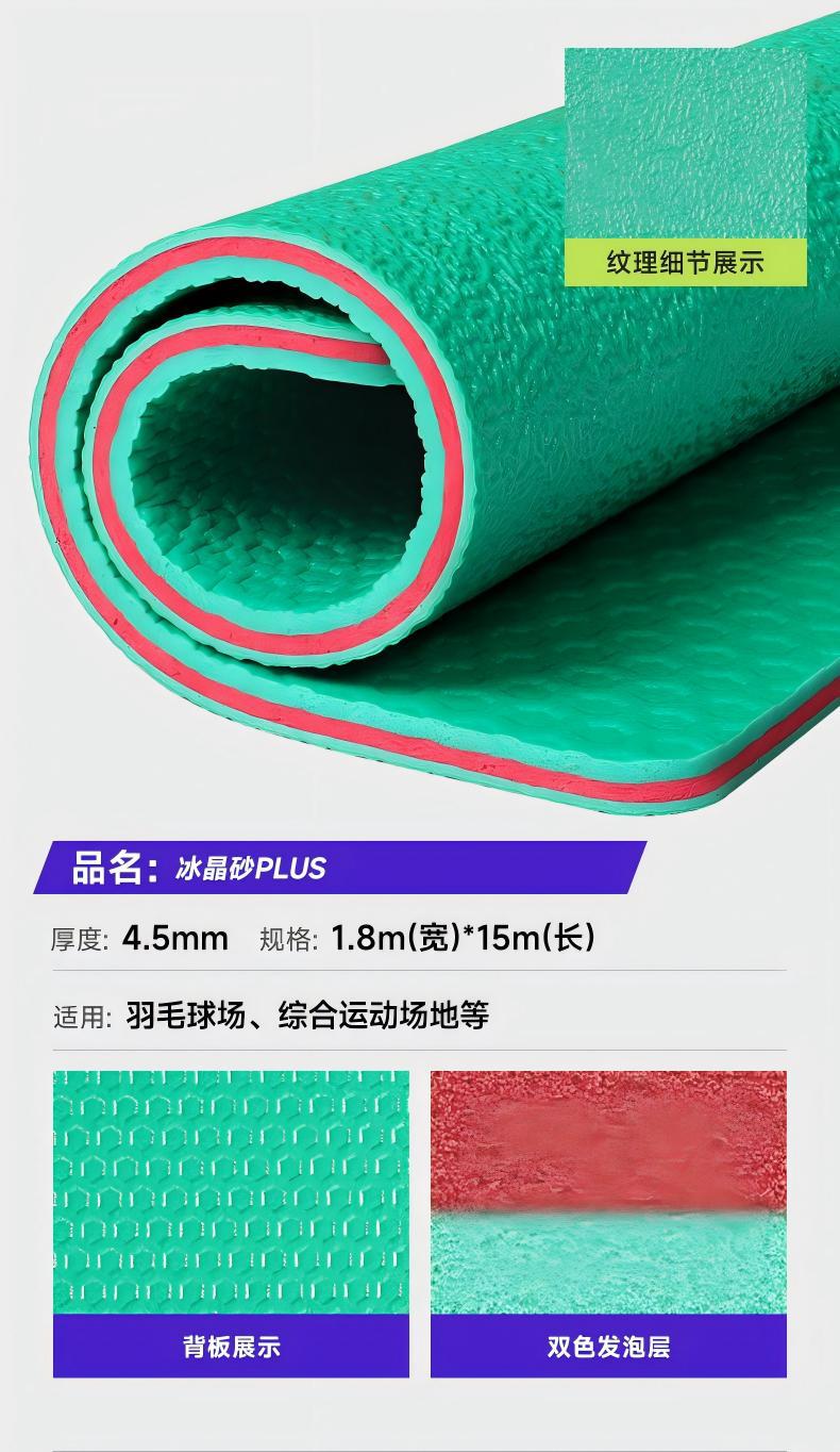 欧百娜羽毛球地胶室内专用可收卷pvc塑胶运动地板匹克球场地胶垫