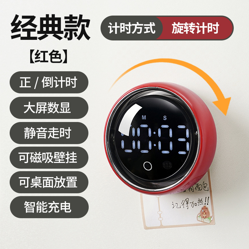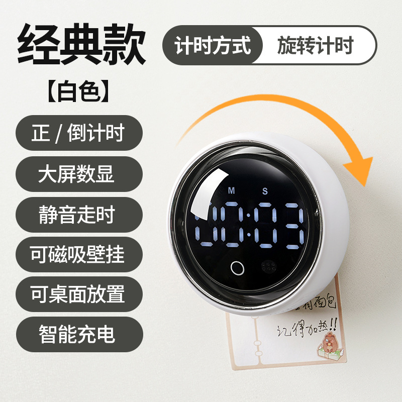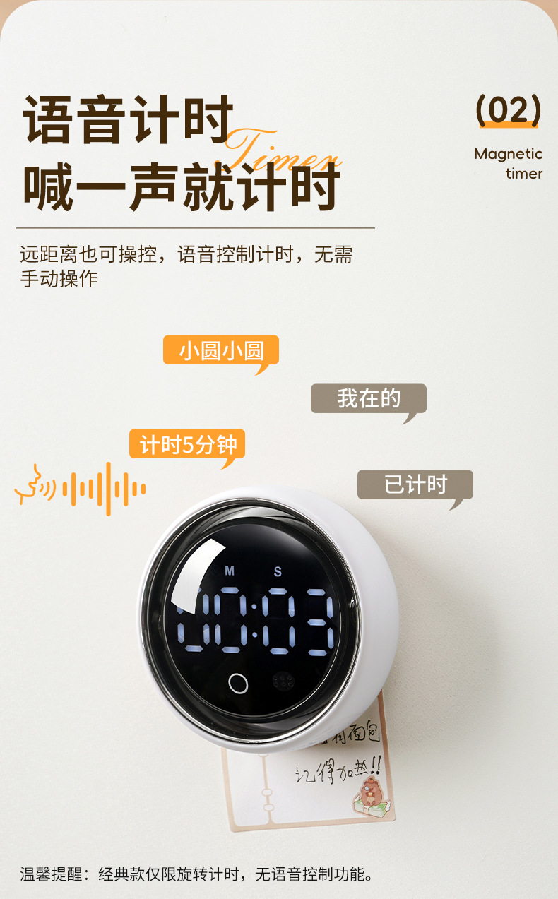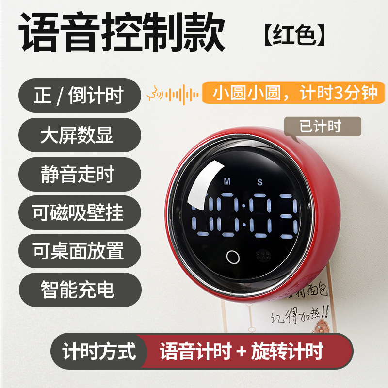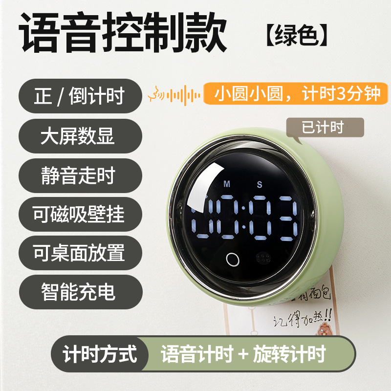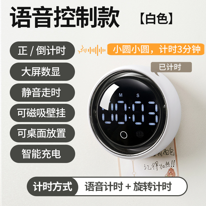 小圆智能语音计时器厨房磁吸旋转家用定时器静音学生专用提醒器
