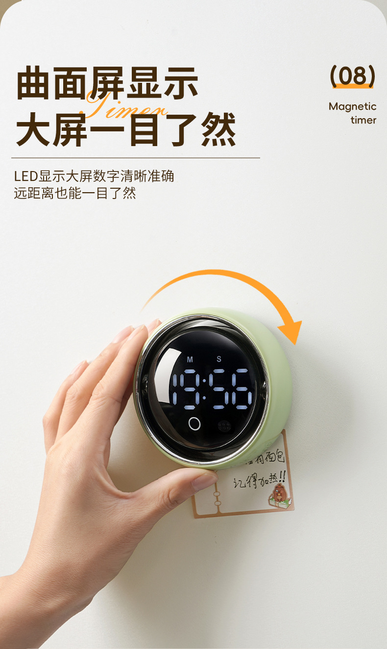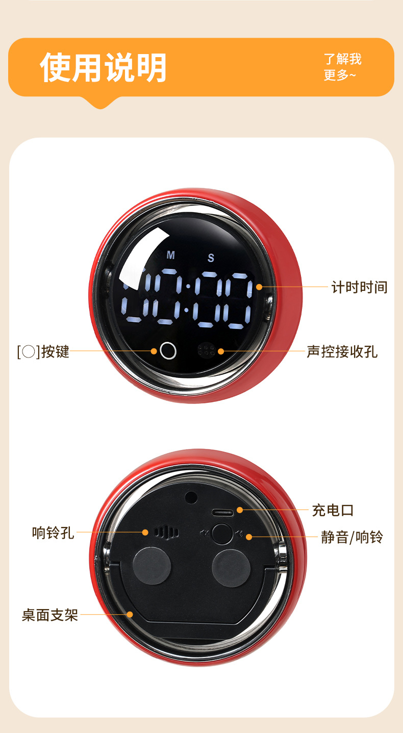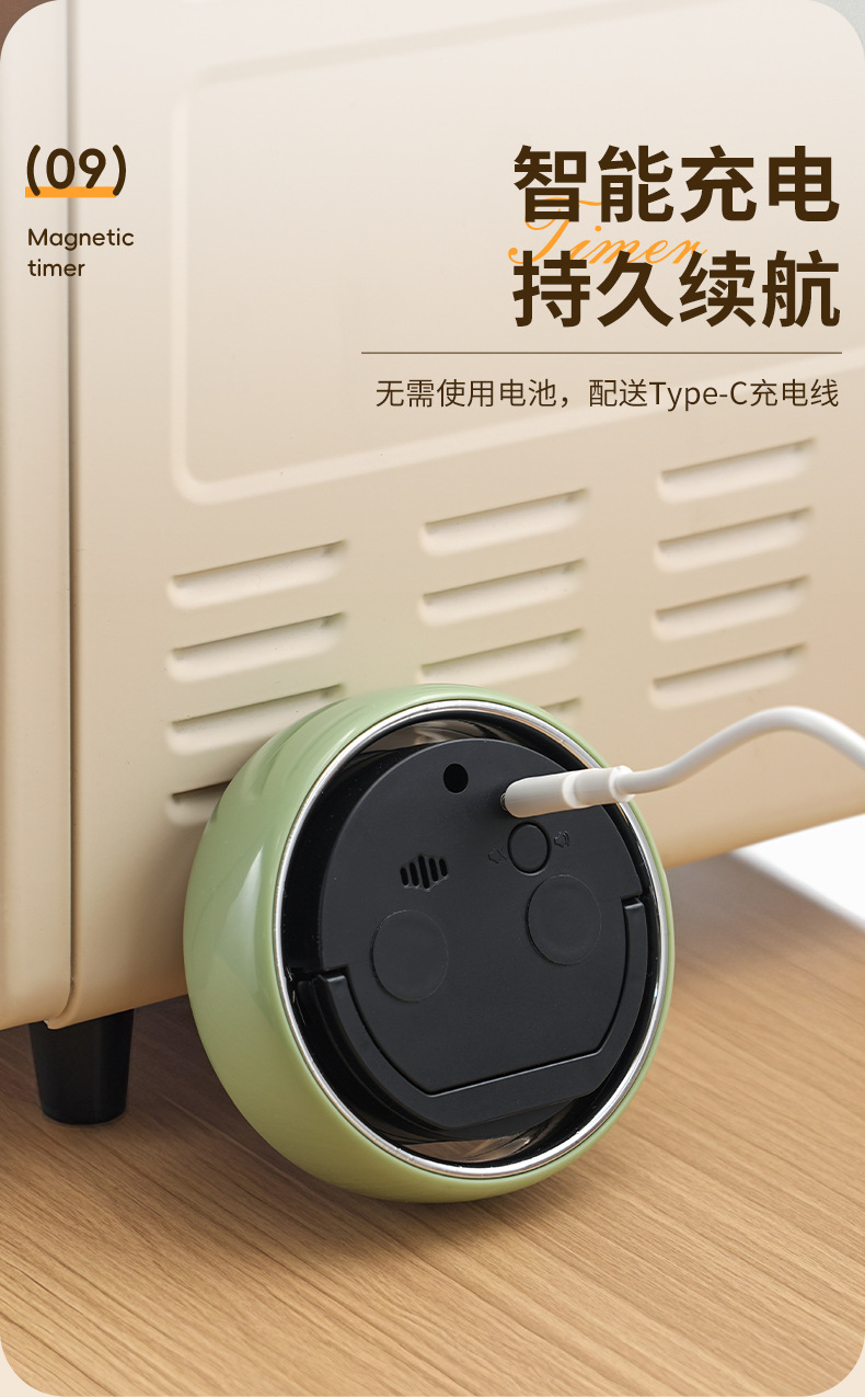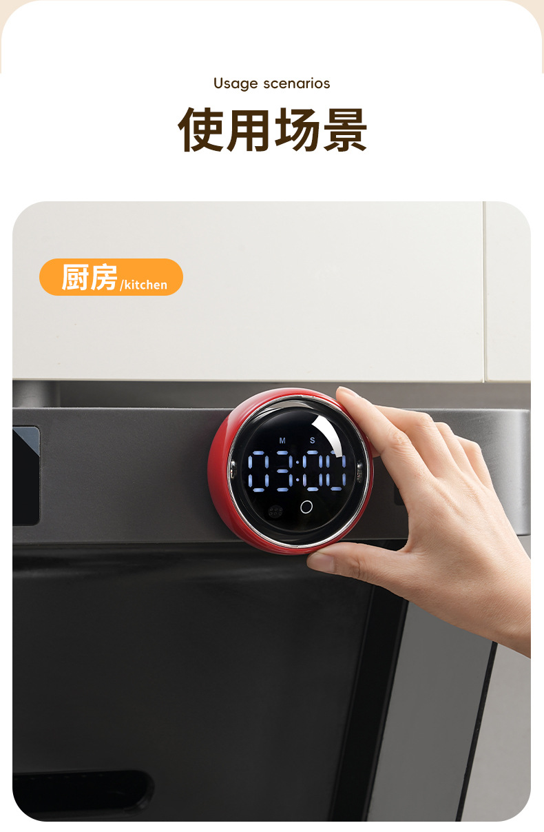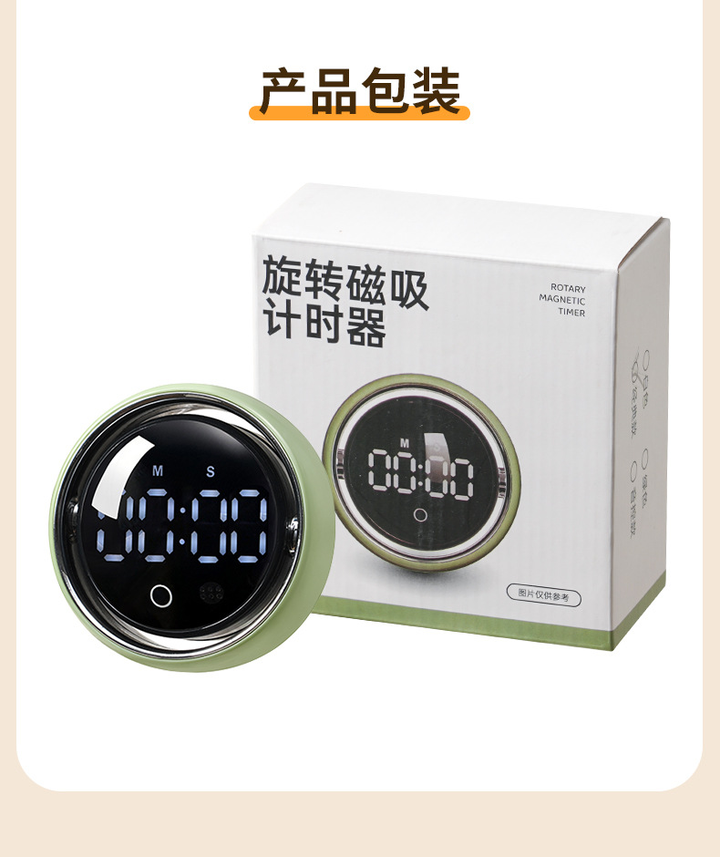小圆智能语音计时器厨房磁吸旋转家用定时器静音学生专用提醒器
