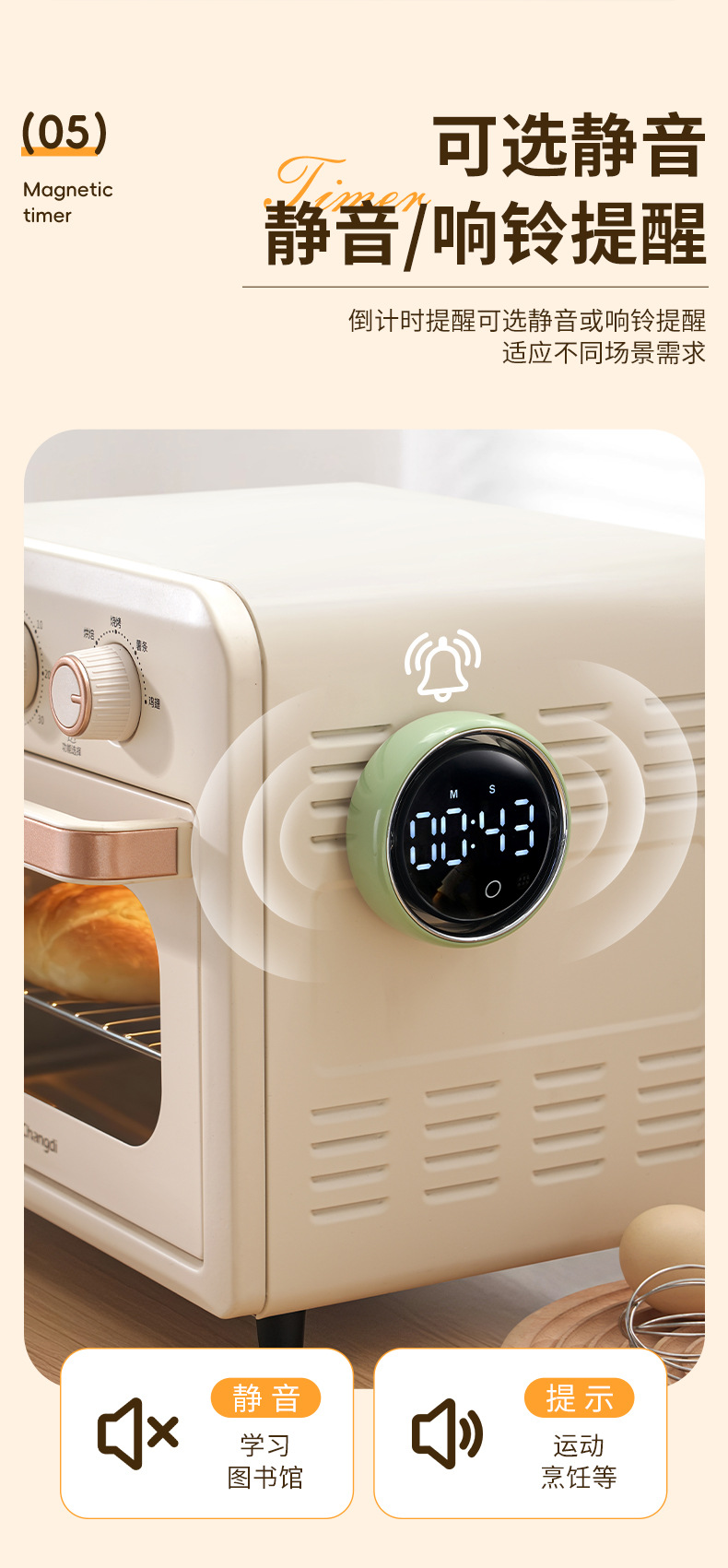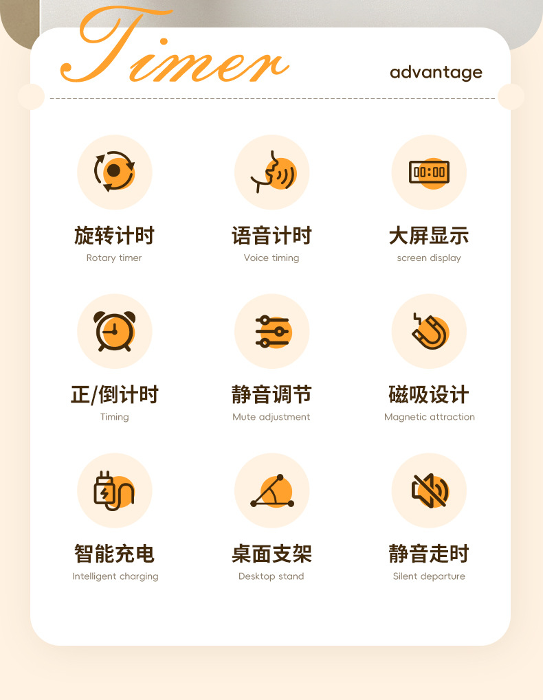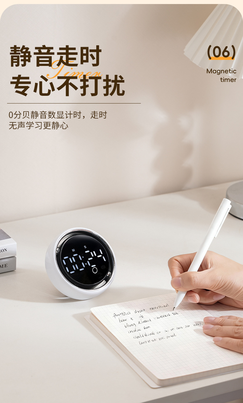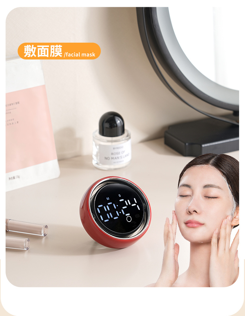 小圆智能语音计时器厨房磁吸旋转家用定时器静音学生专用提醒器