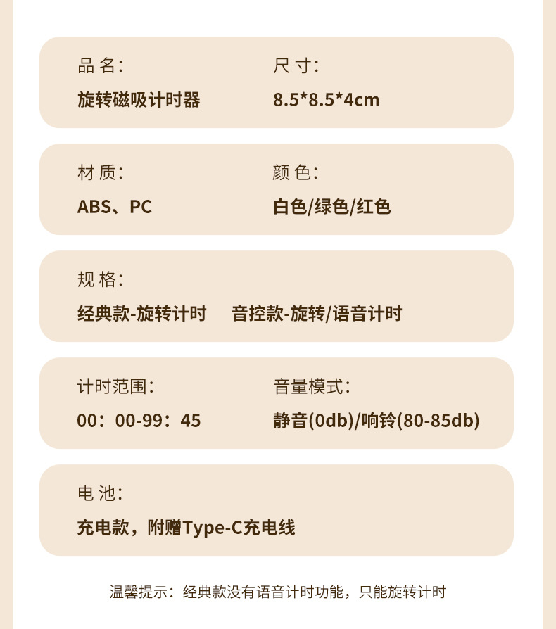 音控款,满电连续计时400分钟