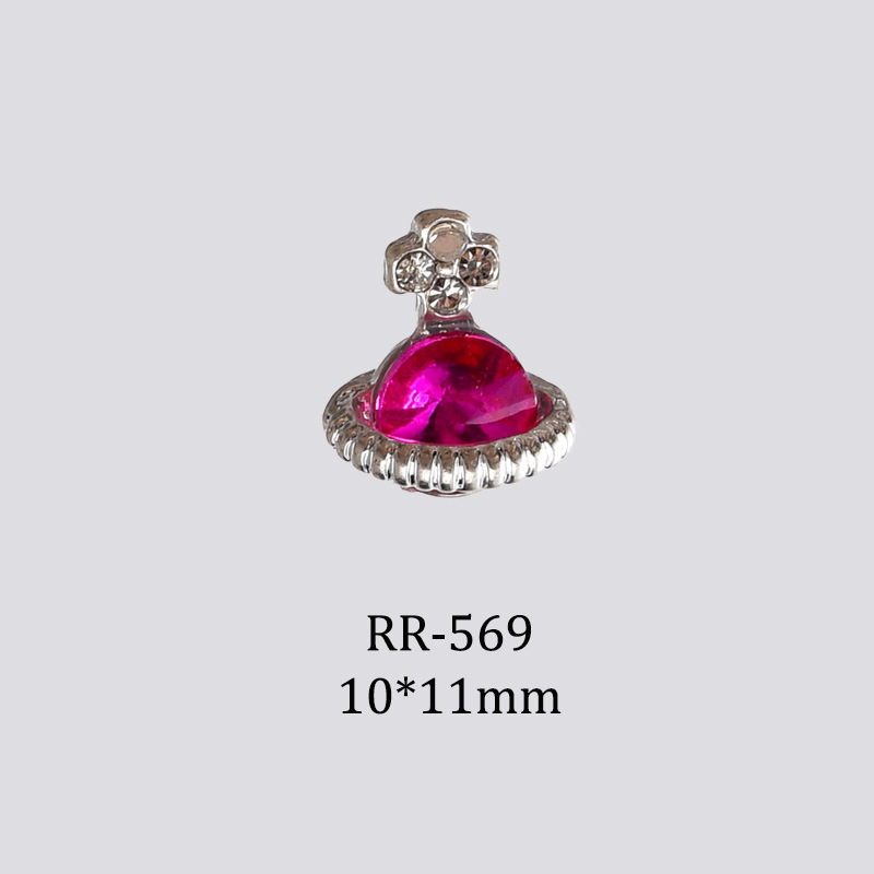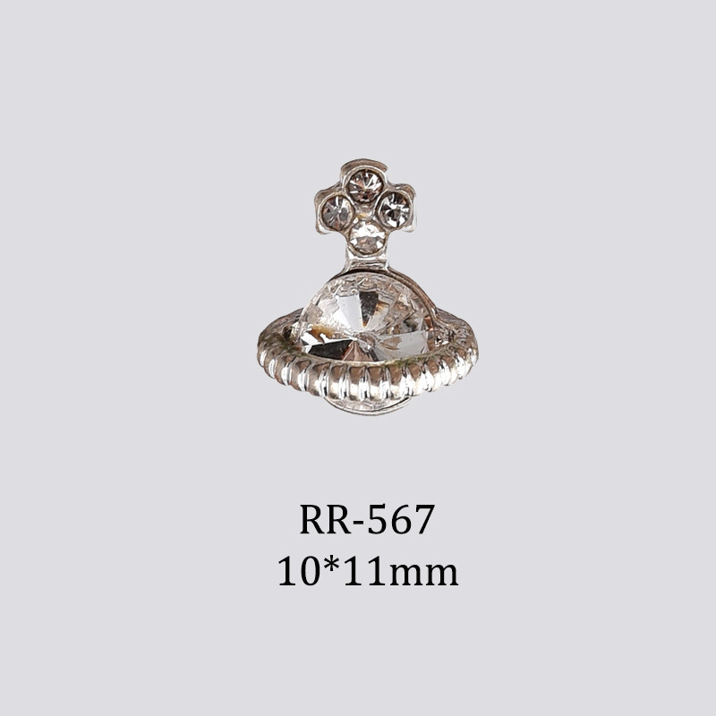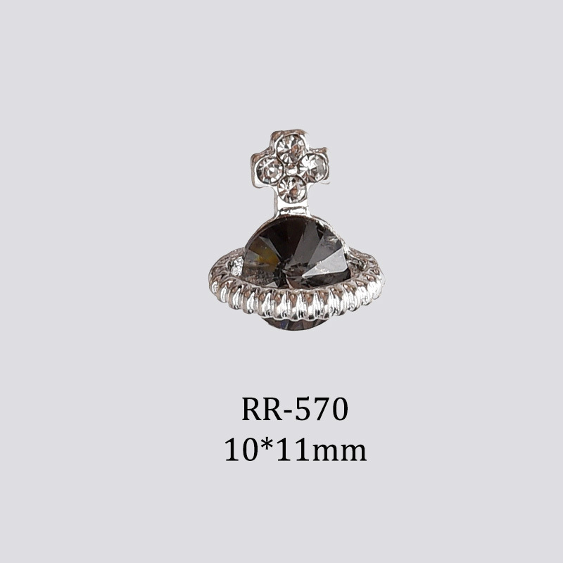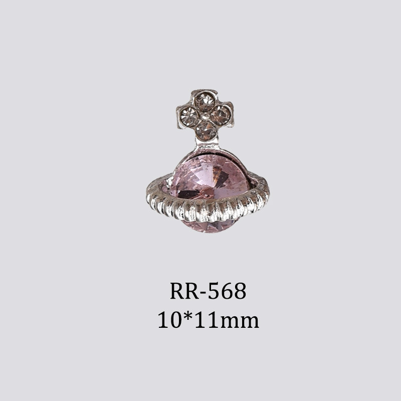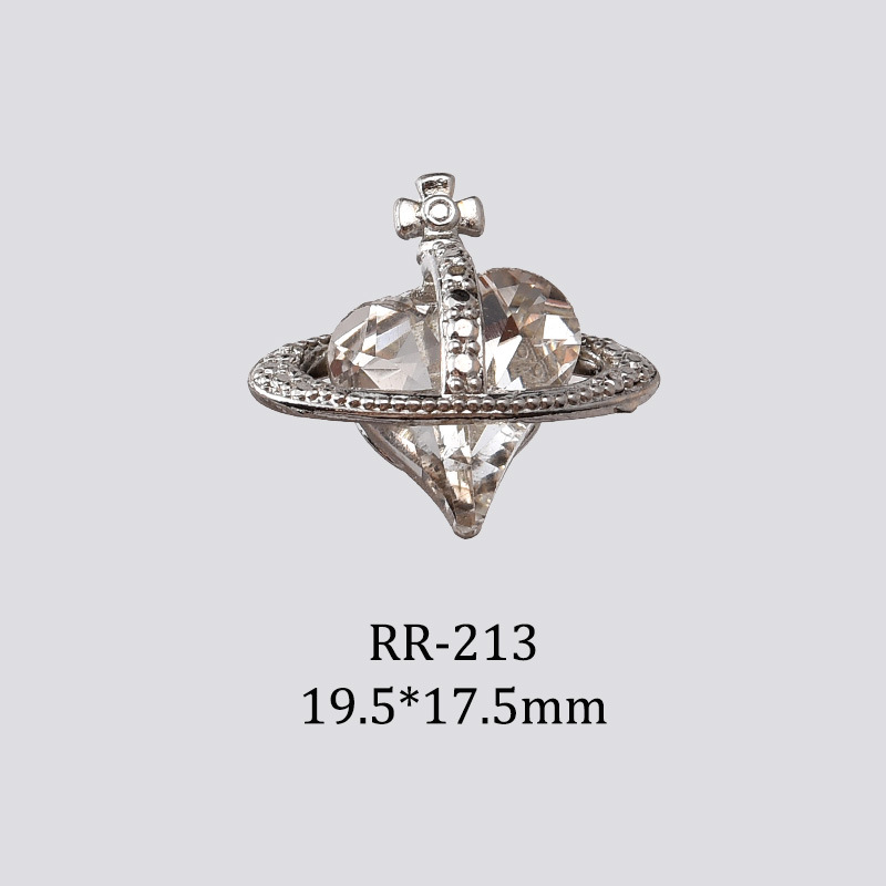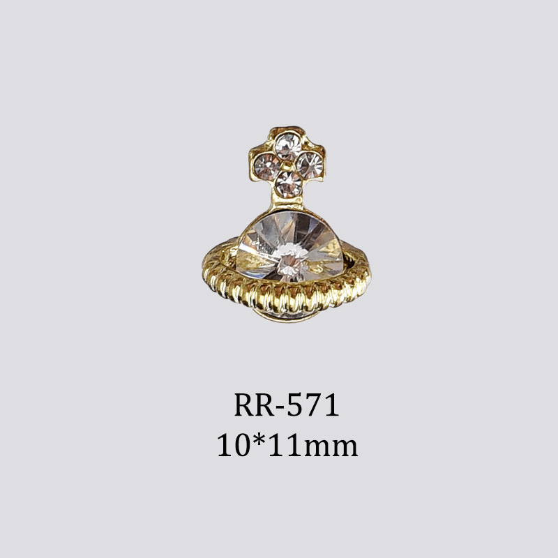 跨境热销镶钻西太后美甲饰品简约立体爆闪土星合金美甲小配饰批发