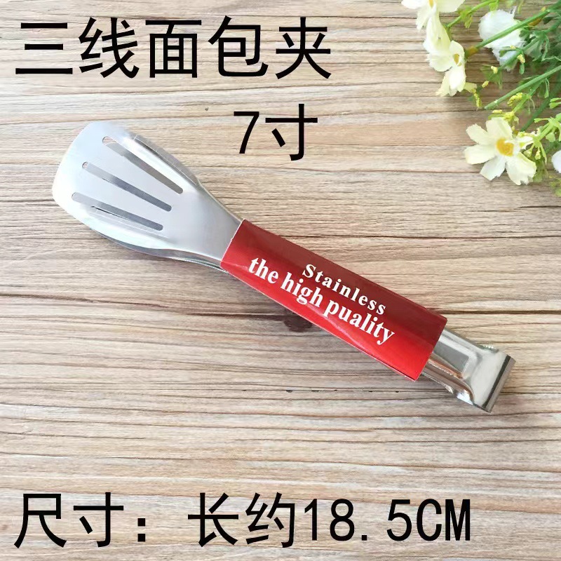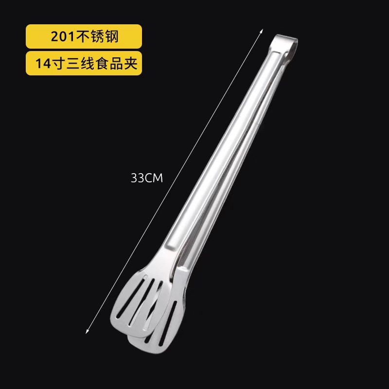 304不锈钢三线食品夹 加厚食物夹烤肉烧烤夹面包夹牛排夹食品夹子