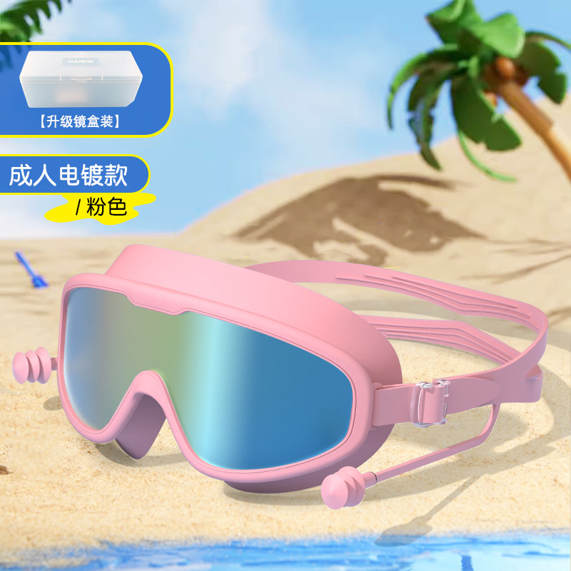 成人大框泳镜防水防雾高清游泳眼镜连体耳塞硅胶儿童游泳镜批发