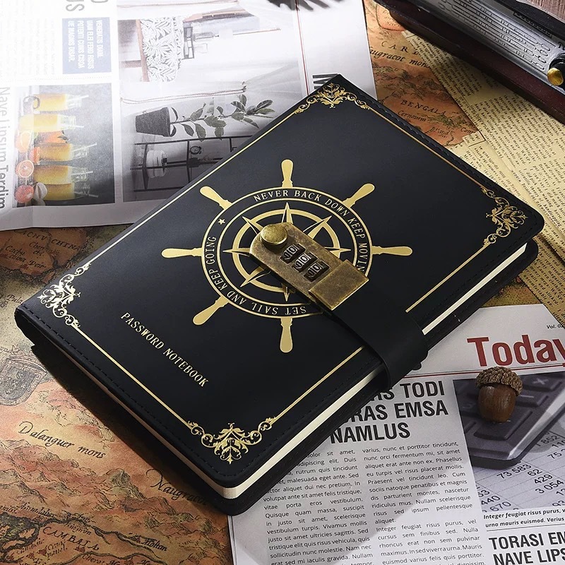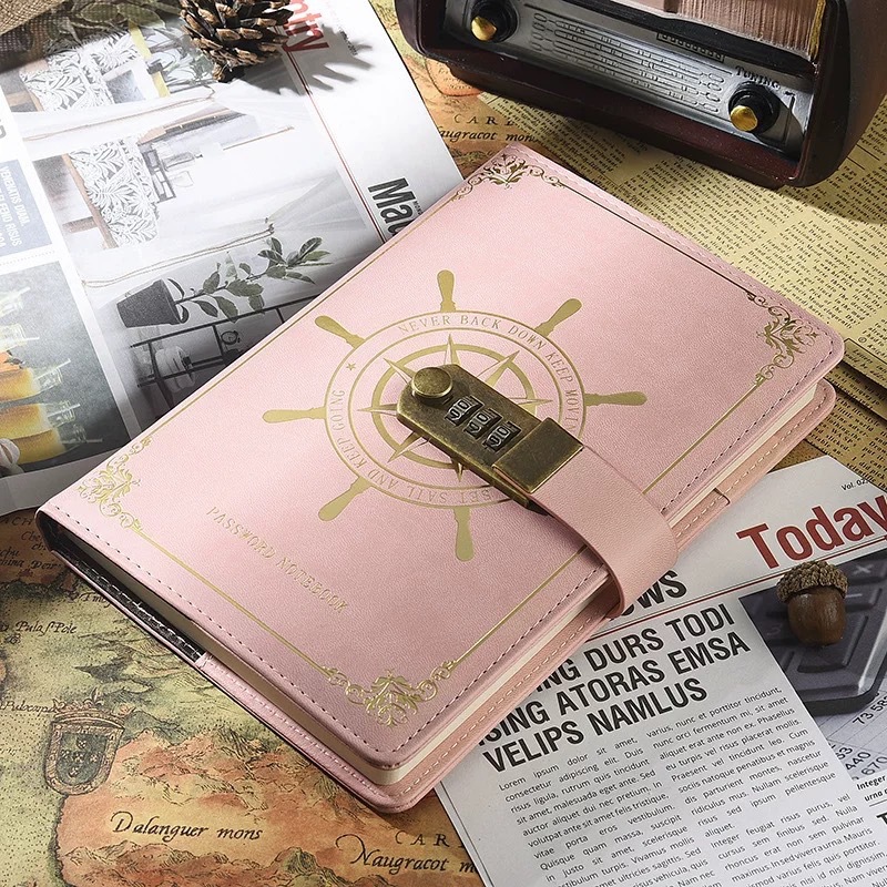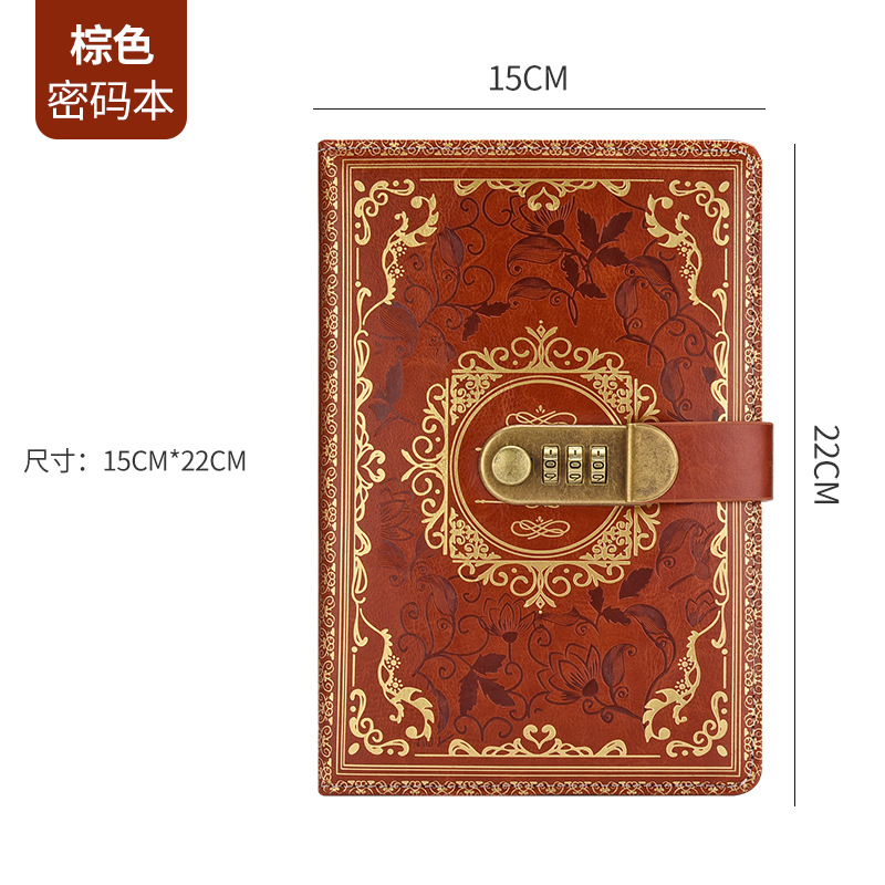 跨境专供a5复古密码本带锁日记本创意手账本学生记事本文具笔记本