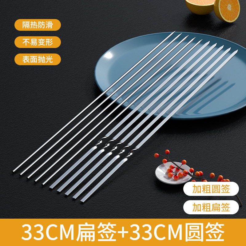 不锈钢烧烤签子圆签扁签羊肉串烤肉铁签子食品级户外家用烤串扁签