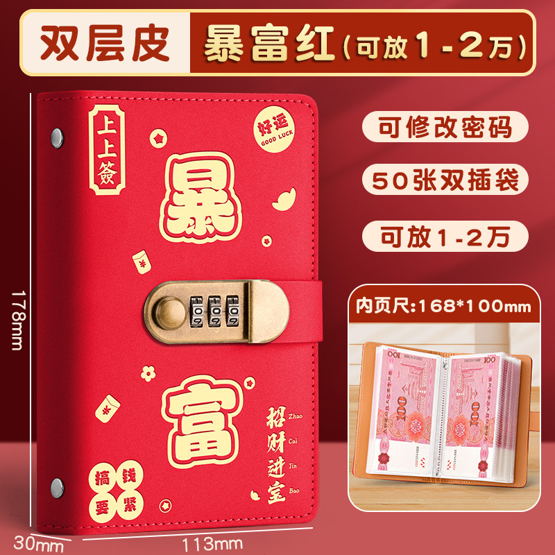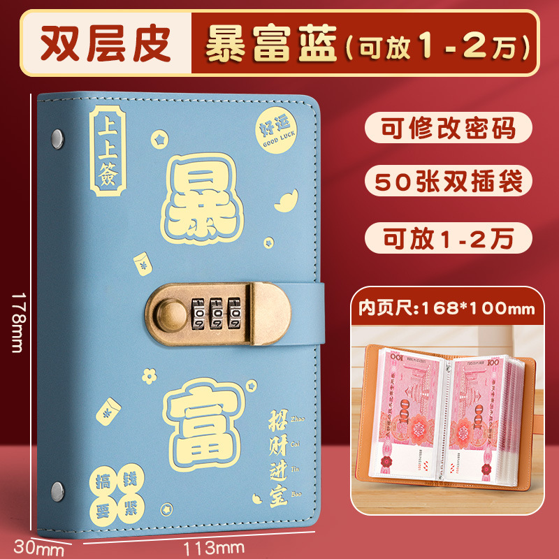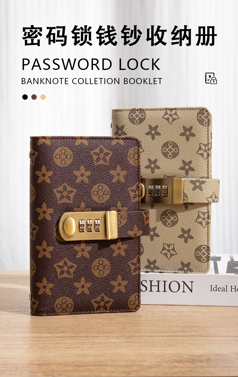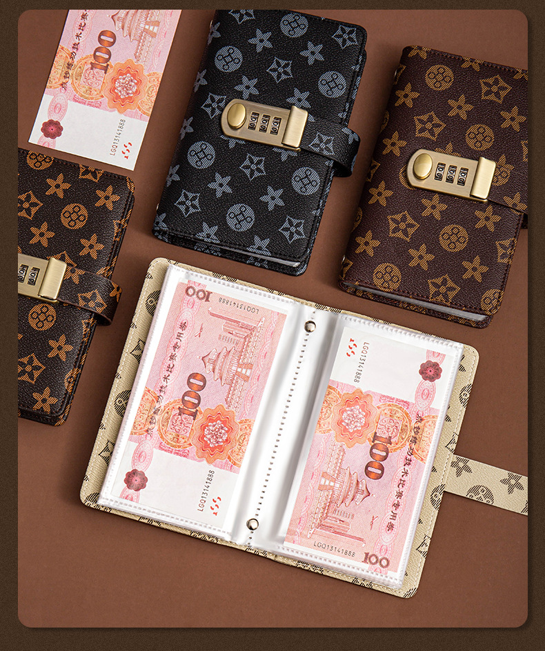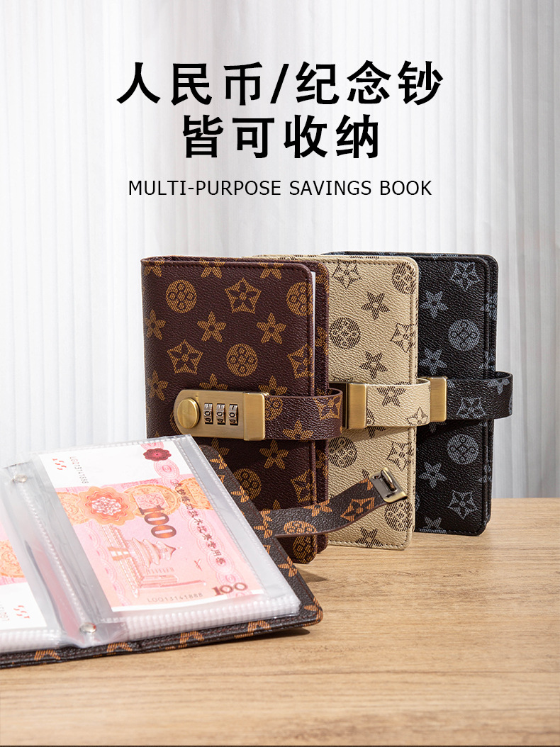 存钱夹钱册2025新款密码锁记账本A6密码锁收纳本大容量现金存钱本