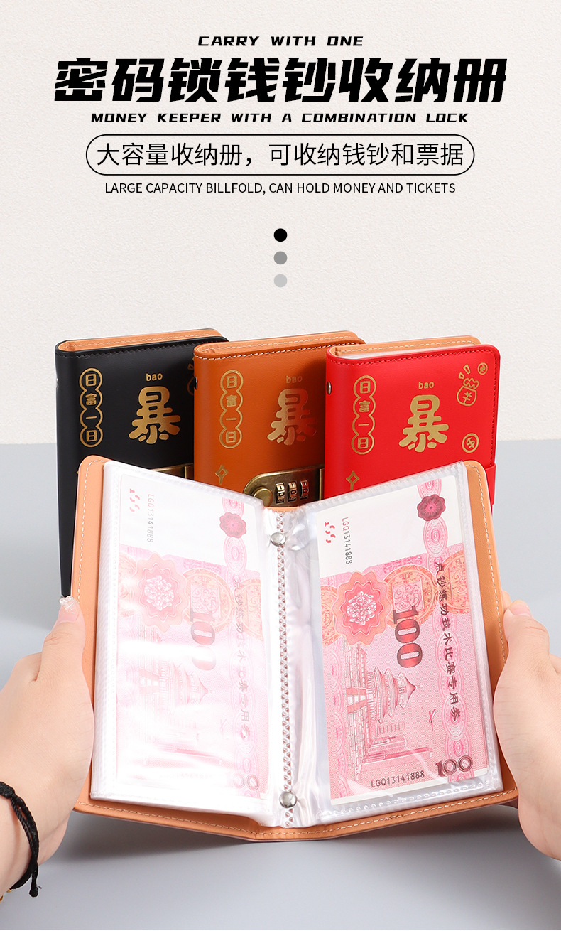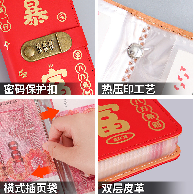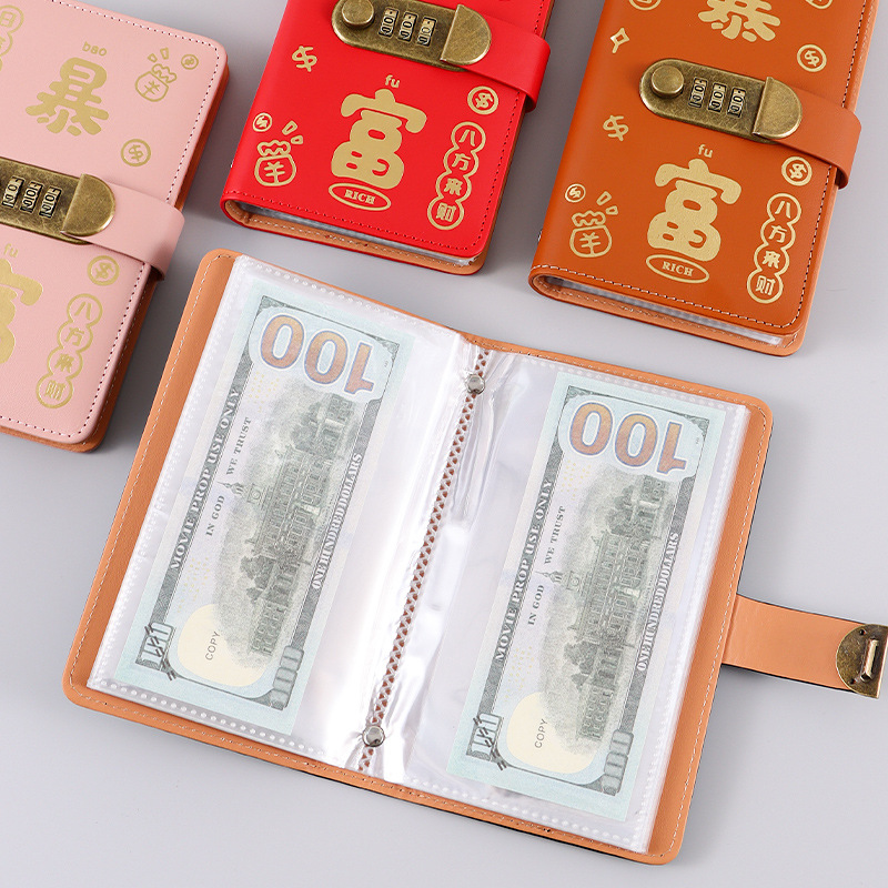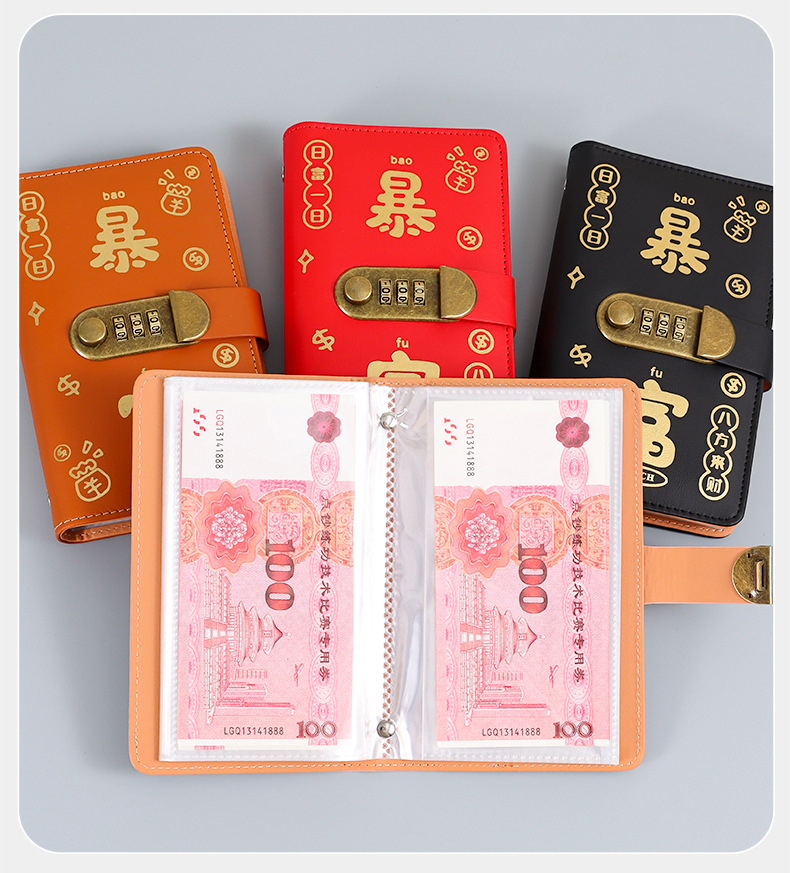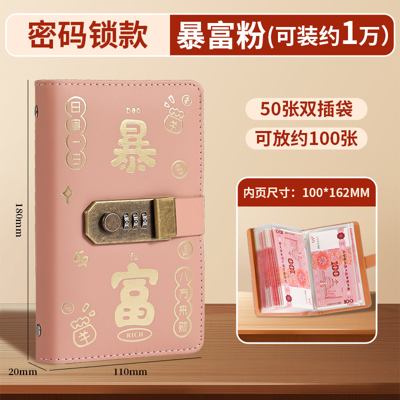 暴富现金存钱本可放只放现金收纳袋大容量密码锁存钱本理财收纳包