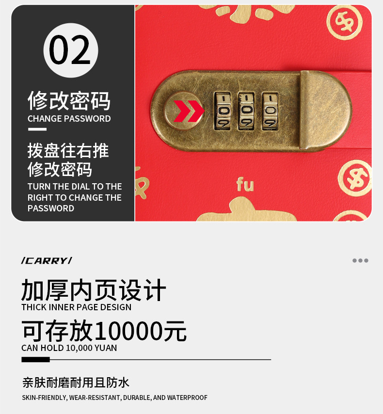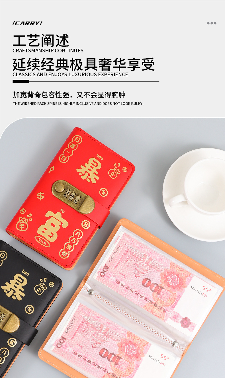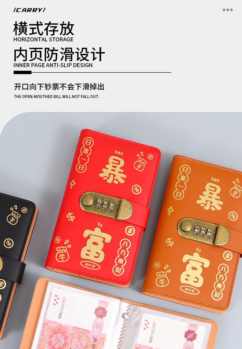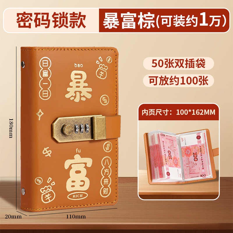 暴富现金存钱本可放只放现金收纳袋大容量密码锁存钱本理财收纳包
