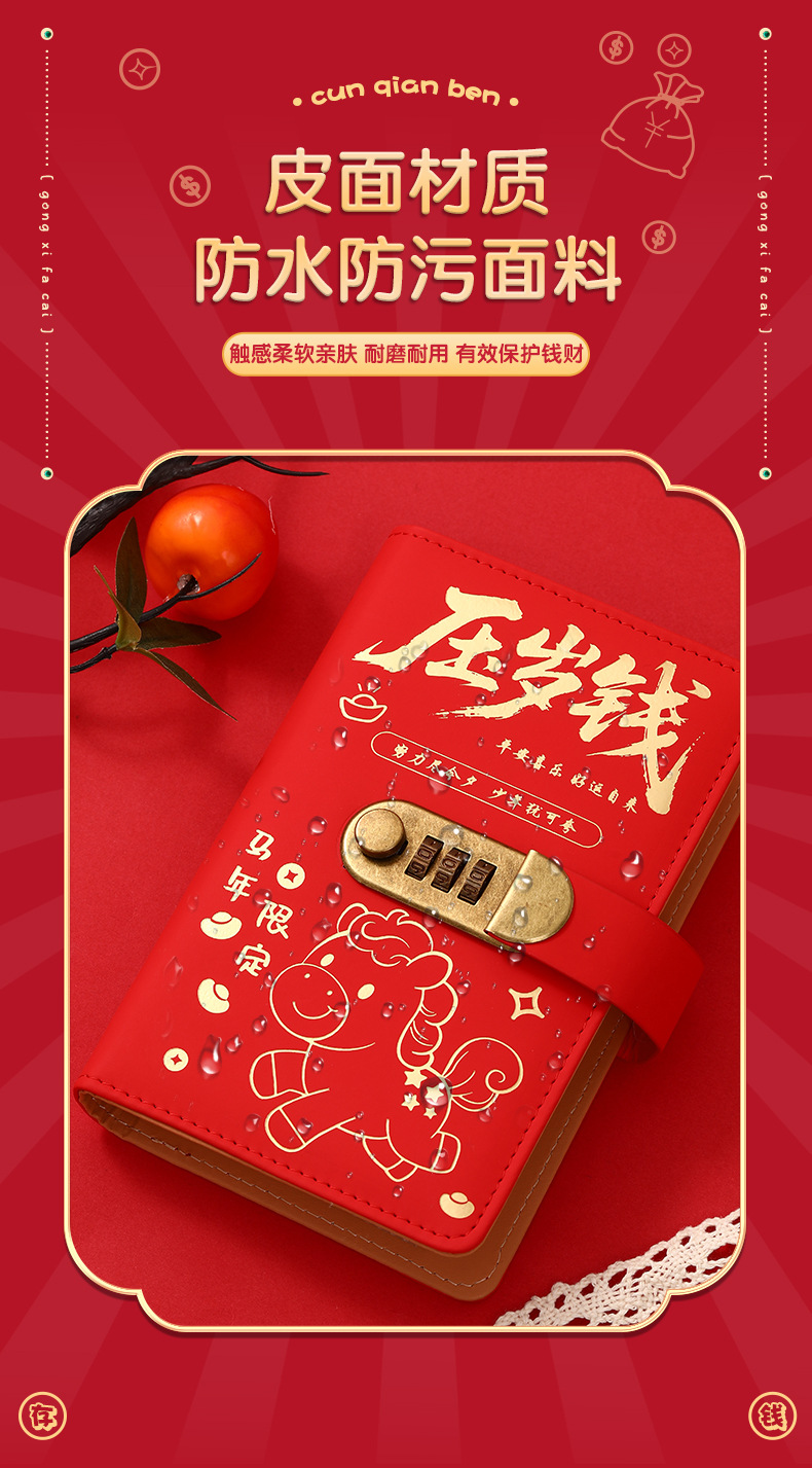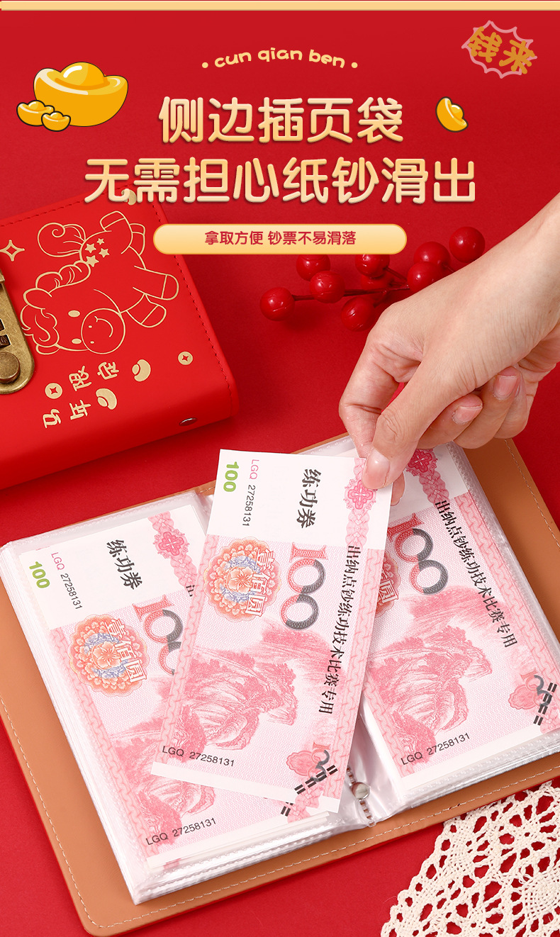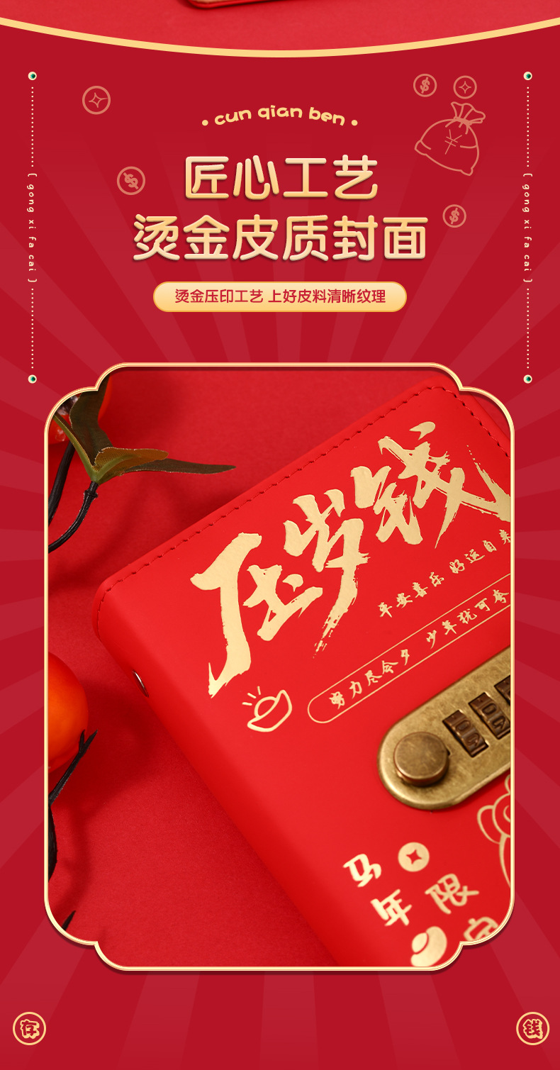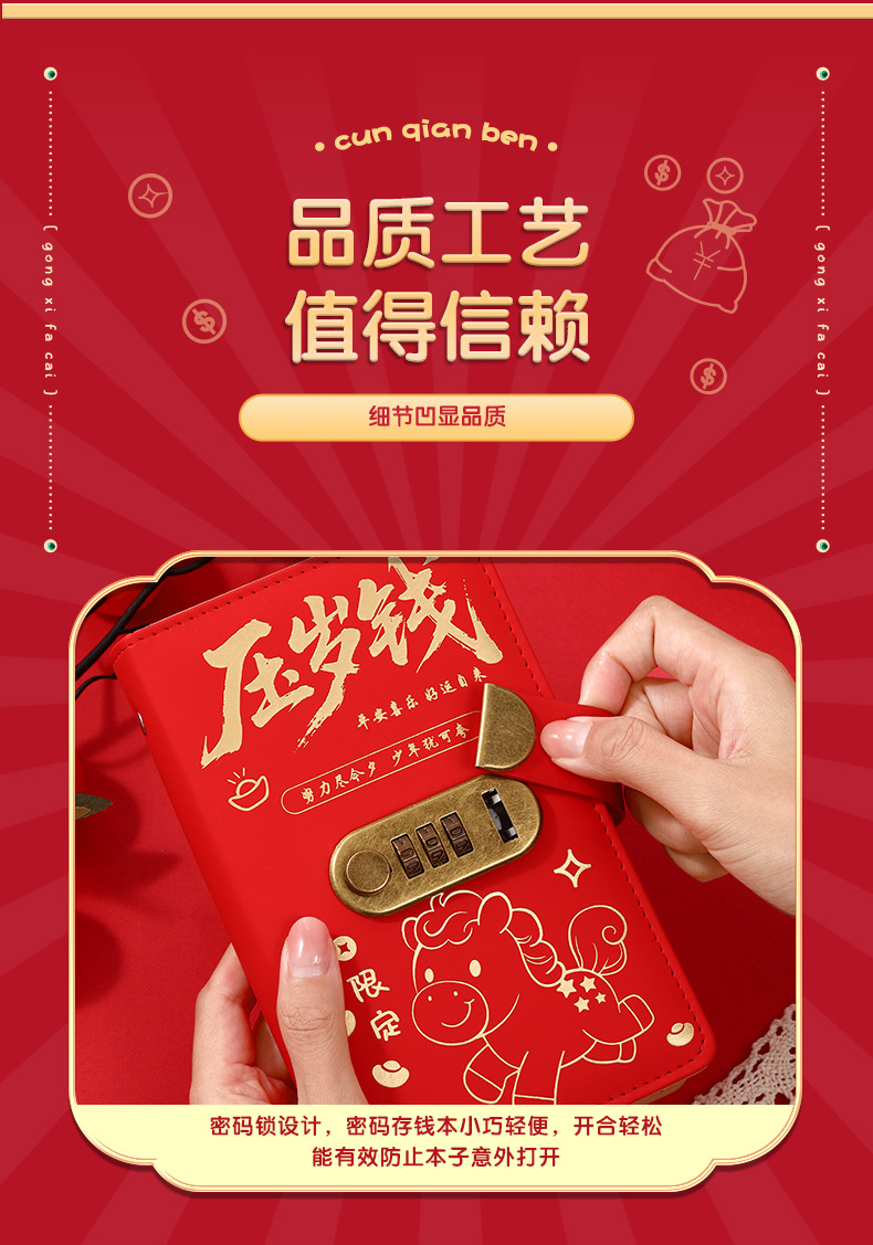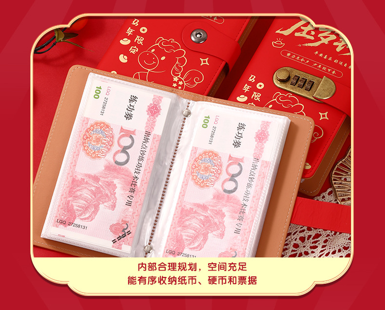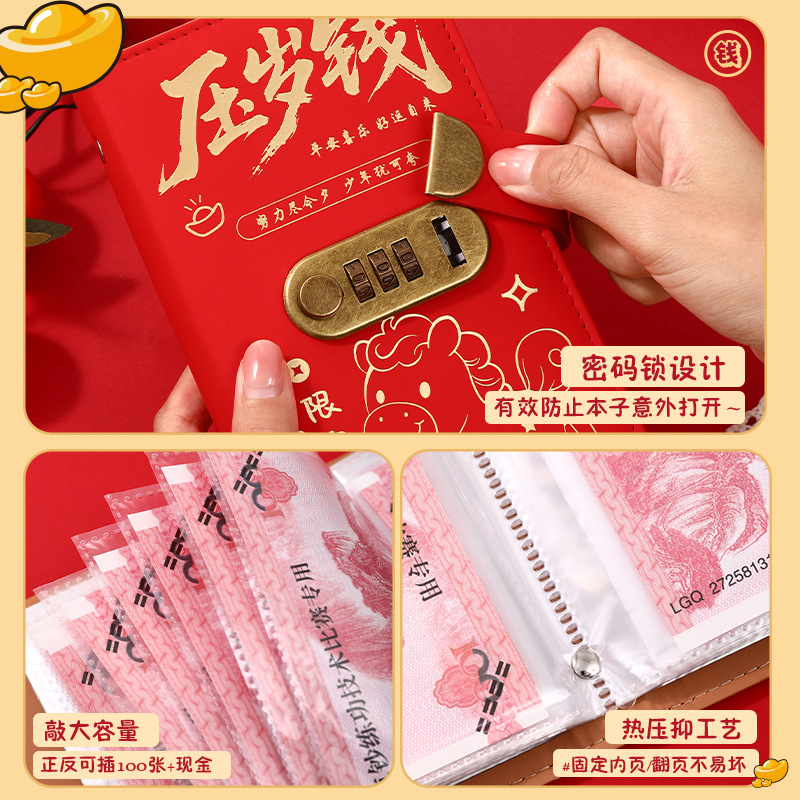 中国风压岁钱密码锁现金存钱本可爱存钱神器可放10万大容量存钱夹
