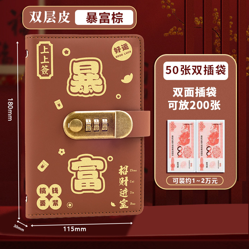 A6密码锁存钱本暴富学生零钱收纳收藏册记账攒钱本现金收纳本
