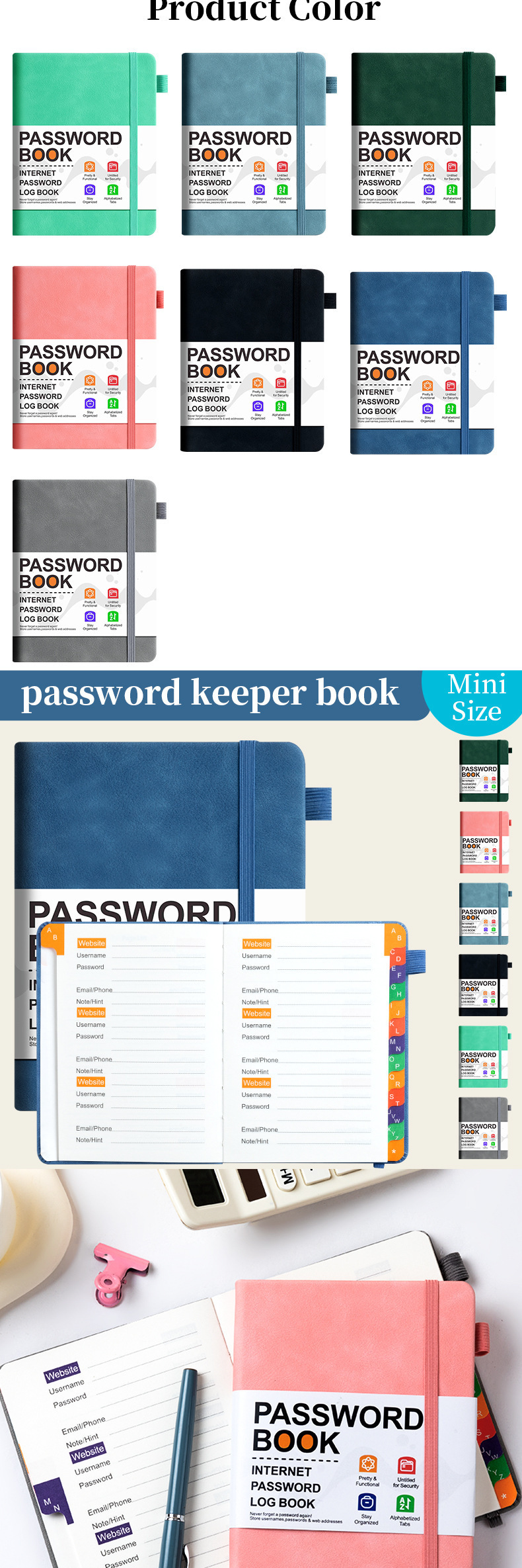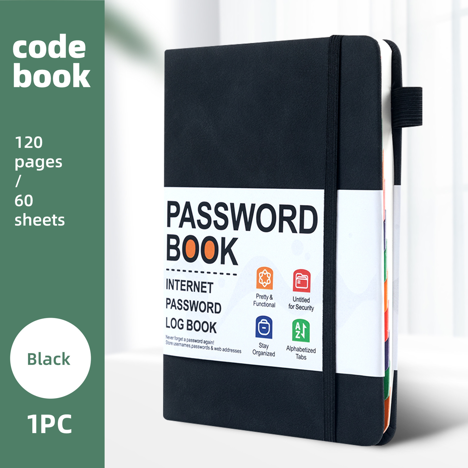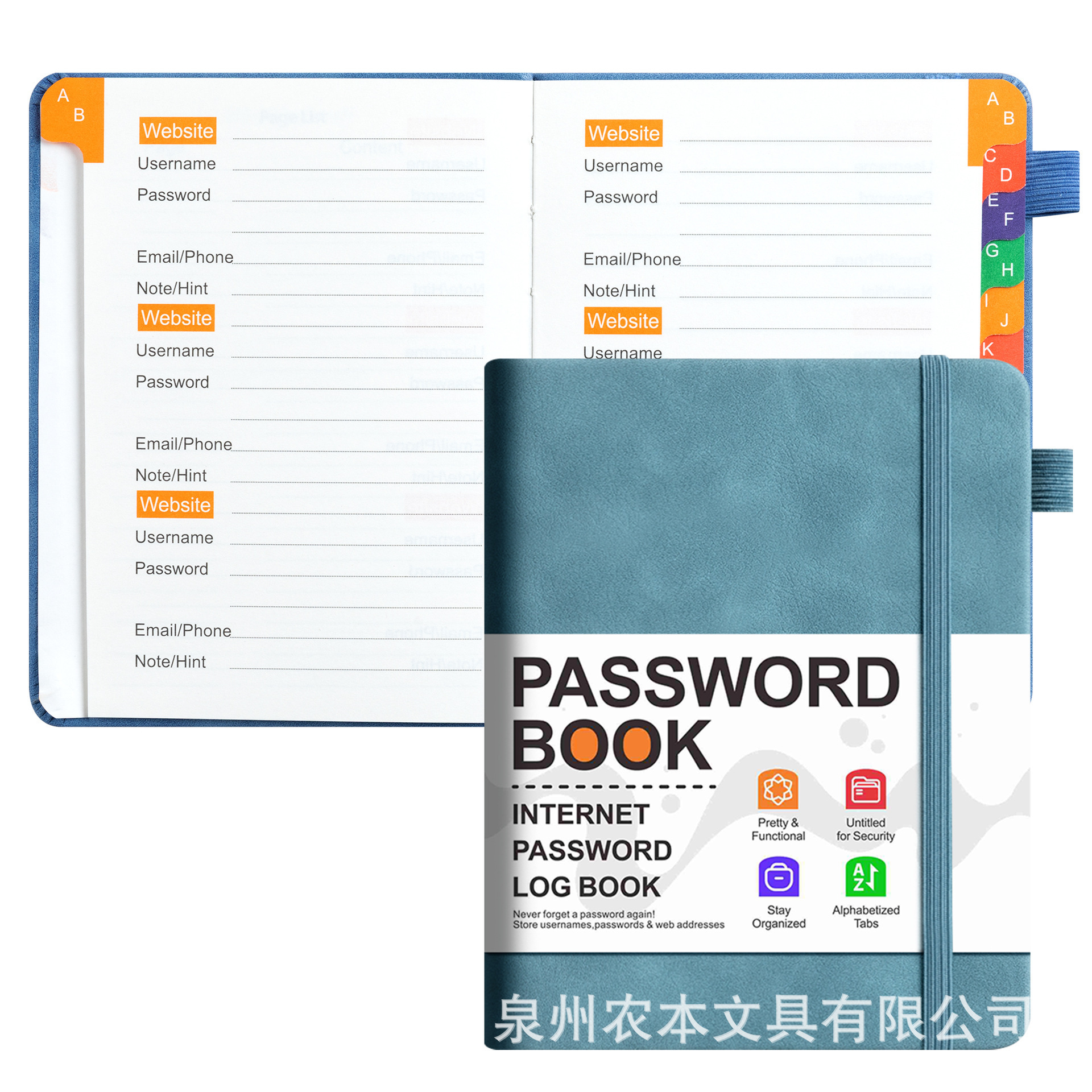 跨境B6密码记录本带彩色字母索引绑带标签登录密码保存簿笔记本