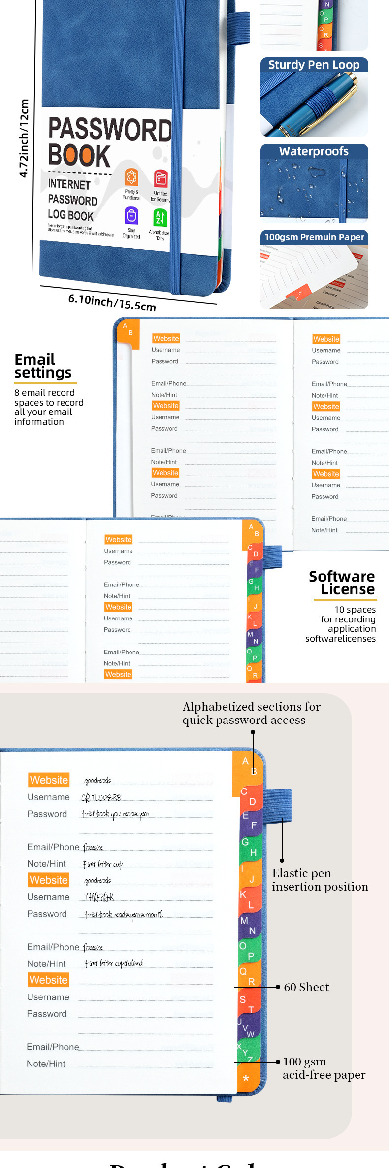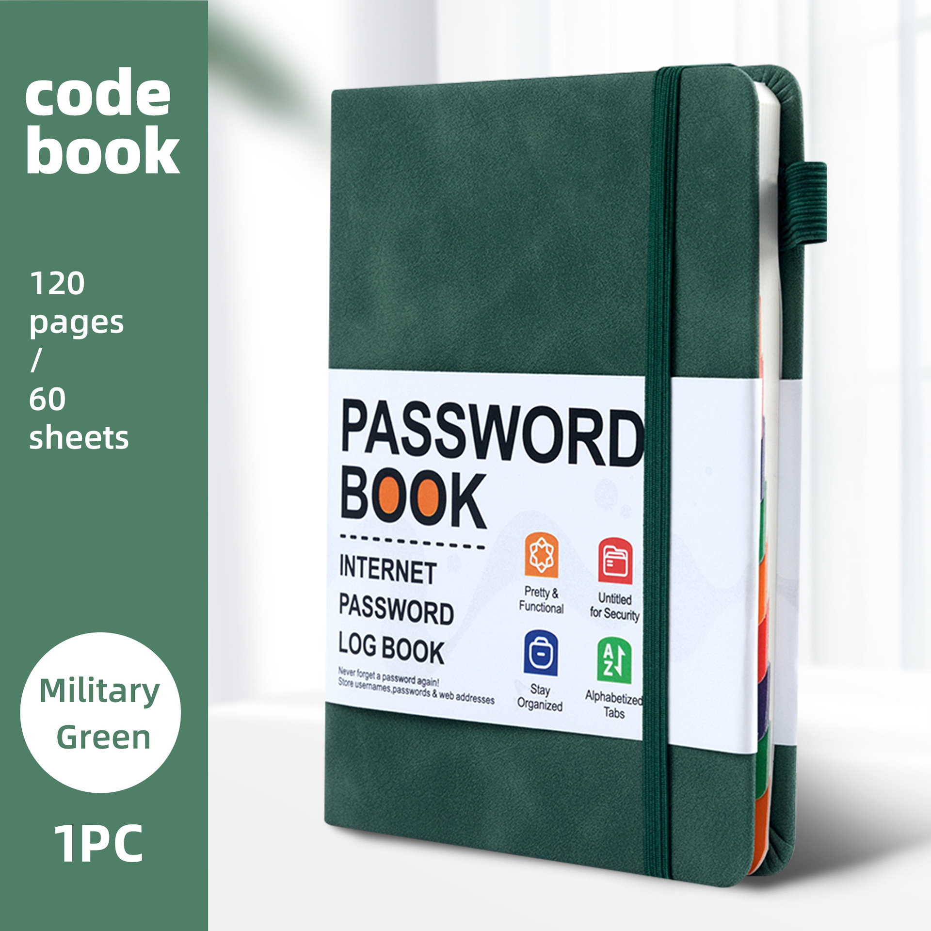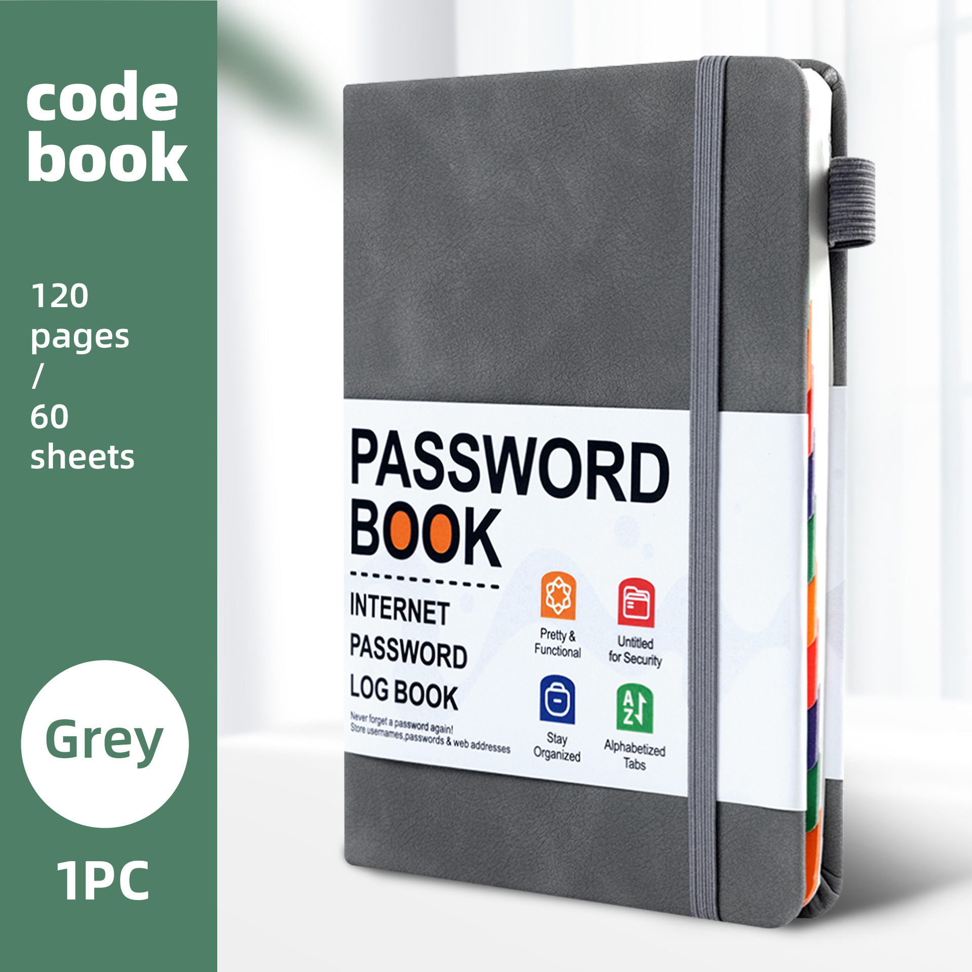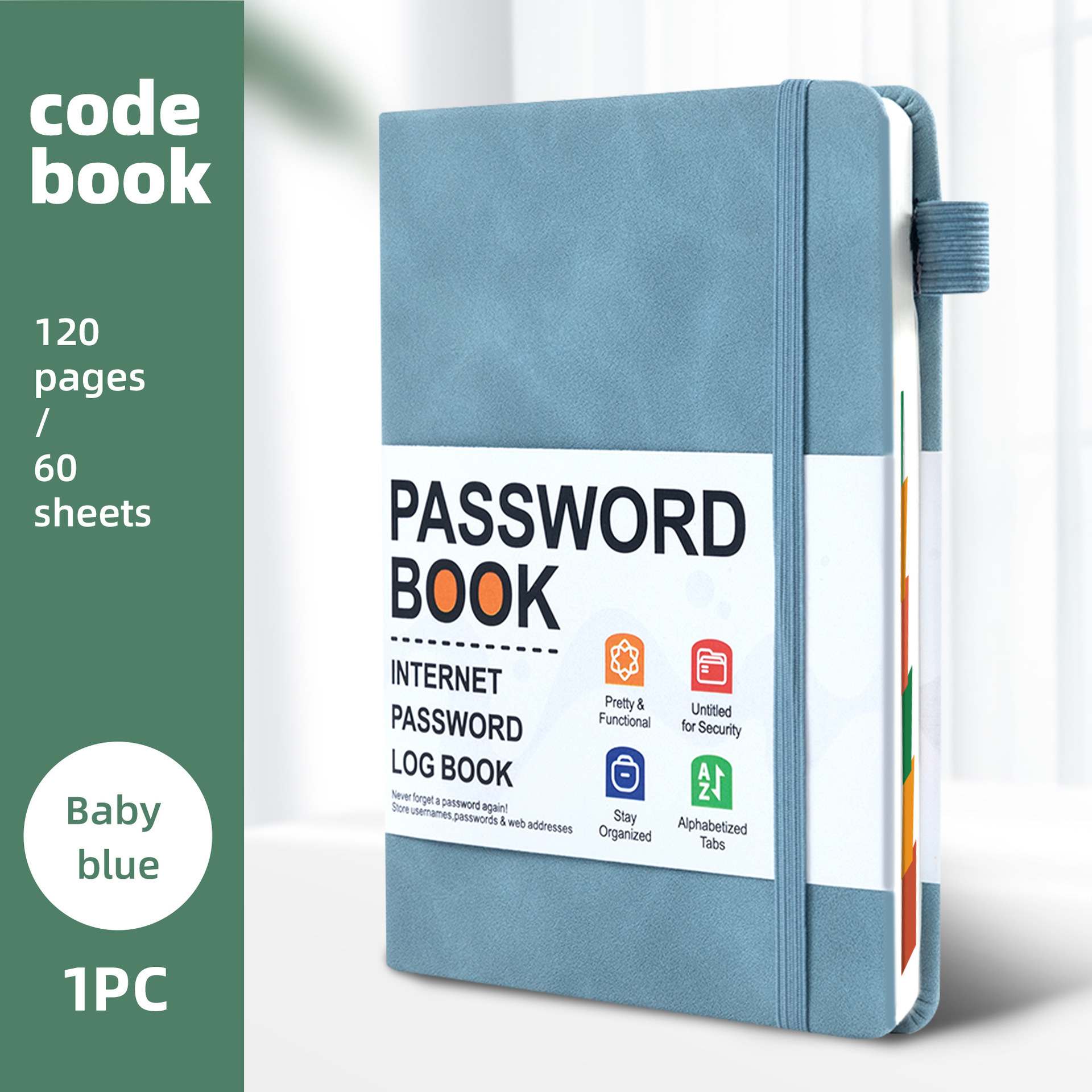 跨境B6密码记录本带彩色字母索引绑带标签登录密码保存簿笔记本