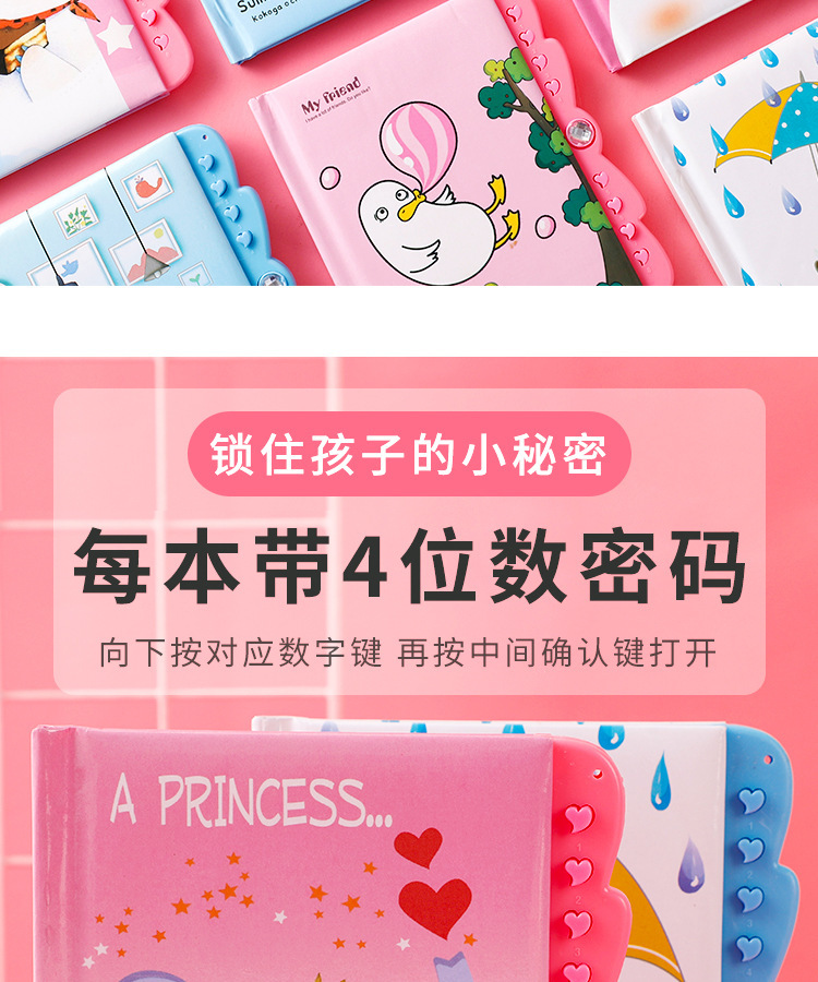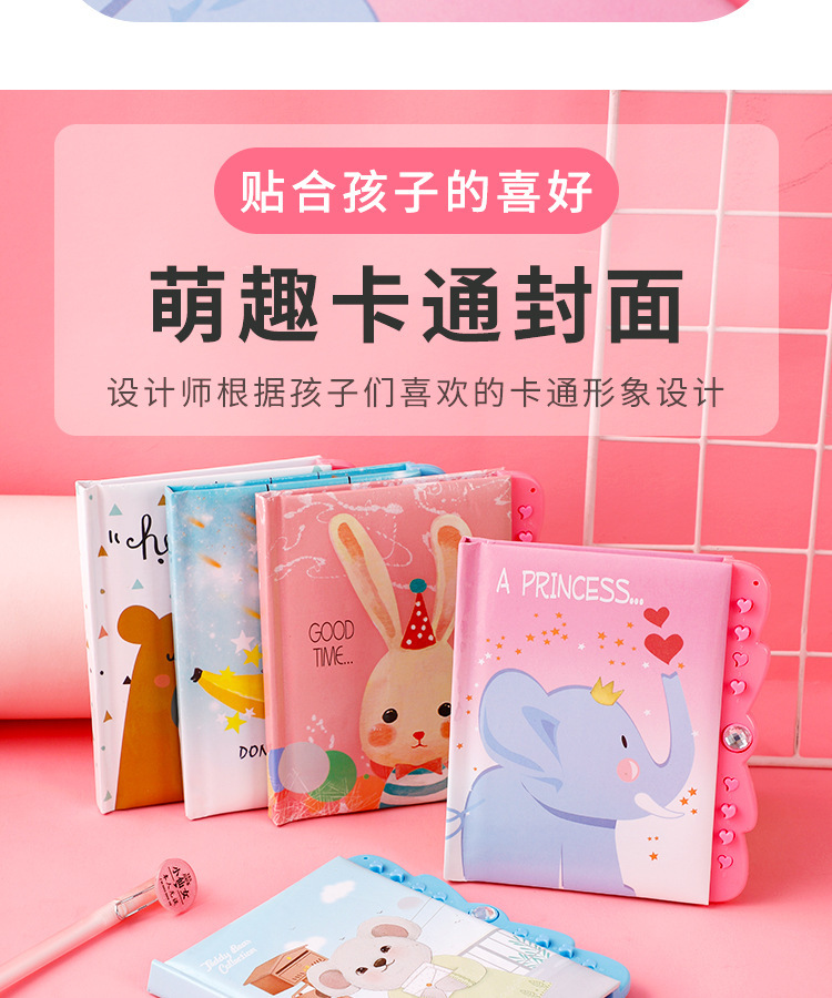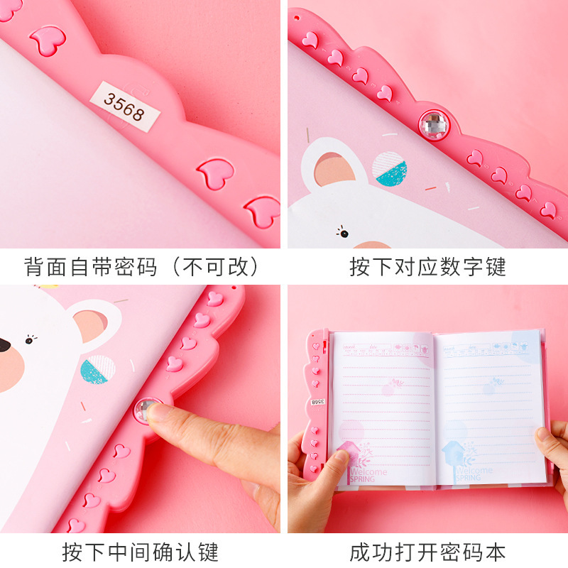 ins风卡通密码本 带锁日记本小学生手账本创意文具少女心礼物批发