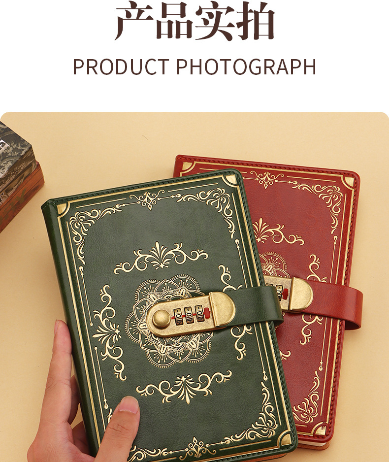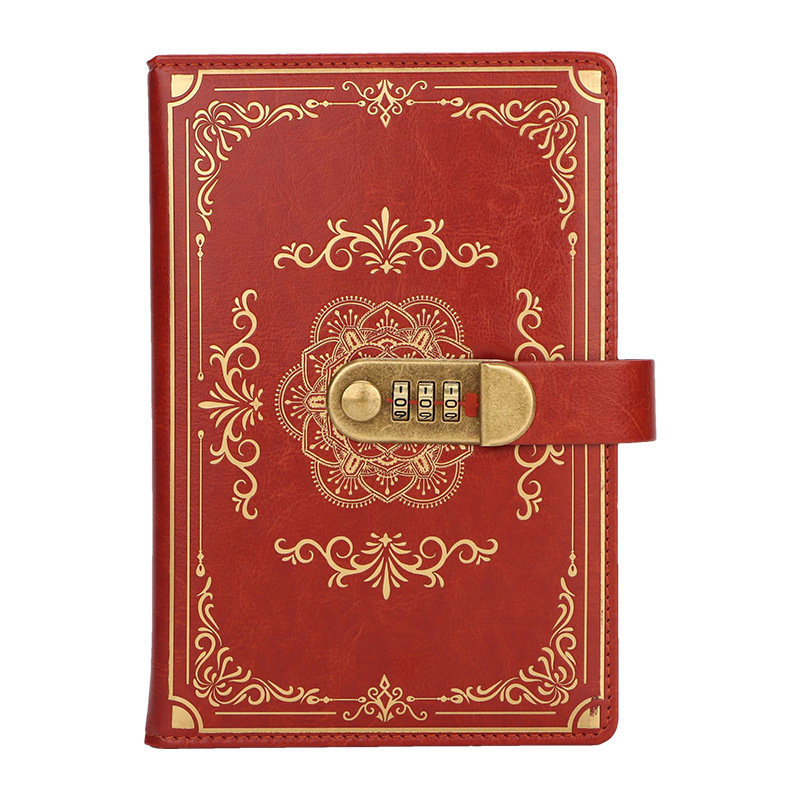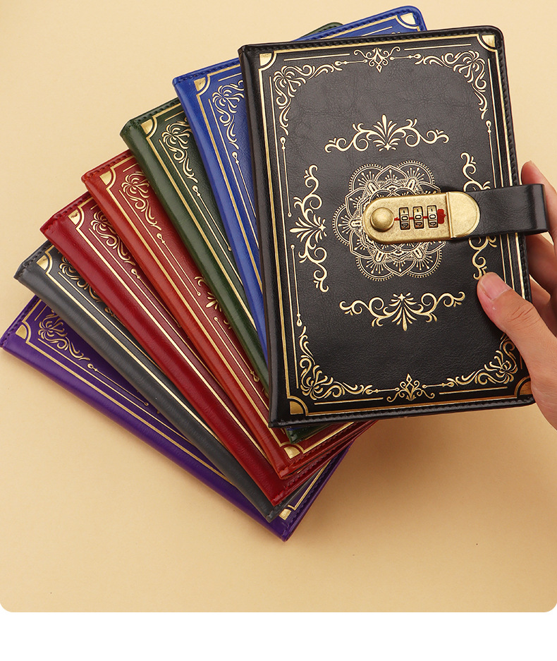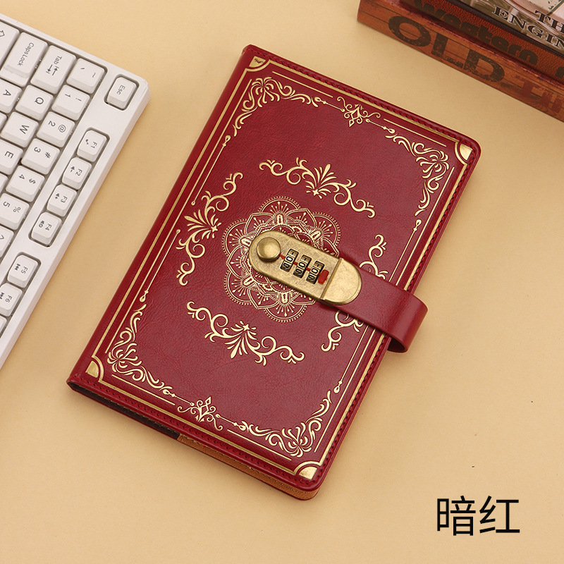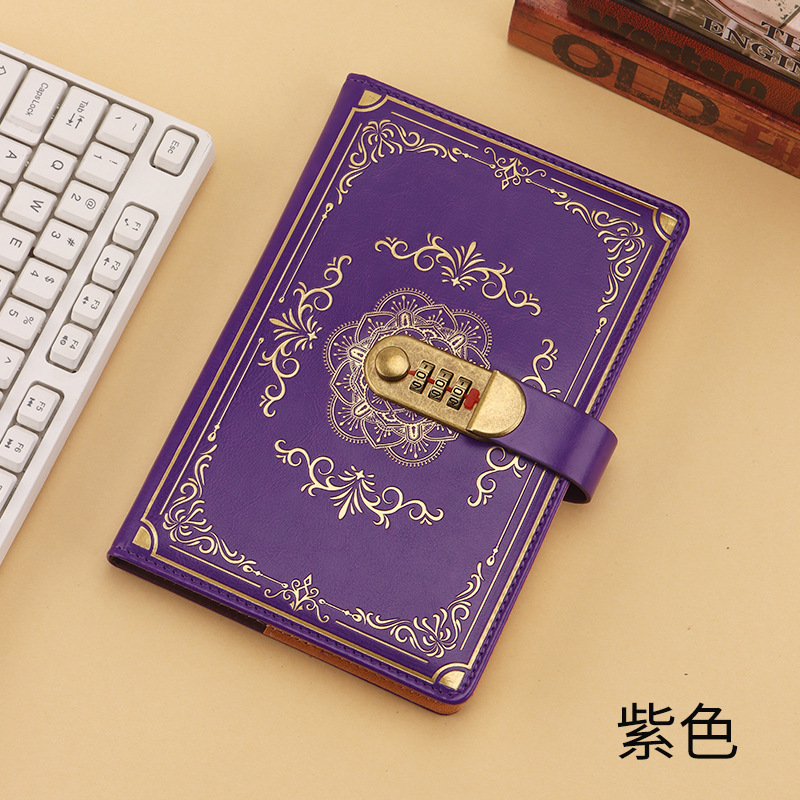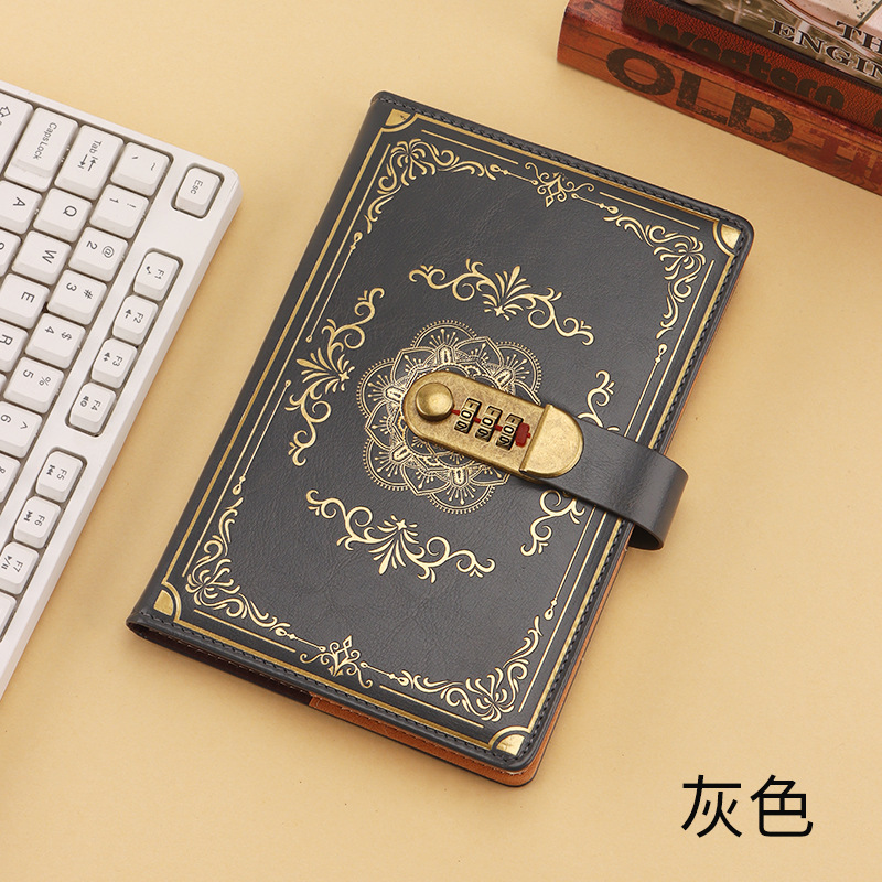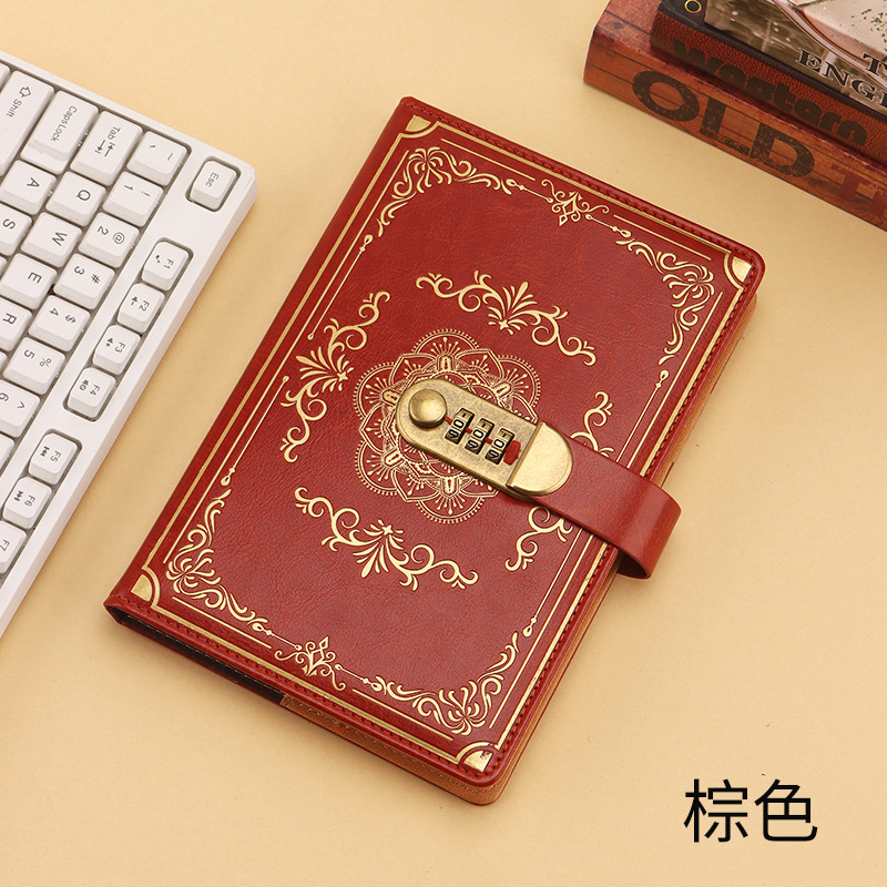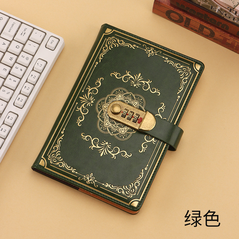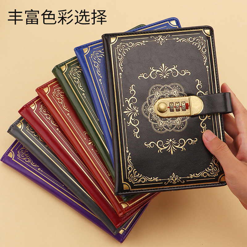 跨境专供a5复古密码本带锁日记本创意手账本学生记事本文具笔记本