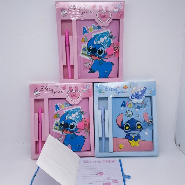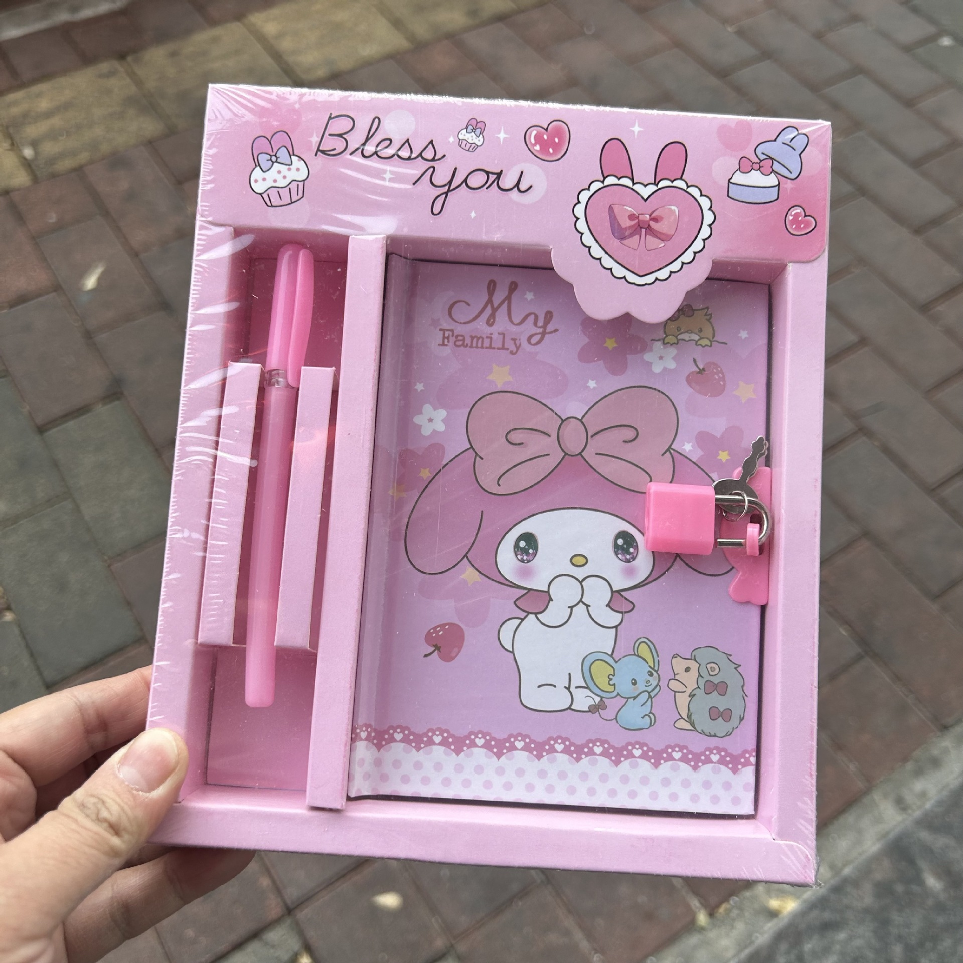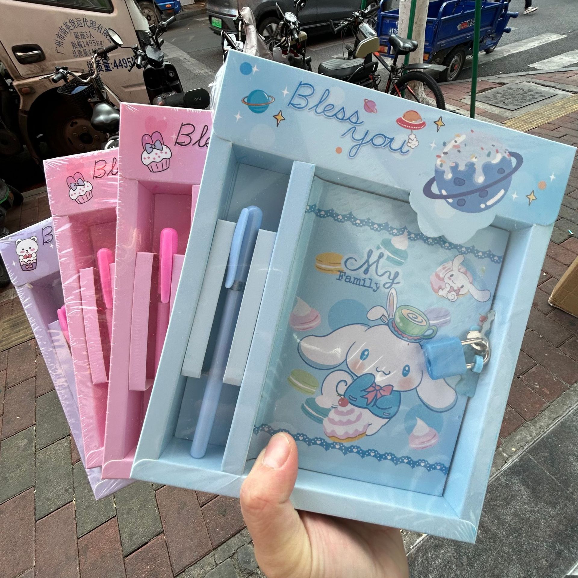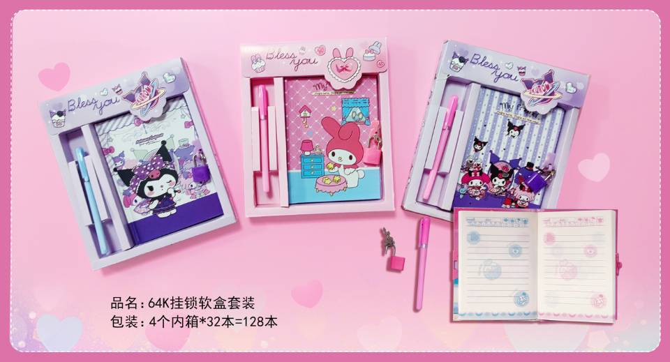 史迪仔卡通锁本三丽鸥笔记本库洛米带笔挂锁本学生奖品日记本手账